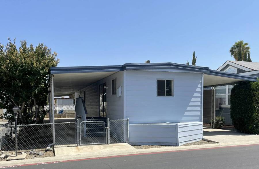 Move-in ready and fully renovated, this charming two-bedroom, one-bathroom manufactured home offers modern comfort and style. The newly updated kitchen boasts fresh finishes and a new range oven, perfect for preparing meals and entertaining. Enjoy consistent year-round comfort with a newly installed air conditioning unit. This home is not only aesthetically pleasing but also practical, featuring a convenient two-car covered carport and a spacious outdoor shed for all your storage needs. Experience affordable homeownership with the benefits of a low-maintenance lifestyle in a thoughtfully upgraded home. Located in the desirable community of Santa Rosa, you'll find everything you need for comfortable living right here. Enjoy both affordability and a modern aesthetic without sacrificing convenience in this beautifully renovated home. Having two community pools, spas, and laundry rooms; a clubhouse, and a gym provides residents with diverse on-site amenities for recreation, convenience, and fitness. The dual pools and laundry facilities reduce crowding, while the clubhouse and gym serve as central hubs for socializing, hosting events, and exercising.