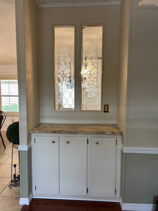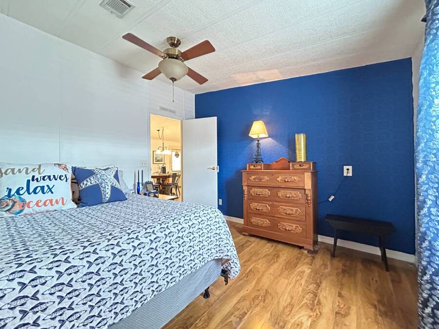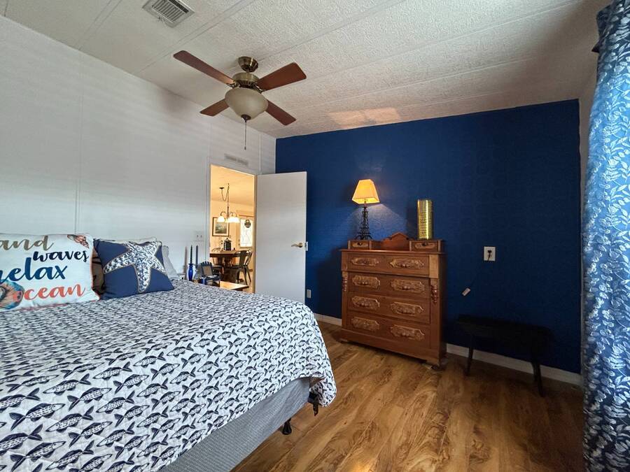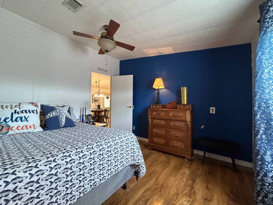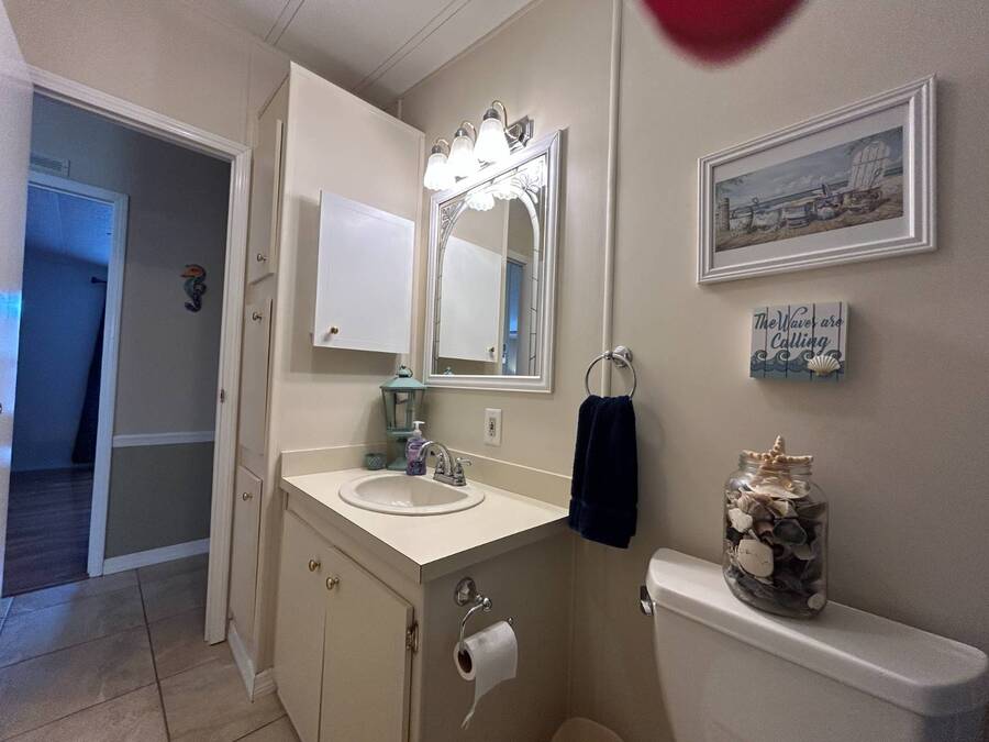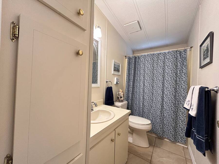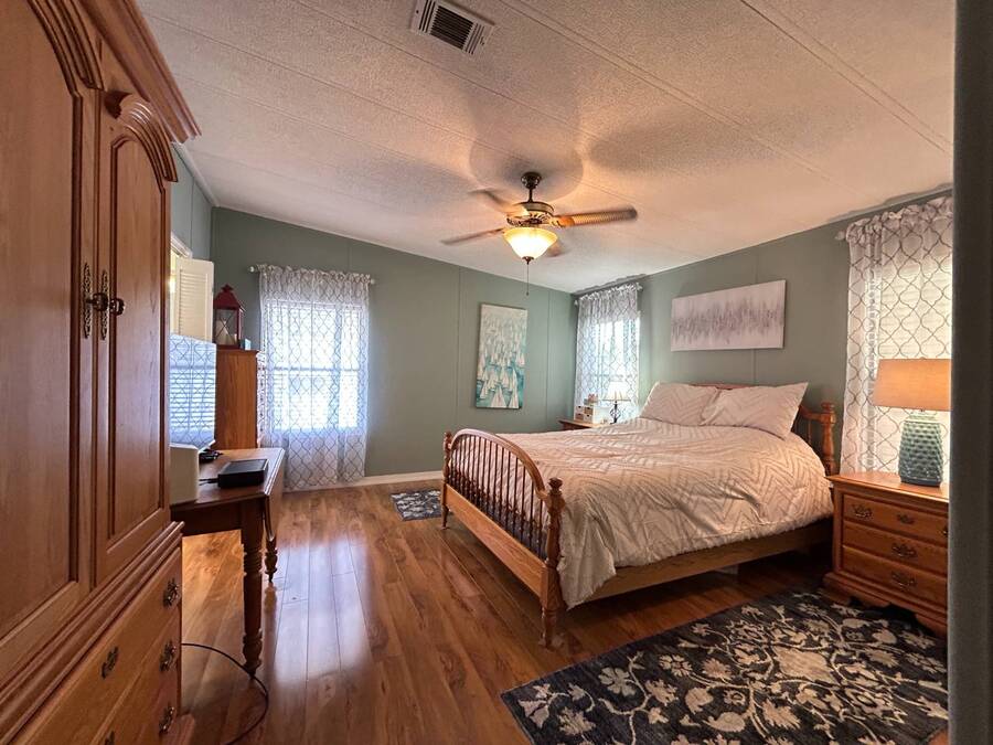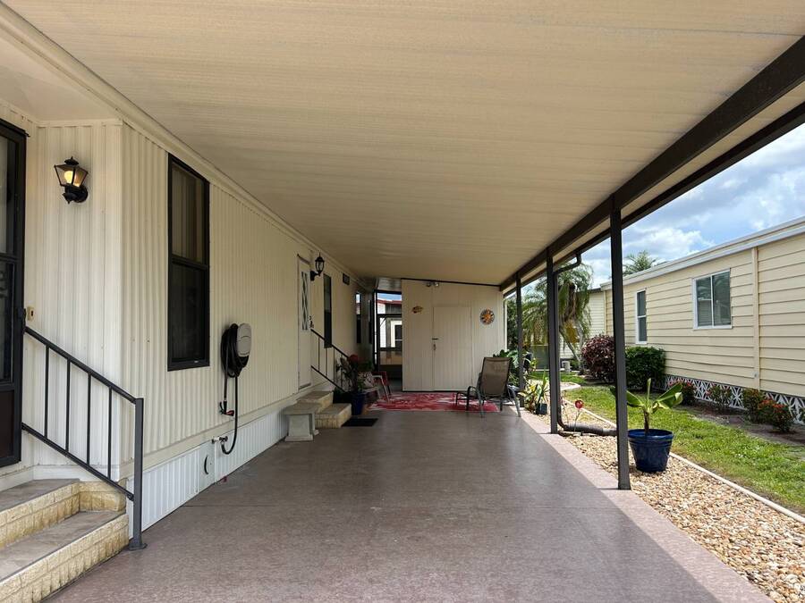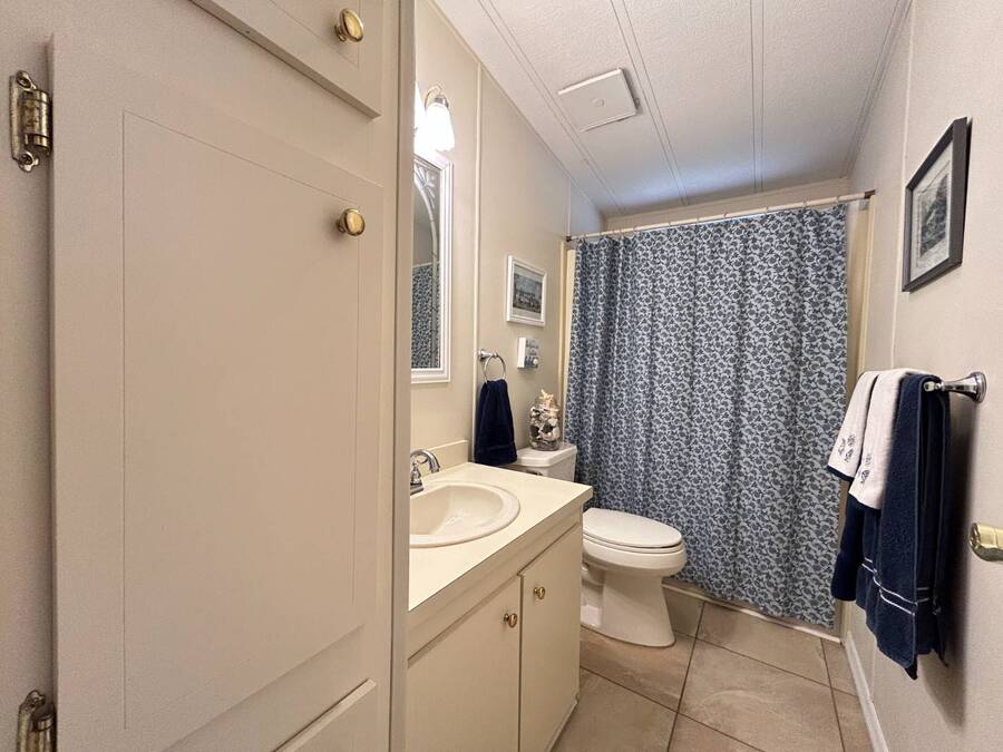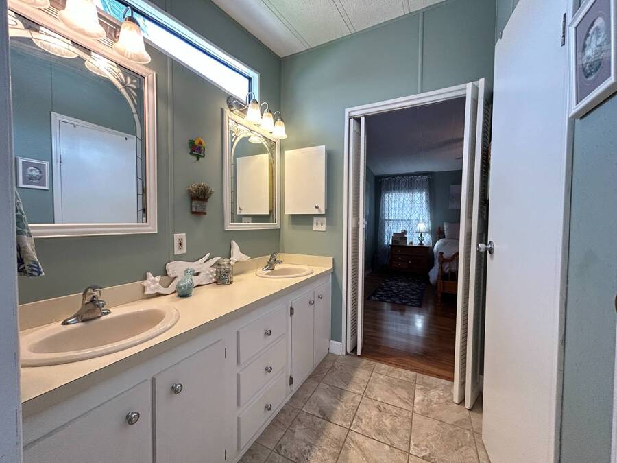Charming 2-Bedroom, 2-Bath Home in Active Lifestyle Community Welcome to this beautifully maintained 1986 home offering 1344 sq. ft. of comfortable living space in a vibrant community filled with planned activities and opportunities to enjoy an active lifestyle. As you step inside, you'll be greeted by elegant tiled flooring in the kitchen and dining area, complemented by stunning flooring throughout the rest of the home. The kitchen has been recently upgraded with gorgeous stone countertops and stylish subway tile backsplash, making it both functional and eye-catching. The spacious living room is perfect for gathering with family and friends, while the front bonus room under air provides extra seating or a cozy space for guests to relax. The first bedroom offers a generous size with a convenient walk-in closet, and just across the hall, you'll find a full bathroom with a tub and shower enclosure. The primary suite is a true retreat, featuring a sliding closet, a walk-in closet, and a private en suite bath with dual vanities, a walk-in shower, and a charming transom window that fills the space with natural light. Additional highlights include plantation shutters, an outdoor shed with laundry (washer and dryer included), and a long carport with space for outdoor seating. This lovely home offers the perfect blend of comfort, style, and community living. Don't miss the chance to make it yours!