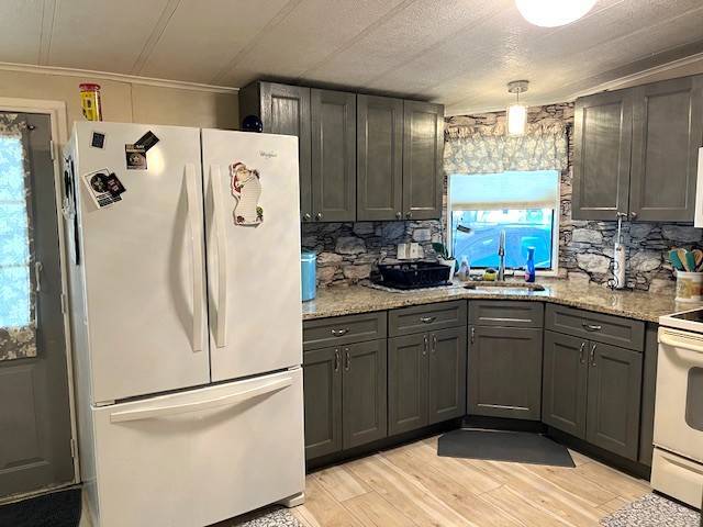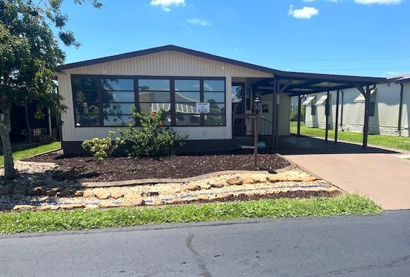 Step into this beautifully remodeled 2-bedroom, 2-bath home offering 828 sq. ft. of comfortable living space, plus an additional 200 sq. ft. enclosed lanai-perfect for relaxing or entertaining. The updated kitchen showcases granite countertops and modern finishes. Fully furnished and turnkey, this home is ready for you to move right in! Recent upgrades include new siding A almost new golf cart is an option for added convenience at $4000. Low lot rent of $510 Situated in a desirable 55+ community, this home combines comfort, style, and an easy-care lifestyle.