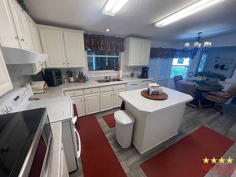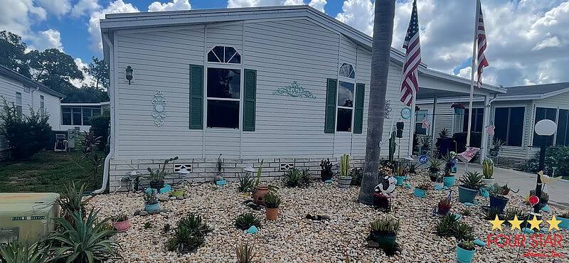 This fully custom furnished 1600 sq ft home is a one-of-a-kind beauty. The front of the home has been designed with river rock bedding. The TPO roof vinyl, is water tight. This home has a lot of extras throughout the home. Leaf Filter for the gutters have been recently installed as well as new underlayment with additional tie-downs. In between the 2 bedrooms is a 100 sq ft Den with a full-size sleeper sofa. The 220 sq ft Florida room overlooks a small outdoor porch with a solar screen protecting the car from the sunset over the lake. This Florida room has a TPO roof, thermal pane slide windows, its hurricane proof and commercial doors at each end of the room. Truly custom Whether you are a full-time resident or a seasonal snowbird, this home is certainly worth taking a peek at. At the Landings at Lake Henry, we have lots of resort type amenities including the Clubhouse, the pool, hot tub, and a BBQ area overlooking Lake Henry and a dog park. Enjoy our new dock, pickleball, shuffleboard, bocce ball, cornhole, and of course the fishing. This 55 plus park is close to local area shopping. Health care and lots of dining opportunities. Haines city is centrally located for you to enjoy our famous West or East Coast Beaches. Disney World is 40 minutes away. Whether you are looking for an active 55 plus community to live in year-round or being a snowbird retreat to escape the harsh winters. The Landings at Lake Henry has it all. Park approval is required with criminal background check, credit check and income verification. Seller is motivated.