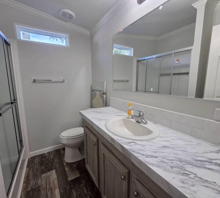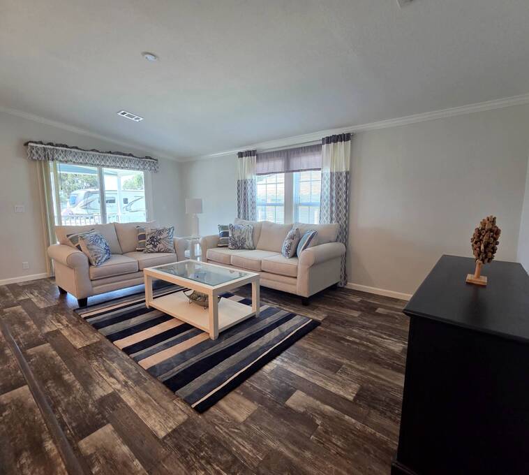 ASK about FINANCING OPTIONS and how to walk through this home virtually!!! Get yourself a glass of lemonade, sit on the beautiful front porch and enjoying the Florida weather. There is nothing not to love about this BRAND NEW home!! Upgraded features include Drywall, recess lighting, Crown Molding, larger door ways for easy entry and much more. The living, kitchen and dining area is open and airy and provides functionality which make entertaining easy. The island is large and in-charge giving ample space for holiday meals or family get togethers. The kitchen also has a double sink and tile back splash! Work from home? The third bedroom has French doors and could also be used for an office or craft room. The on-suite is nice sized complete with a step in shower that provides bench seating and grab bars, also a walk in closet. Home has been furnished with quality furnishings making your move easy. Outside you will find a 12x48 Carport. Plenty of room for parking. The community has upscale amenities and planned activities complete with pool and Tiki area, pickleball, firepit and picnic area. Lifestyle fee is attainable which provides lawn, sewer, water and cable and internet is free of charge. Trash is on a 6 month usage plan. Call for details about Financing, Age Qualifications, and the benefits of buying a brand new home. Currently there are three new homes available to choose from each with a different layout. I am sure one will fit your needs. Call today to start your move to Florida.