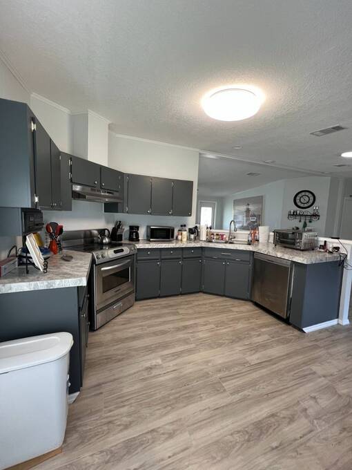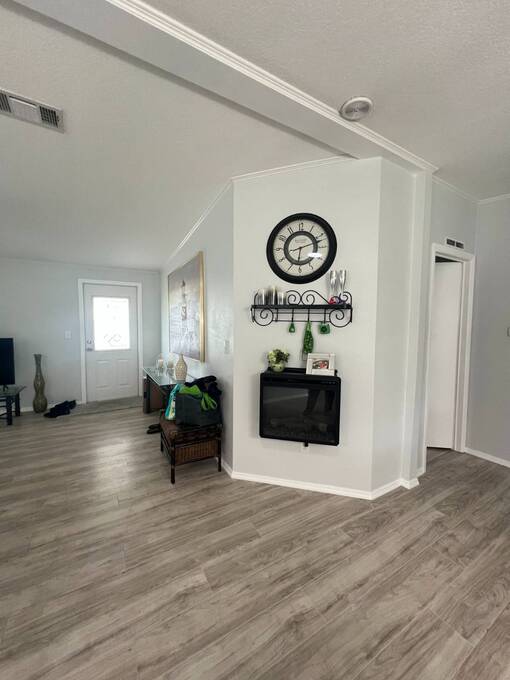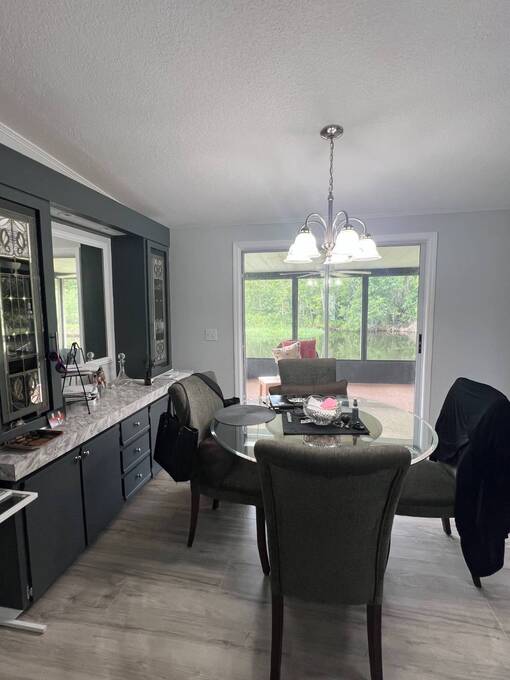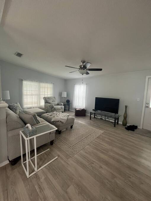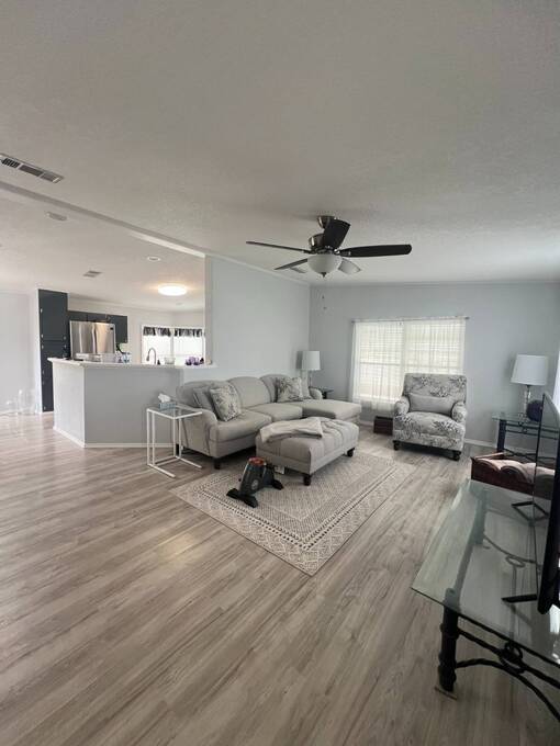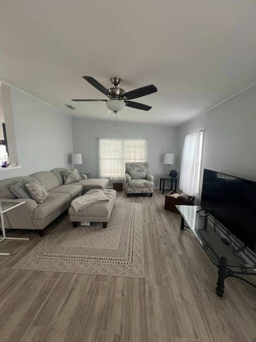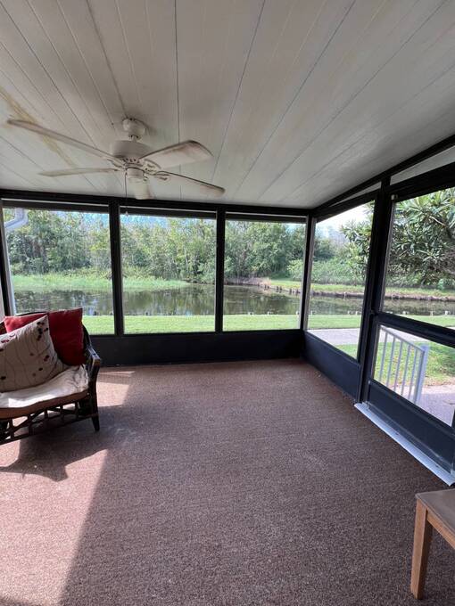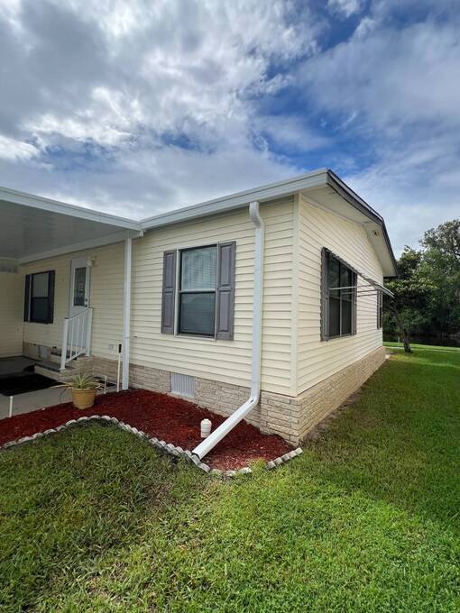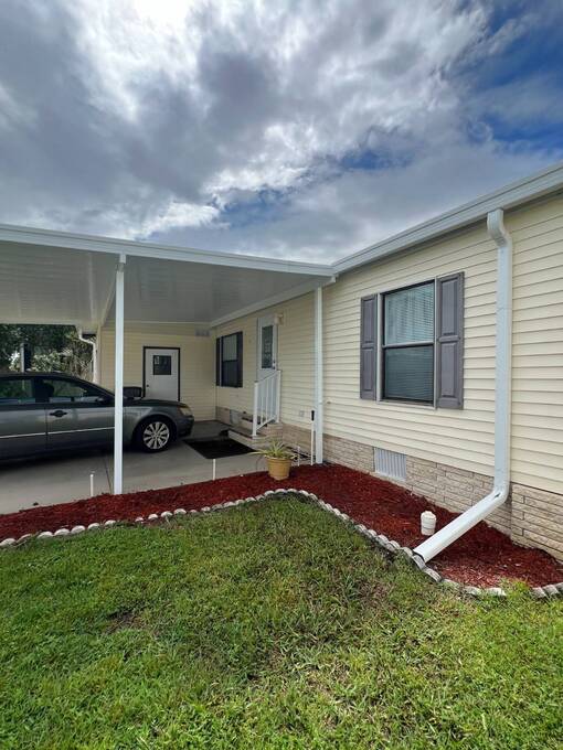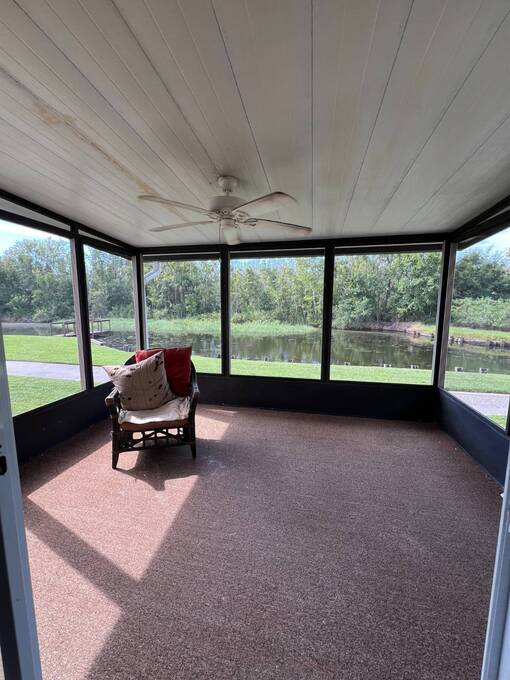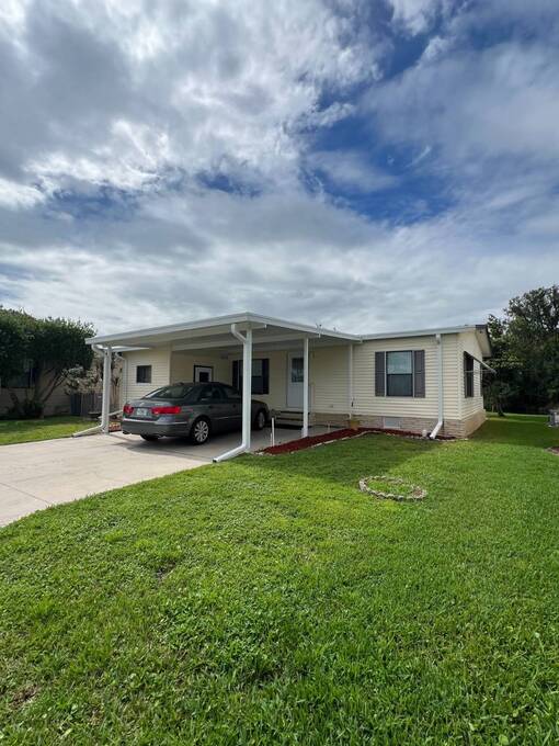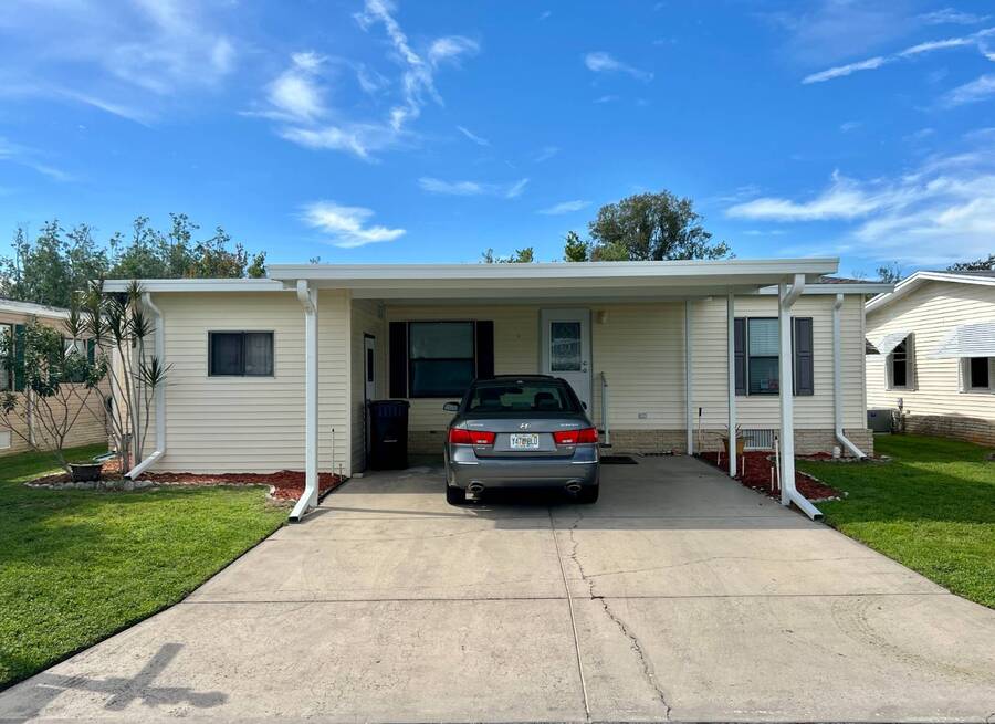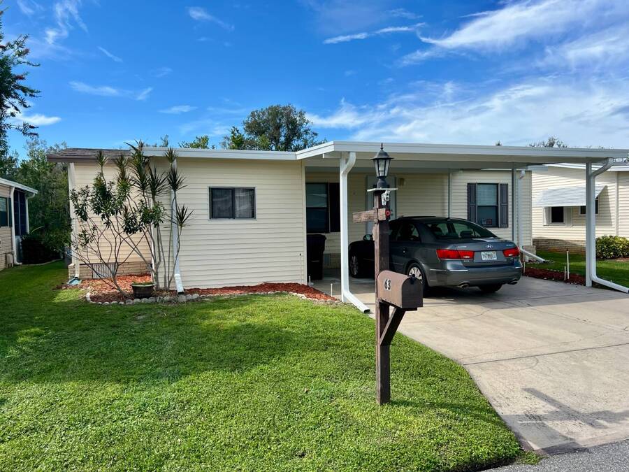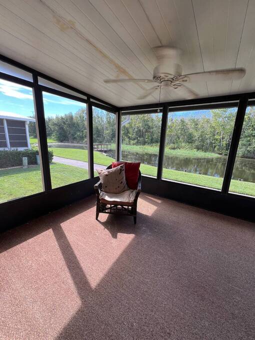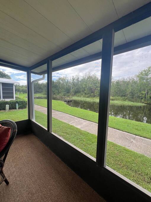 Price Reduced! Charming Updated and modern, furnished home with privacy and stunning water views! Located in an active 55+ Community. 2 spacious bedrooms with large walk-in closets and indoor laundry room. Large, screened room with gorgeous pond view and double carport. Many updates including -Newer Roof (2023) -Newer dishwasher -New garbage disposal. This vibrant 55+ gated golf community offers an array of amenities designed for active adult living. Residents enjoy access to an 18-hole golf course and with your home purchase includes a one-year FREE golf membership. Community boasts a fitness center, calendar full of social events, a beautifully appointed clubhouse with a heated swimming pool and hot tub overlooking beautiful Lake Henry, tennis and pickleball courts and more. For added convenience and enjoyment, there's an on-site restaurant and pub! The neighborhood is pet-friendly, with gated security providing peace of mind for all residents.