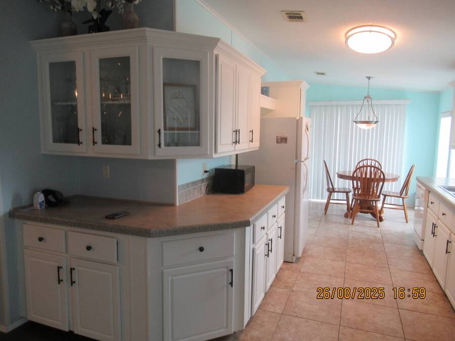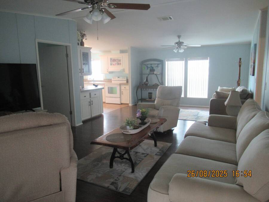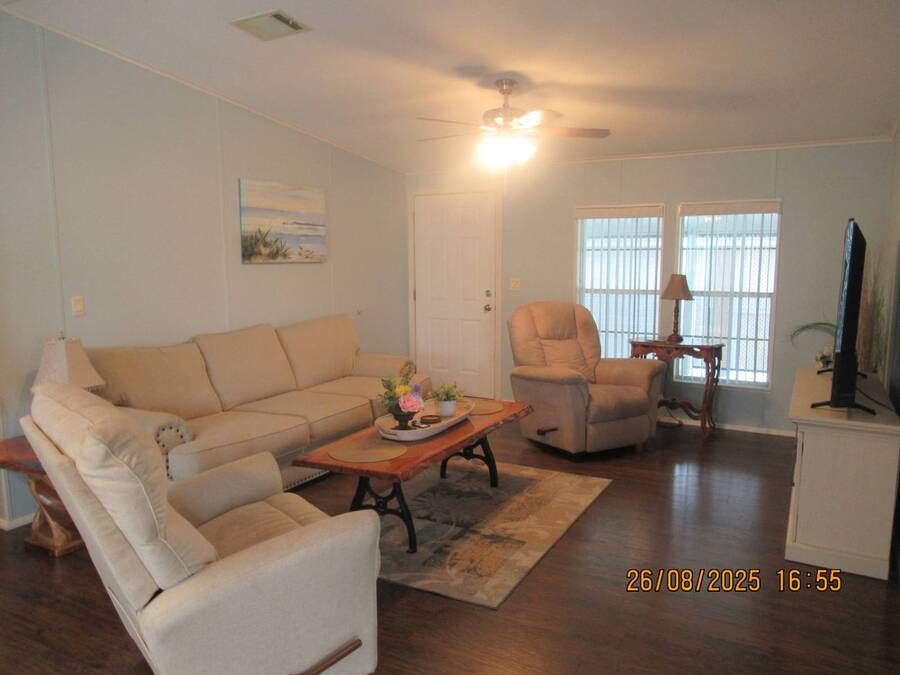 A beautiful 2005 Jacobson manufacturer home 2 bedrooms and 2 bath rooms. The home has 1,248 sq ft of living space (All sizes are now deemed legal but measured to the best of our ability). Large screen room that measures 319 sq ft. ( Sizes are not deemed legal but measured to the best of our ability). Front screen room measures 140 sq ft. (Sizes are not deemed legal but measured to the best of our ability). Shed measures 64 sq ft (Sizes are not deemed legal but measured to the best of our ability). A beautiful spacious home that has been well maintained. Laminate waterproof flooring throughout. All new light fixtures and ceiling fans! You enter the home to a large open living room with beautiful furniture and decor. The galley kitchen is to the left with plenty of cabinets and counter space. A spacious dining room with the private laundry room On the left. The master bedroom is to the left of living room that is large and has a walk in closet. The master bathroom has a beautiful garden tub, double sink and updated walk in shower. Down the hallway is the guest bedroom that accommodates a queen size bed and extra furnishings. The private bathroom is across the hall with shower/tub combo. There's a nice size room at end of hallway that can become a 3rd bedroom or a nice office. Outside there are two screen rooms. This home is a perimeter lot with a patio and large backyard. This is a beautiful place just waiting for you to enjoy sunny Florida. A metal roof that was installed in 2018. The A/C installed in 2022. Everything has been replaced and ready to move in. Furnished and turn key ready. Forest Lake Estates is a 5 star, 55 plus gated community that is land leased and pet friendly. The park has resort style amenities, beautiful landscaping and sidewalks throughout the park. Some of the amenities are a 10,000 sq ft clubhouse,2 pools, hot tub, tennis courts, covered shuffle boards, horseshoes, outdoor and indoor fitness centers, putt-putt golf, a fully stocked fishing pond and 2dog parks. There are activities like dinner dances, card games, pool volleyball, ice cream socials, bingo, Friday night socials and a 3 table billiards room with steel darts and ping-pong. At Forest Lake Estates you are sure to be satisfied with a wide variety of amenities and an ideal location that truly has it all. Beaches, Tampa, Orlando, Lakeland and close to airports and I-4 and I-75. The lot rent on this home is $833 a month which includes lawn care, trash pickup and all of the park amenities. Seller's agent provides information to the best of their knowledge. All information given to the agent from the seller is the best to their knowledge. We suggest a home inspection when buying any home. Come take a look and you will be glad you did .
