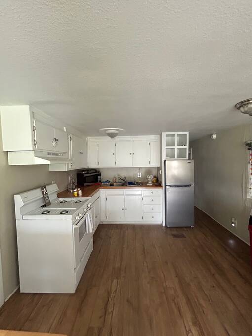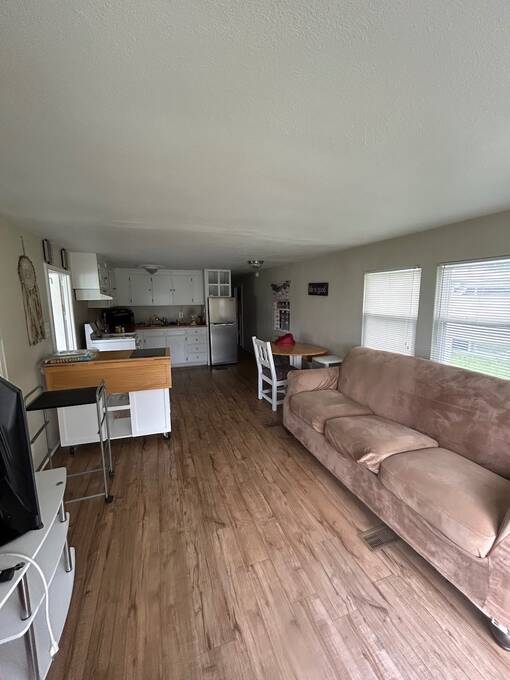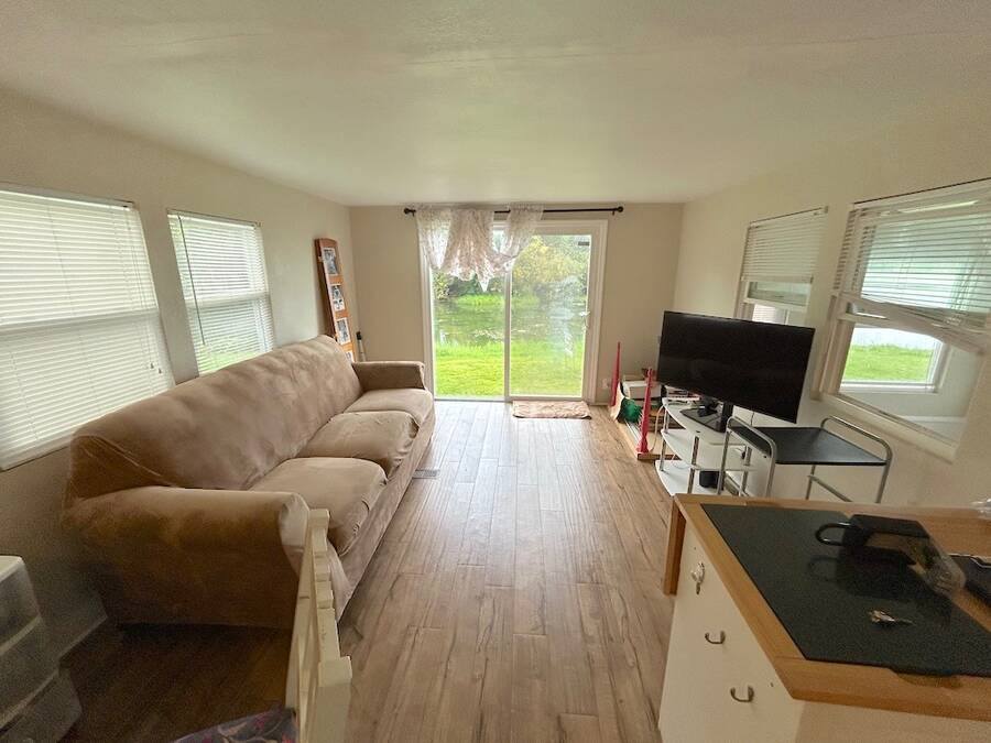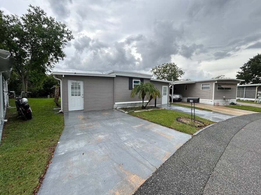 LAKEFRONT HOME WITH BEAUTIFUL VIEWS LOCATED IN A 55+ PARK OPPOSITE OF SOUTHEASTERN UNIVERSITY!! This home features 1 bedroom and 1.5 bathrooms PLUS an enclosed lanai, a recently refreshed sunroom, AND an extra bonus room. The sunroom, conveniently located off the kitchen, presents delightful views of Lake Bonny, where you can relax and witness the sunsets each evening and features a half bathroom. The versatile bonus room, suitable for use as a second bedroom, home office, craft space, or man cave, includes a mini split air-conditioning system along with a private entrance. Inside, the open-plan kitchen boasts a movable center island, an eat-in area including the table and chair, and seamlessly flows into the living room, which showcases views of the lake. Additional updates to this home include double pane windows, installed drywall throughout, and laminate flooring. A double driveway ensures that each vehicle has its designated parking space. Give us a call and check out this home today! **Home is sold unfurnished.** Bonny Shores is a quaint 55+ community located in Lakeland, FL. This park provides plenty of community activities and functions to enjoy with friends. Other amenities include a clubhouse, billiard table, library area, shuffleboard courts, fishing areas, boating, and more. Bonny Shores is located perfectly within a short distance of shopping, downtown Lakeland, golf courses, parks, restaurants, walking trails, and tennis courts. Up to two smaller pets with breed restrictions allowed. 80/20 rule applies where one resident must be 55+ and the other 45+. Lot Rent $850 includes water, sewer, and trash. KITCHEN: 10 x 11 • Laminate Flooring • Refrigerator - Magic Chef • Stove - Frigidaire (with Vent Hood) • Microwave - Hamilton Beach • Center Island • Eat In • Table with 1 Chair LIVING ROOM: 10 x 11 • Laminate Flooring HALLWAY STORAGE: • Coat Closet MAIN BATHROOM: 7 x 6 • Ceramic Tile Flooring • Single Sink • Tub/Shower Combo • Mirrored Medicine Cabinet MASTER BEDROOM: 8 x 8 • Laminate Flooring • Ceiling Fan with Light • Standard Closet BONUS ROOM: 21 x 9 • Ceramic Tile Flooring • Mini Split A/C Unit SUNROOM: 9 x 17 • Laminate Flooring • Ceiling Fan with Light • Located Off: Kitchen HALF BATHROOM: 5 x 3 • Laminate Flooring • Single Sink ENCLOSED LANAI: 14 x 7 • Concrete Flooring • Ceiling Fan with Light SHED/LAUNDRY ROOM: 10 x 11 • Concrete Flooring • Washer Hookup • Dryer Hookup • Shelving EXTERIOR: • Vinyl • Double Pane Windows • Carport: N/A • Roof Type: Unknown • A/C: Unknown • A/C Vents: Floor COMMUNITY: • Clubhouse • Billiards Table • Library • Shuffleboard Court • Fishing Area • Boating The above information is not guaranteed. It is the buyer's responsibility to confirm all measurements, fees, rules and regulations associated with this particular park. This mobile home is sold "As Is" as described in the description above. There are no warranties or guarantees on this mobile home.