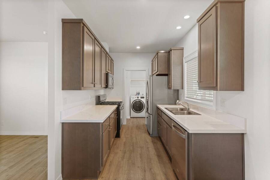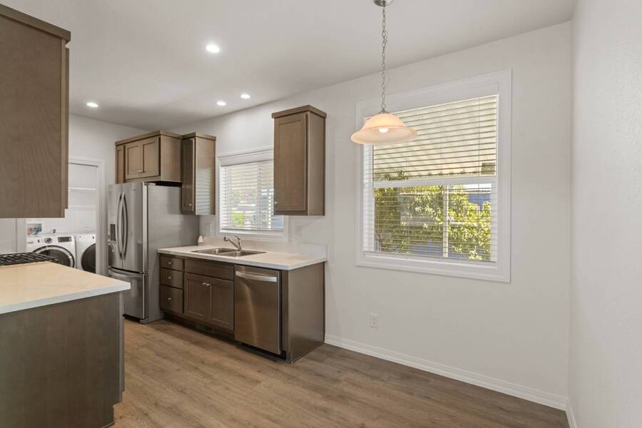 Located within the vibrant all-age Avalon Mobile Park community, this newly constructed 2025 Skyline Manufactured Home spans approximately 980 sq. ft. Don't let the square footage fool you-this home feels much larger than it appears. It features a modern open floor plan and comes equipped with brand-new stainless steel appliances, including a washer and dryer. The kitchen is beautifully designed with hardwood cabinets, quartz countertops, laminate flooring, and Kohler fixtures. This thoughtfully designed three-bedroom, two-bath residence offers ample storage space, 9-foot sidewalls, flat ceilings, recessed can lighting, and wiring for ceiling fans in both the living room and bedrooms. The Avalon Mobile Park community includes a clubhouse and pool, providing an ideal living environment that is conveniently located for easy access to work, school, and recreational activities.