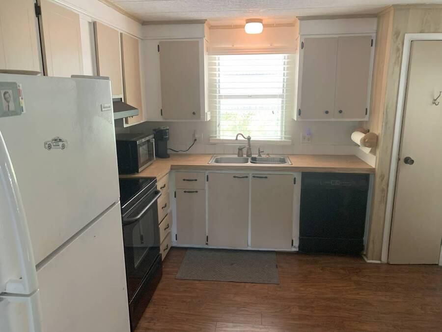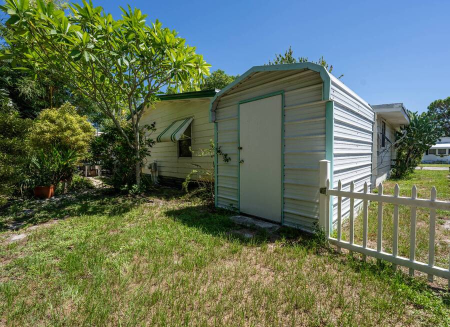 Don't miss this rare opportunity in Vero Beach! This charming home features a mother-in-law suite, offering flexible living arrangements. The metal roof has been recently sealed, and the home is freshly painted inside and out with laminate and vinyl flooring throughout. Enjoy the lowest lot rent in Vero at just $606 in a fenced-in, pet-friendly community, only 5 miles from both the ocean and the Intracoastal. The backyard has a Key West vibe-a perfect private retreat without leaving town. As a unique bonus, the current owner would like to remain in the mother-in-law suite for one year and will pay the lot rent and handle all home maintenance during that time-making this an ideal hassle-free investment, so just imagine you can leave your house for 6 months and have the rent paid and worry free maintenance. Call today to schedule a showing and experience this special property!