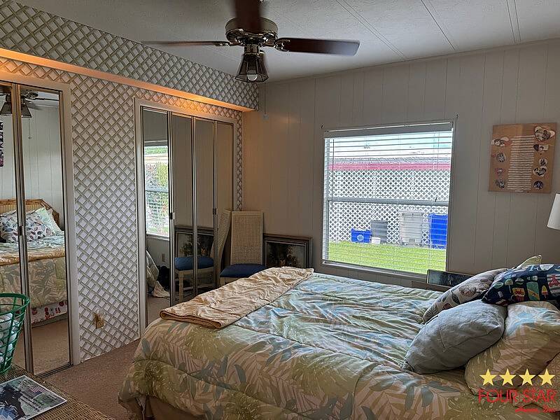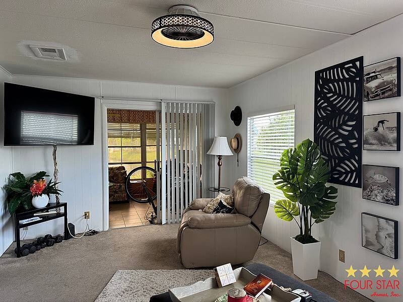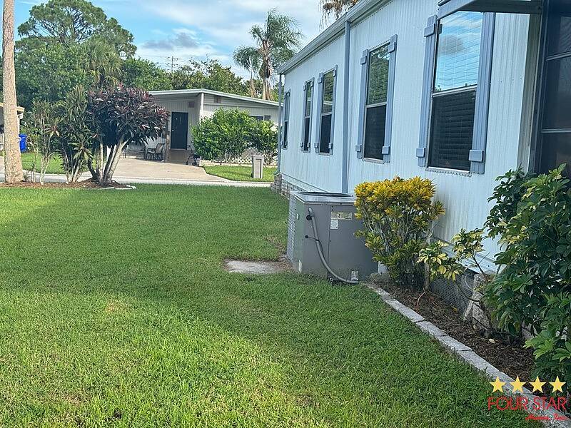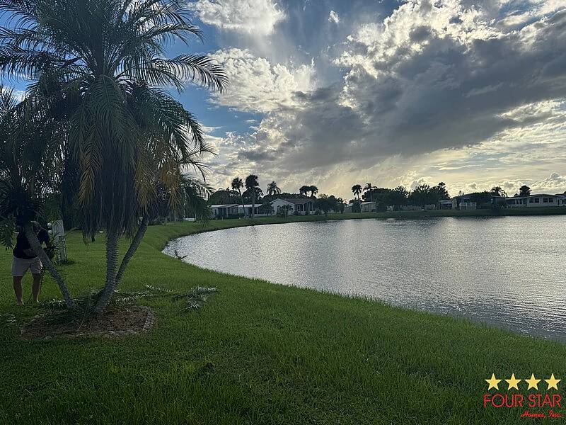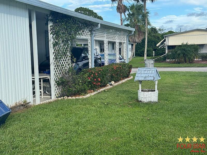 Perfect vacation home or full-time residence - this lovingly maintained 2-bedroom. 2 bath home offers plenty of entertaining space both inside and out, 1152 sq ft under air with expansive carport and shed. This turnkey property comes fully furnished in coastal colors and decor. This home boasts sweeping views of the lake with lush vegetation and where wildlife abounds. Enjoy the oversized lot with green space on all sides for ultimate privacy and a sunny Florida room and separate covered side porch for peace and tranquility. This home boasts an open floor plan and a 5-yr old AC unit under maintenance contract for ease of mind. Master bedroom is large and bright with en-suite bathroom and washer and dryer in walk in closet for added convenience. Guest bedroom offers ample space with queen sized bed and 2 large closets. Countryside at Vero beach is a gated 55 and over community - with tons of amenities and activities such as heated pool, billiards, tennis courts, dog park and much more. Close to expressway and shopping and 15 minutes to pristine Atlantic beaches, 1 hour 15 minutes to Florida amusement parks and attractions. Must be park approved for a resort style residence in this premier park. 50pp application USA and 75pp Canadian. Home is on leased land - lot rent of $1225 until end of yr 2025. Includes gated community, lawn care and edging, trash pick-up and full use of clubhouse and all amenities. The best part is meeting new friends and neighbors from all over the world! Come make this home yours for only $65,900 - we are waiting for you!