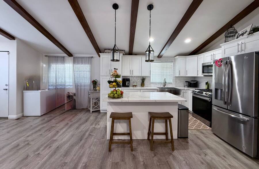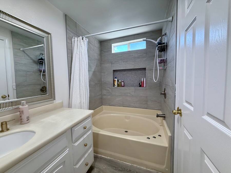 Welcome to this beautifully updated home, nestled in a vibrant, family-friendly community that offers access to a swimming pool and clubhouse. Ideally located, this home provides convenient access to shopping centers, banks, and public transportation, making everyday errands effortless. Step inside to discover soaring high ceilings and updated flooring throughout, complemented by fresh interior and exterior paint. The fully renovated kitchen features sleek new cabinetry and stunning quartz countertops, perfect for both everyday living and entertaining. The spacious living room is filled with natural light from large windows, creating a bright and inviting atmosphere. The primary bedroom includes a private en-suite bathroom and a large wall to wall closet, offering both comfort and functionality. Outside, the expansive backyard is ideal for gardening, play, or entertaining guests, offering endless possibilities for outdoor enjoyment. The extra large shed is fully equipped, perfect for workshop, office, or studio. Don't miss the opportunity to make this move-in-ready home yours. Call today to schedule a private showing and ask about our direct lending program. S#gw20calkg6463b