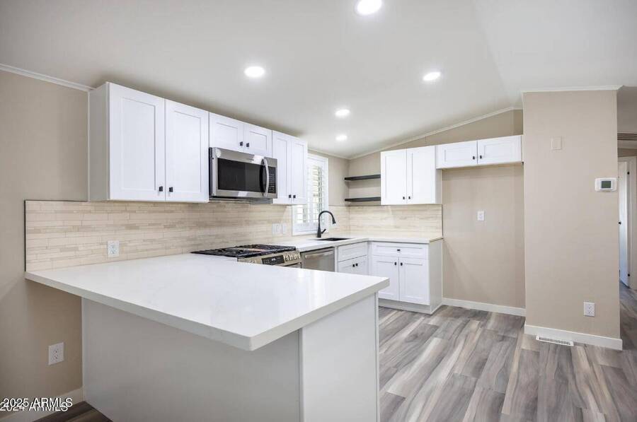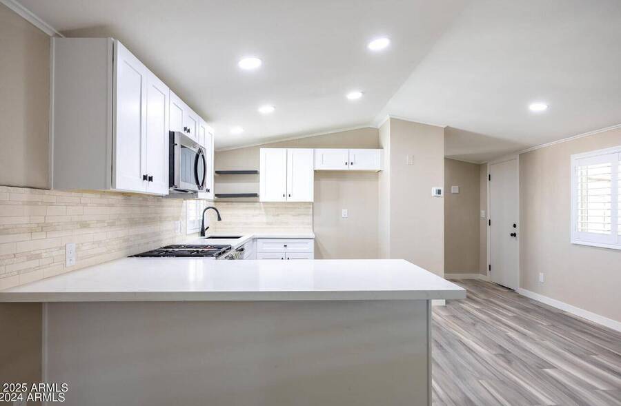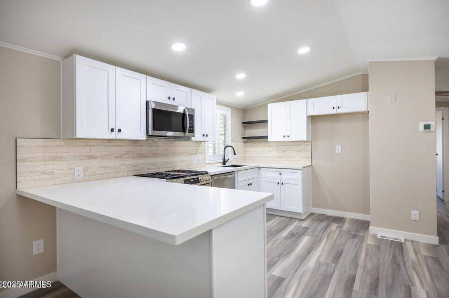 Fall in LOVE with this stunningly REMODELED gem-modern, stylish, and MOVE-IN READY! Step inside to discover sleek NEW FLOORING, fresh INTERIOR & EXTERIOR PAINT, and designer lighting throughout. The bright OPEN CONCEPT layout features 2 spacious bedrooms and 2 refreshed bathrooms. The KITCHEN is a showstopper with refinished CABINETS, sparkling QUARTZ counters, and brand-new STAINLESS STEEL appliances. Enjoy Arizona living on your large COVERED PATIO with a 2-car tandem CARPORT and a convenient storage shed. Major upgrades? Done! Newer A/C, ROOF, GAS WATER HEATER, and WINDOWS-all under 3 years old. Set in the GATED Sunwest Resort Village, you'll have access to exclusive amenities: clubhouse, pool, spa, RV parking, and a vibrant calendar of activities.