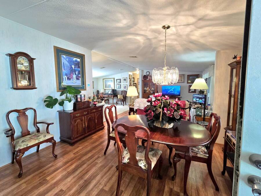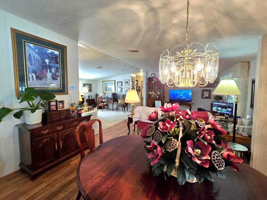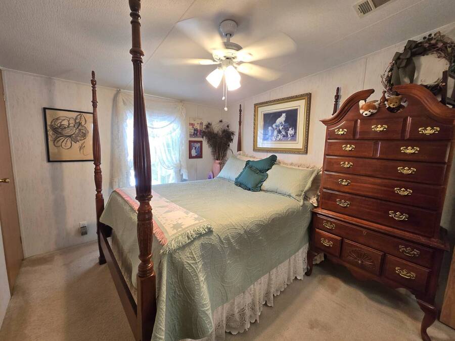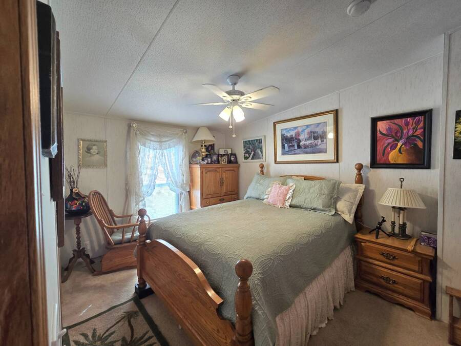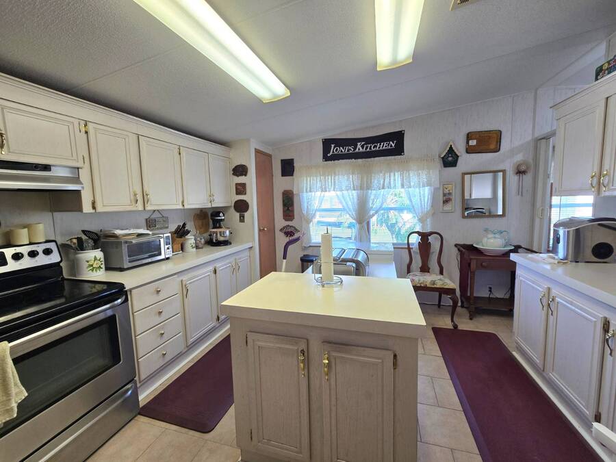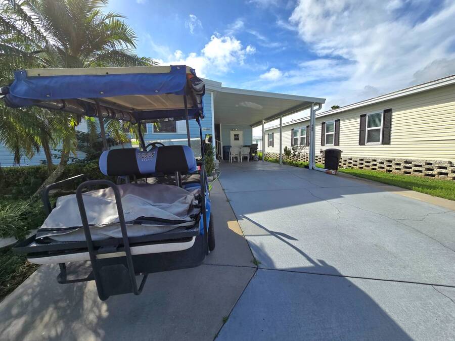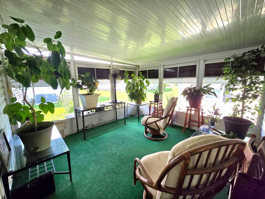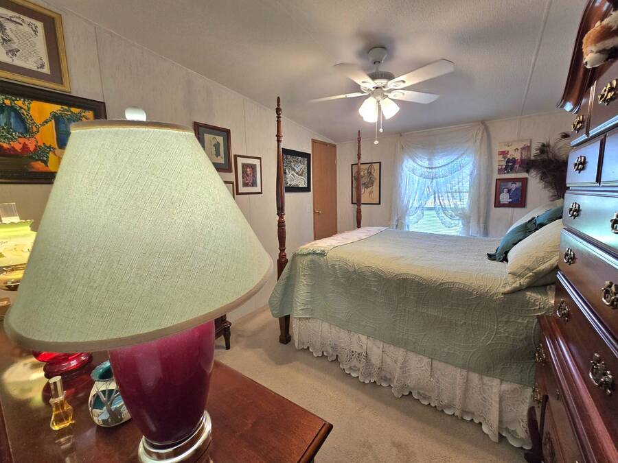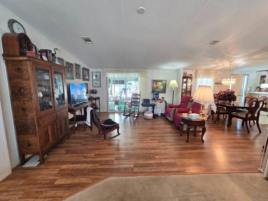 Welcome to 408 Lake Ontario, a 3 bed, 2 bath home nestled on a quiet, tucked-away street in the desirable Lake Pointe Village, a vibrant 55+ community in Mulberry, Florida. Step inside to discover a bright and open-concept floor plan designed for both comfort and functionality. The spacious kitchen features ample cabinetry, generous storage, and its perfect for everyday living or entertaining guests. Each bedroom boasts large walk-in closets, while the primary suite includes a private ensuite with a relaxing Jacuzzi tub-your own personal retreat. Enjoy Florida's sunshine year-round in your private Florida sunroom, complete with a doggy door for your furry friends! Outside, you'll love the double carport, golf cart parking, and a shed for added storage. All appliances included. Easy-to-clean floors throughout. Covered carport fits two vehicles. Some furniture negotiable. Current lot rent will be grandfathered in until end of 2025. ABOUT THE COMMUNITY: $40 application fee; buyer must be approved by Legacy Management before an offer can be accepted. New Lot Rent expected to be approx. $925/month starting 2026. Lake Pointe Village offers a wide variety of fun activities and amenities-ideal for those looking to enjoy an active and social lifestyle in a peaceful, resort-style setting. Please know, children are not allowed to live in this community, however they can visit. Pets are allowed. There are two fenced-in dog parks, a great space for your fur babies to run and play. This community offers a Heated Pool, Clubhouse, Fitness Center, Gated Community, Billiards, Boat Storage, Card Table, Free Wi-Fi in common areas, Craft Clubs, Dog Run, Hot Tub, Shuffleboard, Horseshoe, Water Views and different events. This community is located in Mulberry. Mulberry is south of Lakeland and east of Tampa. You are very close to, beaches, amusement park, shopping, restaurants, cultural centers, entertainment, and the Detroit Tigers' spring training camp is only 8 miles away at the Joker Marchant Stadium. You are only 12 miles from the Watson Clinic, one of the best medical facilities nationwide. You are within walking distance of a United States Post Office.