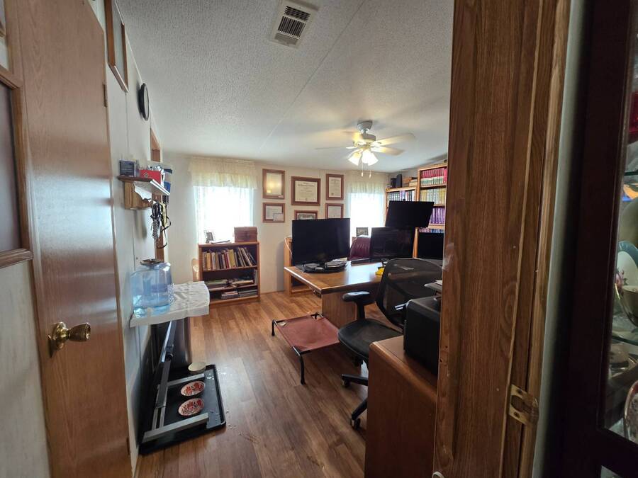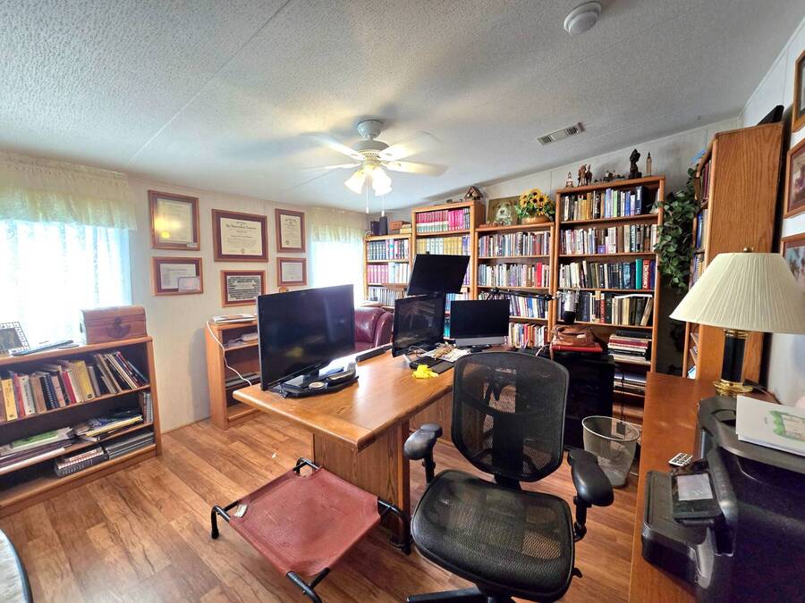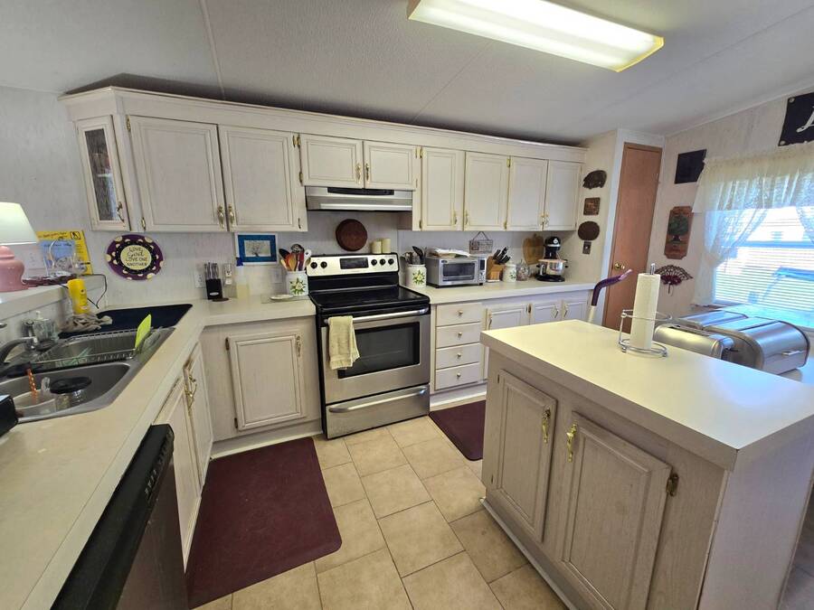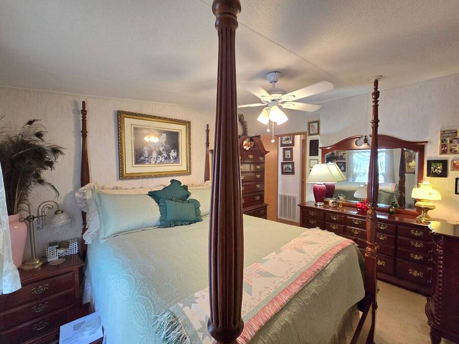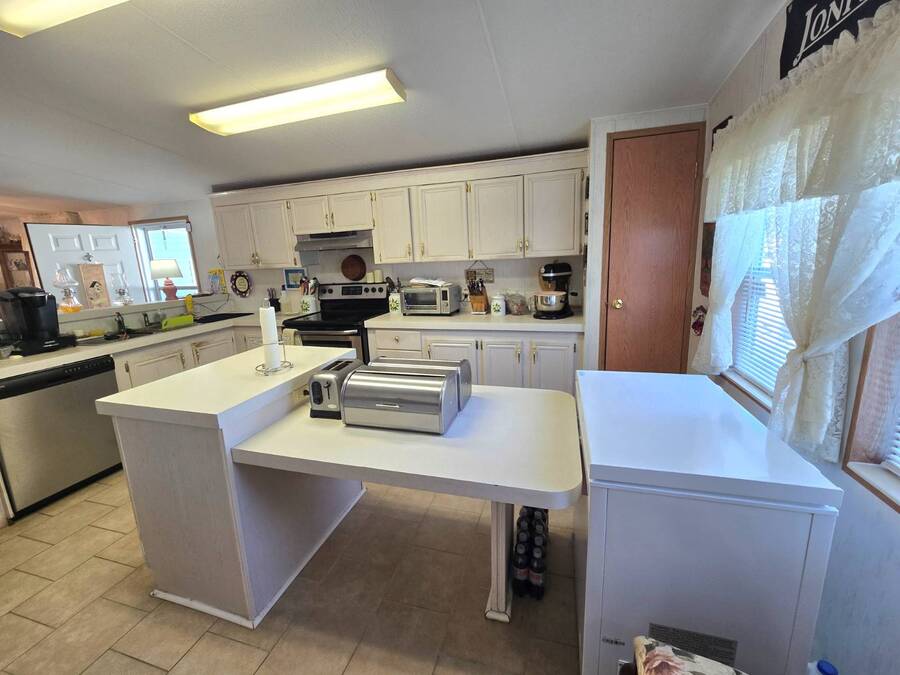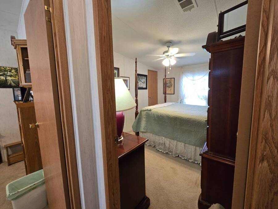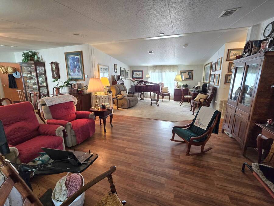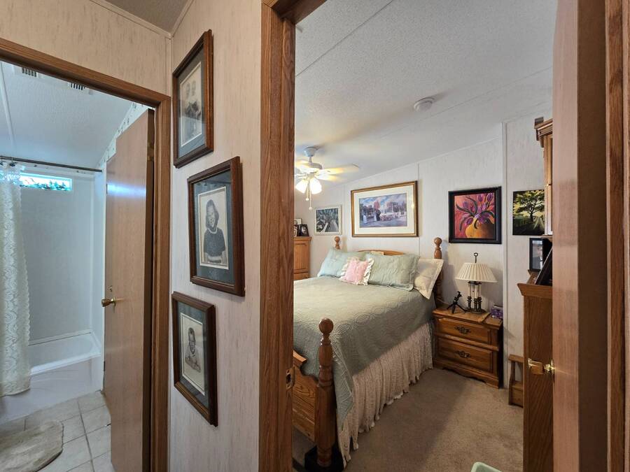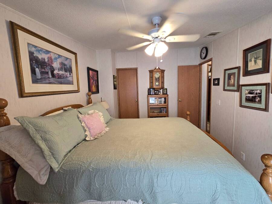 Welcome to 408 Lake Ontario, a 3 bed, 2 bath home nestled on a quiet, tucked-away street in the desirable Lake Pointe Village, a vibrant 55+ community in Mulberry, Florida. Step inside to discover a bright and open-concept floor plan designed for both comfort and functionality. The spacious kitchen features ample cabinetry, generous storage, and its perfect for everyday living or entertaining guests. Each bedroom boasts large walk-in closets, while the primary suite includes a private ensuite with a relaxing Jacuzzi tub-your own personal retreat. Enjoy Florida's sunshine year-round in your private Florida sunroom, complete with a doggy door for your furry friends! Outside, you'll love the double carport, golf cart parking, and a shed for added storage. All appliances included. Easy-to-clean floors throughout. Covered carport fits two vehicles. Some furniture negotiable. Current lot rent will be grandfathered in until end of 2025. ABOUT THE COMMUNITY: $40 application fee; buyer must be approved by Legacy Management before an offer can be accepted. New Lot Rent expected to be approx. $925/month starting 2026. Lake Pointe Village offers a wide variety of fun activities and amenities-ideal for those looking to enjoy an active and social lifestyle in a peaceful, resort-style setting. Please know, children are not allowed to live in this community, however they can visit. Pets are allowed. There are two fenced-in dog parks, a great space for your fur babies to run and play. This community offers a Heated Pool, Clubhouse, Fitness Center, Gated Community, Billiards, Boat Storage, Card Table, Free Wi-Fi in common areas, Craft Clubs, Dog Run, Hot Tub, Shuffleboard, Horseshoe, Water Views and different events. This community is located in Mulberry. Mulberry is south of Lakeland and east of Tampa. You are very close to, beaches, amusement park, shopping, restaurants, cultural centers, entertainment, and the Detroit Tigers' spring training camp is only 8 miles away at the Joker Marchant Stadium. You are only 12 miles from the Watson Clinic, one of the best medical facilities nationwide. You are within walking distance of a United States Post Office.