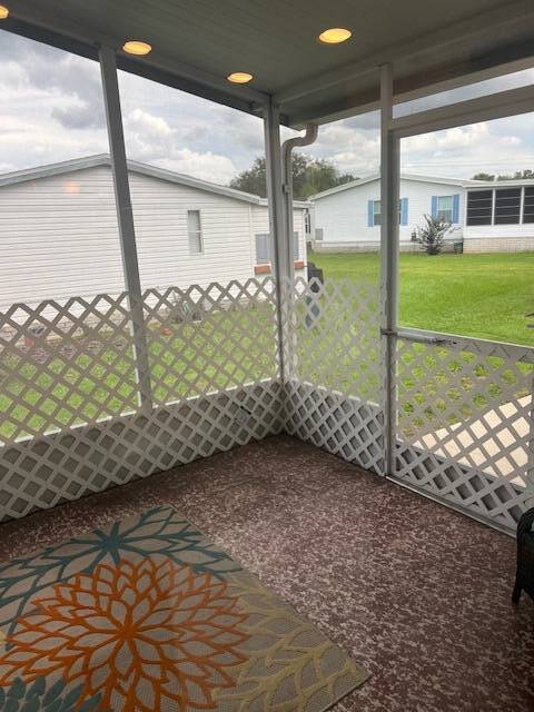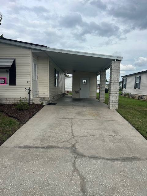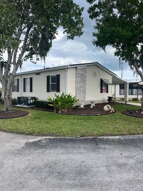 The home is totally updated with a new roof, A/C, laminate flooring throughout, a new kitchen, and baths! The open floor plan is perfect for entertaining family and friends, complete with a cozy fireplace! The kitchen has new cabinets, counters, stainless steel appliances, and a convenient center island with lots of storage! You have 2 good-sized bedrooms, including a master ensuite with a walk-in closet and private bath. You even have a screened-in lanai and outdoor patio to enjoy the wonderful weather of Florida! The sizable corner lot is well landscaped and has one of the lowest lot rents in the community! Absolutely adorable updated home in The Hamptons Golf and Country Club Resort of Auburndale! A gated, very active 55 +, top-ranked community in the heart of Polk County! So, enjoy this gem along with the beautiful facilities and activities this outstanding community has to offer. The golf course, pool & spa, restaurant, gym, library, poolroom, outdoor courts, ballroom for shows, games, banquets, bingo, and lots of dances with live entertainment! You can be as busy as you want to be every day and every night!! Don't pass this outstanding home!