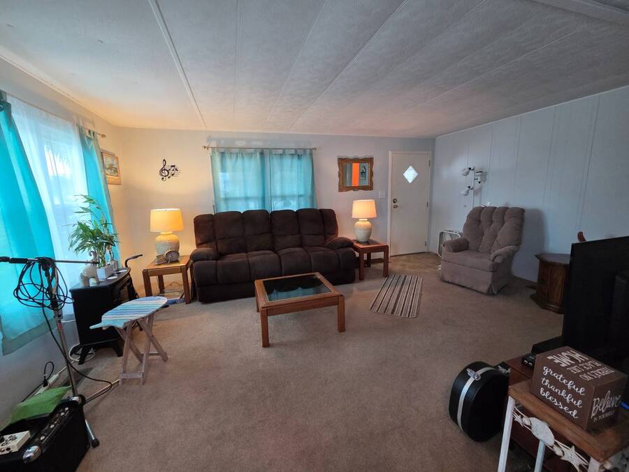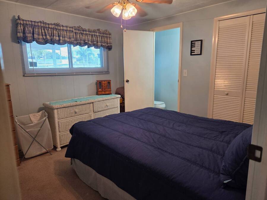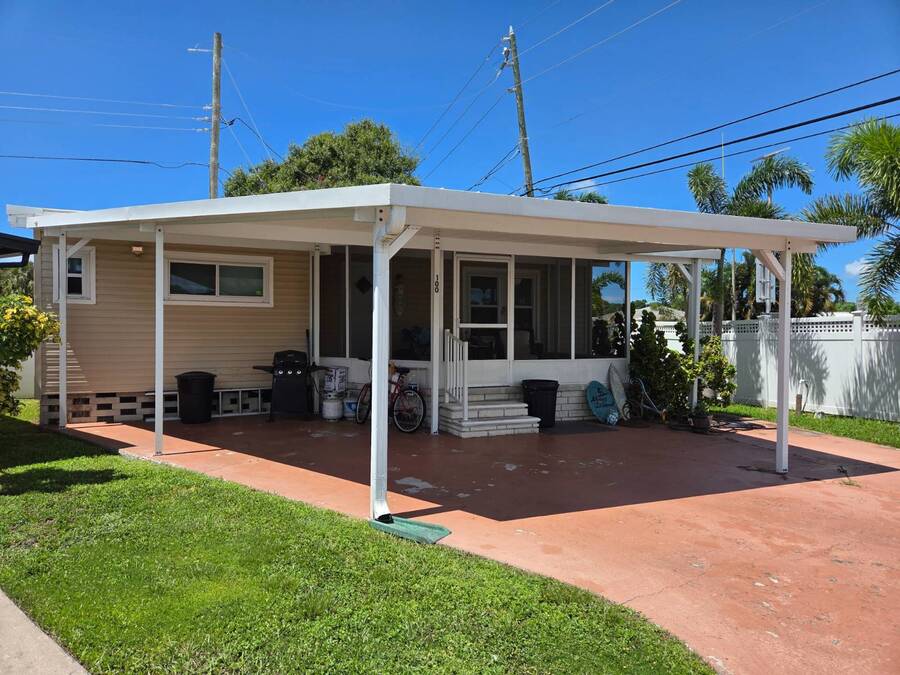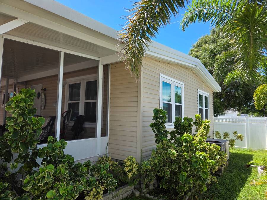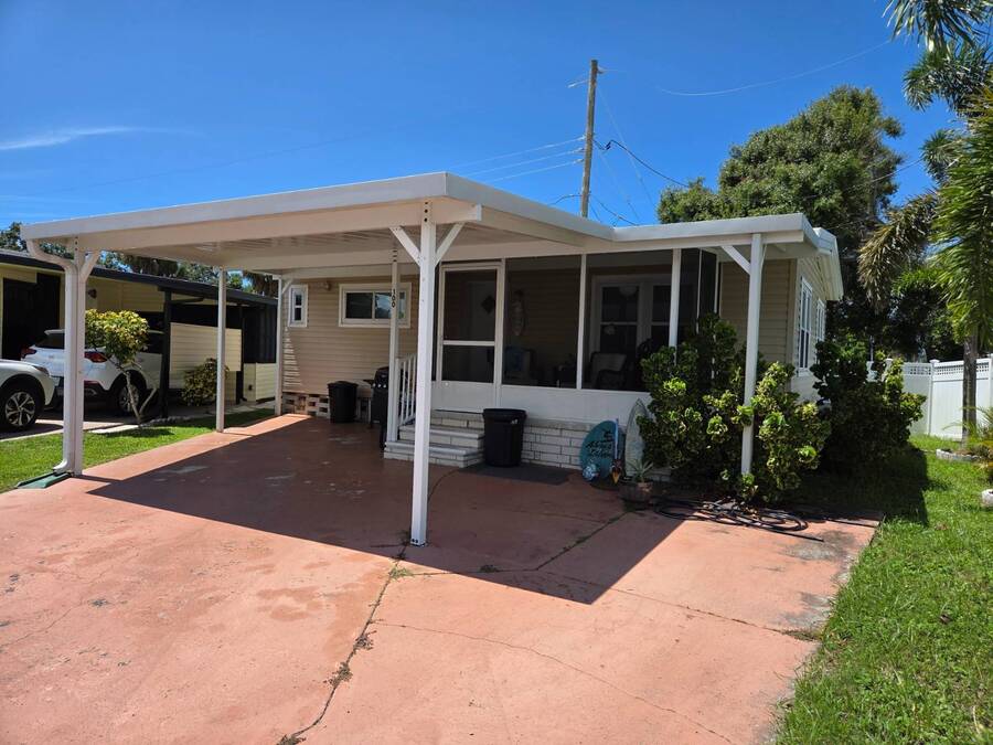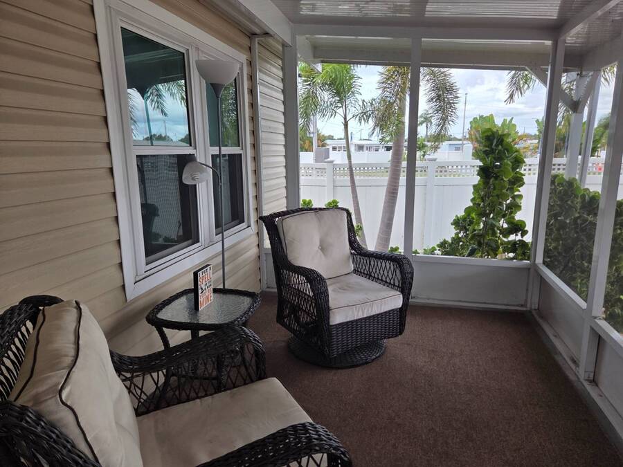 This Remodeled 2 bed 1.5 bath home is located in Isle of Palms a 55+ Community. The home comes fully furnished. The house has double pane energy efficient windows (installed in 2019), vinyl siding, screen room (installed in 2018), carport with side by side parking (installed in 2018), membrane roof over (installed in 2022). The home has updated bathrooms and newer plumbing throughout. The master bedroom with en suite half bath is located at the front of the home. The main bathroom is located in the hallway leading to the spare bedroom. The community amenities include a laundry room, clubhouse, shuffleboard court and attended lobby. The lot rent is $812 per month which includes sewer and trash water is about $30 per month. Listing data is deemed reliable but is NOT guaranteed accurate.