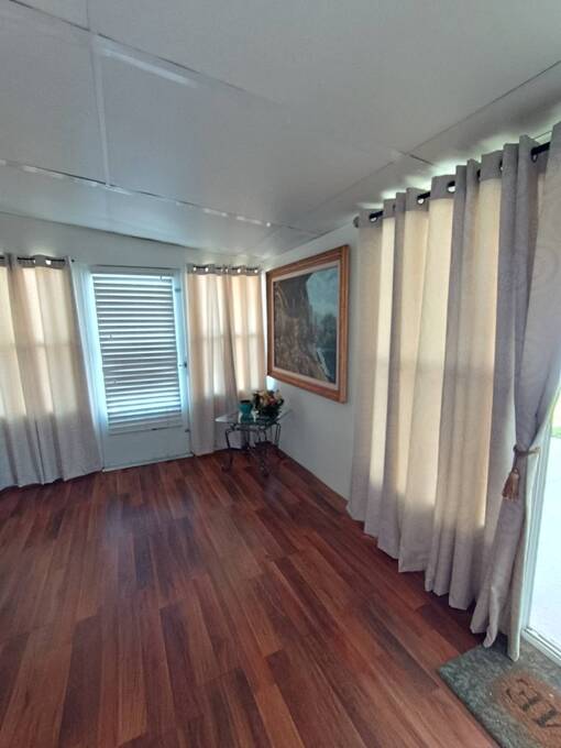 BEAUTIFUL MUST SEE HOME HAS ICE COLD CHA and some extra wall units. NO FLOODING HERE! LOWER LOT RENT, (630) WELL MAINTAINED, PET FRIENDLY, ANY SIZE PET, Central Air, INSIDE LAUNDRY, A BONUS ROOM, NEWER FLOORING, SECOND BEDROOM IS SMALL USED AS WALK IN CLOSET. BUT IT USED TO BE A BEDROOM. NEW BATH UPDATES WITH STEP IN SHOWER. THIS HOME HAS COVERED PARKING/PATIO SPACE, INSIDE LAUNDRY, STORAGE SHEDS, GRASSY LOT OUT BACK. HERE YOU WILL BE CLOSE TO BUS LINE, SHOPPING, PUBS, RESTAURANTS, HIKING, BIKING TRAILS, BOATING AND FISHING, KAYAKING, EASY ACCESS TO HIGHWAYS, 10 MINUTES TO DOWNTOWN, 20 MINUTES TO BEACHES, ETC. THE $630 INCLUDES WST, AND LAWN. FRIENDLY 50+ COMMUNITY HAS CLUBHOUSE, SHUFFLE BOARD AND OTHER ACTIVITIES, MANAGEMENT TEAM LIVES ONSITE. FREE GROCERY DELIVERY AT THE CLUBHOUSE ONCE A MONTH. WHAT MORE DO YOU NEED? SELLER IS MOTIVATED! MESSAGE ME FOR A TOUR!
