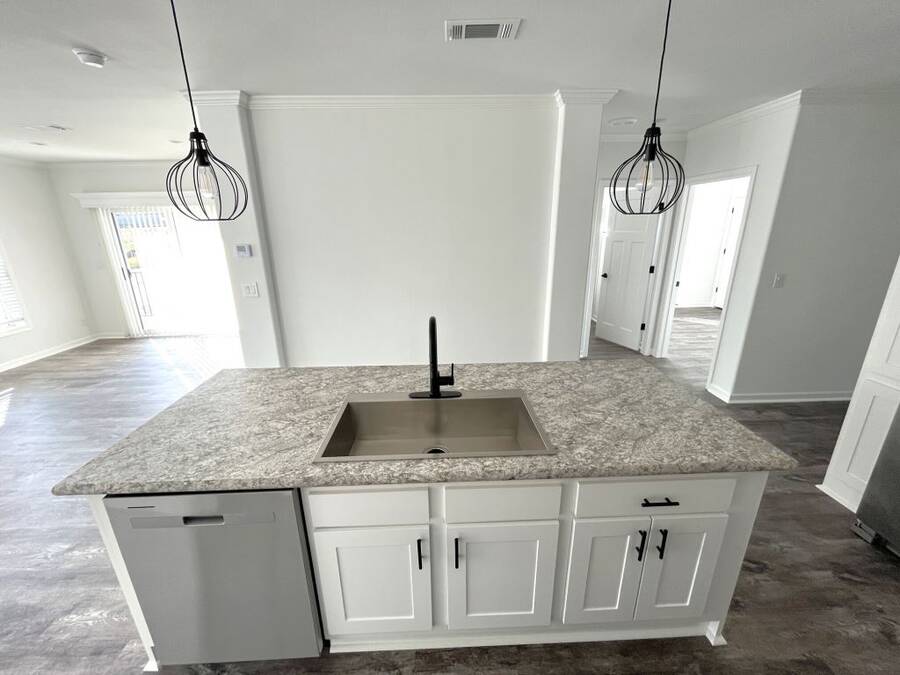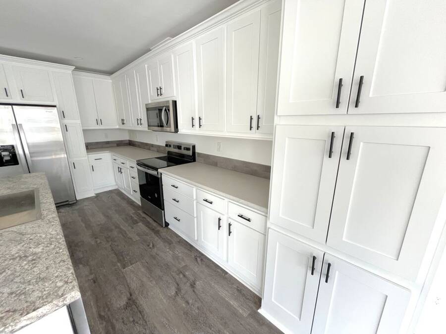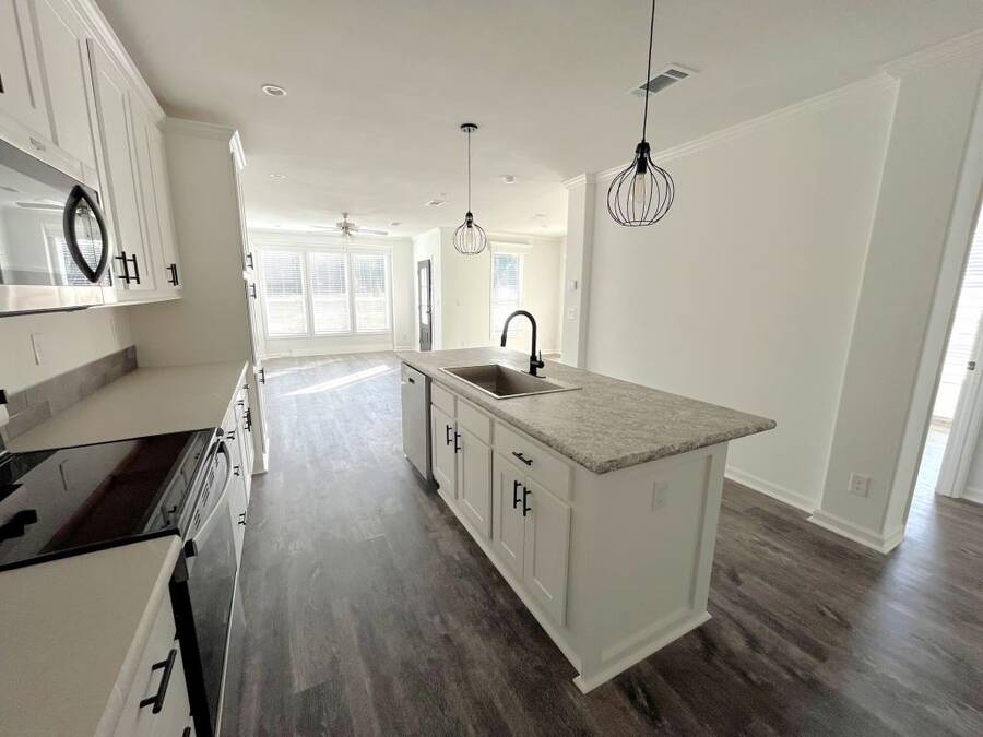 Step inside to find an open-concept floor plan, high ceilings and lots of natural light.. The beautiful kitchen boasts a center island and tons of cabinetry for ample storage, perfect for both everyday living and entertaining. The spacious primary suite offers a peaceful retreat, complete with en-suite features like dual vanities, walk-in shower and walk-in closet. Additional bedrooms provide versatility for guests, a home office, or a craft room. Outside you will enjoy a wrap around front porch and beautiful low-maintenance landscaping, ideal for entertaining or unwinding.