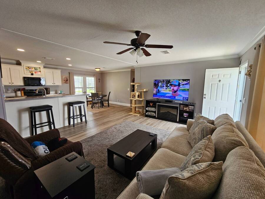 This home is located in Island Vista Estates MHP! This is an All Ages Pet Friendly Gated community! Rentals Allowed! This lovely 4bed 2bath home is turn key and in amazing condition! There are a variety of copious amenities including a heated swimming pool, horseshoes, Boat/RV storage, fishing, a fitness center, a basketball court, 2 different playgrounds, a banquet room, clubhouse with games, billiards room, a library and more! There are No HOA fees and No property taxes either! The landlease fee is only $861, which includes water, trash pickup, lawn service, plus all of the amenities!! ** Call Richard for a Showing **
