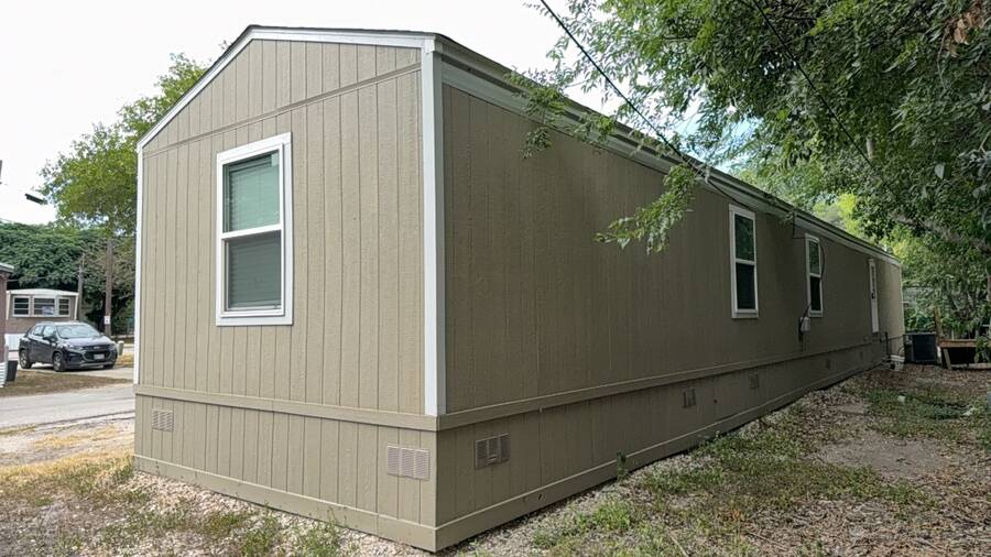 Step into this bright and welcoming 2022 manufactured home featuring 3 spacious bedrooms and 2 full bathrooms, perfectly designed for comfortable living in 1064 square feet. The GLORY model by CMH TRUMH showcases modern vinyl siding and a durable shingle roof that combines style with low maintenance. Located in the heart of San Antonio, this home offers the perfect blend of contemporary design and practical functionality. The thoughtful layout maximizes every square foot, creating an inviting atmosphere for families or anyone seeking quality living space. Enjoy the convenience of city water, sewer connections, and electric utilities for hassle-free living. Monthly lot rent is $700 plus utilities. RBI#37392 Centrally Located, Perfect for First Time Home Buyer