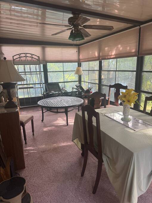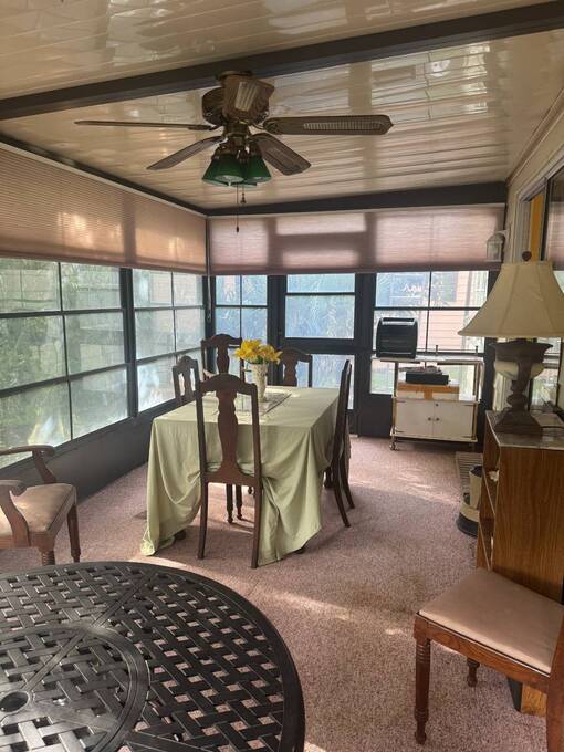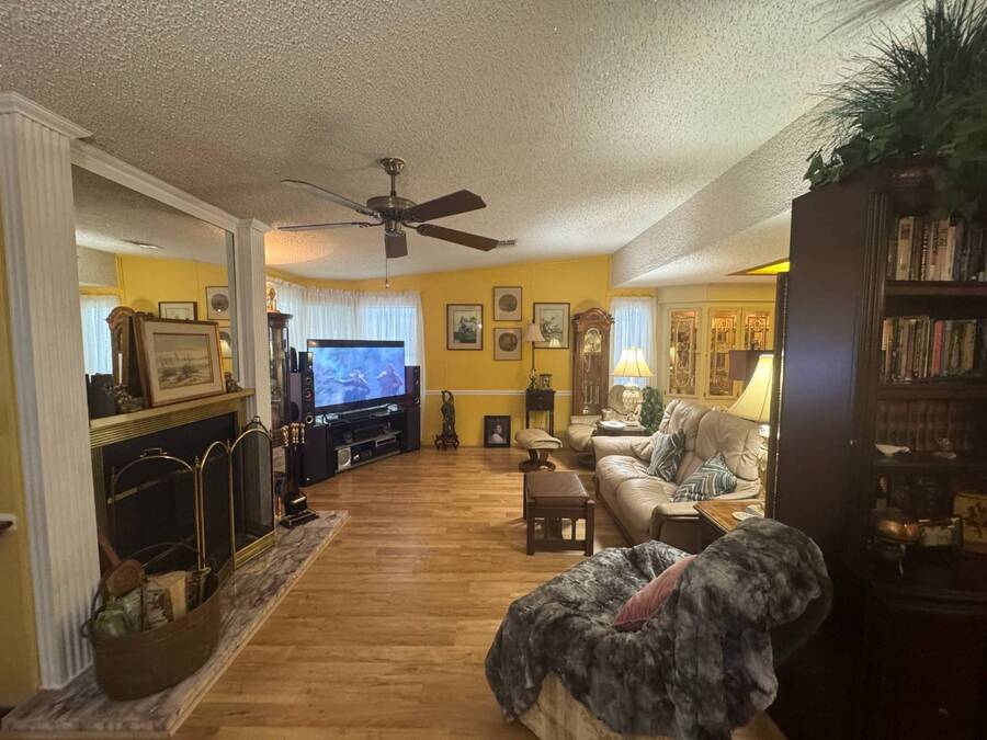 Welcome to The Falls, a desirable 55+ community where comfort meets convenience. This 2-bedroom, 2-bath home offers over 1,800 sq. ft. of inviting living space, highlighted by a sunny Florida room-perfect for morning coffee, hobbies, or entertaining guests. The home comes equipped with all appliances including a stand-alone icemaker, bar area, ceiling fans throughout, and a cozy wood-burning fireplace that creates a warm, welcoming atmosphere. This home also boast skylights throughout along with extra-large walk-in closets. The exterior of the home has been freshly painted with newer vinyl windows in the Florida room. This beautiful home also has a brand-new roof. An outdoor storage shed provides ample space for tools, seasonal décor, or extra belongings. With its thoughtful layout and great features, this home is ready for your personal touch. Schedule your tour today and see why The Falls is such a sought-after place to call home!