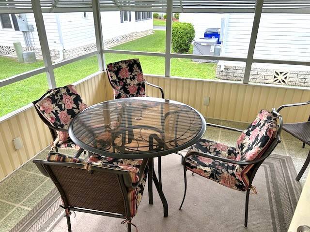 ft. of living space plus a 150 sq. ft. screened lanai-perfect for relaxing year-round. Recent updates provide peace of mind, including a new roof (2023), new water heater (2024), and AC (2016). The home also features an irrigation system to keep the landscaping looking its best. This property comes fully furnished and move-in ready, complete with a golf cart (new batteries 2024) and a large golf cart shed for storage. A spacious covered driveway provides plenty of parking for you and your guests. Located in a desirable 55+ community, this home offers the ideal blend of comfort, convenience, and lifestyle amenities.