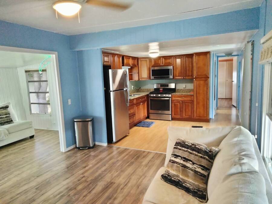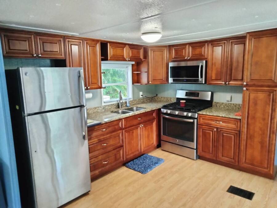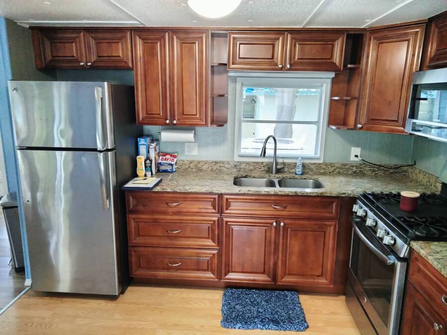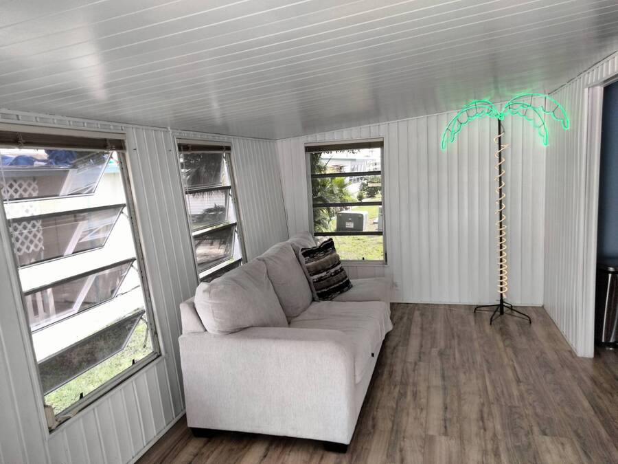 This highly remodeled home is a 2-bedroom, 2-bathroom open floor plan and is sold with furnishings. It's located in the Harbor Lights Mobile Home Park, on Boca Ciega Bay. Lot rent is +/- $950 a month and includes water, garbage, sewer and lawn care. Front bedroom is with en suite with a 3-piece bath. This home has a newer kitchen with beautiful wood cabinets, slow close drawers, granite counter tops, newer stainless-steel appliances throughout. It has many newer double paned vinyl energy efficient windows. The baths are updated as well. It has laminate floors throughout. Central air unit replaced in 2015. Hall bath has a newer shower stall and nice counter tops. Newer interior paint throughout 1 year ago. It has a metal roof over. The home has a shed with laundry & storage. The front porch is covered with access to the Florida room. The home has window blinds. The side door opens to a carport. The Florida room gives you more space and is open to the living room. The home has a vapor barrier. The home also has a newer tank-less water heater 3 months old. Harbor Lights is a 5 Star Waterfront 55 plus Community, located next to a marina. Harbor Lights offers a Tropical Pool area with a Fire Pit for Cooler Evenings, Billiards, Shuffleboard, Bocce Ball, Library, Large Club House, Fishing Pier with Picinic area, Horseshoes, Putting Green, Access to the Pinellas Trail and Let's Not forget about the Almost Famous Tiki Bar at the Marina that is within walking distance. Harbor Lights is Across from the VA Hospital, Close to the Bus Line, Shopping, Restaurants, and Only 5 minutes to the MOST BEAUTIFUL BEACHES in ALL of Florida. Call today for a Showing...