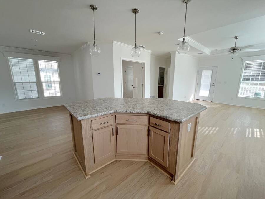 Step inside to find an open-concept floor plan, with lots of natural light. The lovely kitchen boasts features like a large kitchen island,and plenty of storage space, perfect for both everyday living and entertaining. The spacious primary suite offers a peaceful retreat, complete with en-suite features like dual vanities, walk-in shower and closet. The additional bedroom and den provide versatility for guests, a home office, or a hobby room. Outside you will enjoy low-maintenance landscaping, and stunning neighborhood views ideal for entertaining or unwinding.