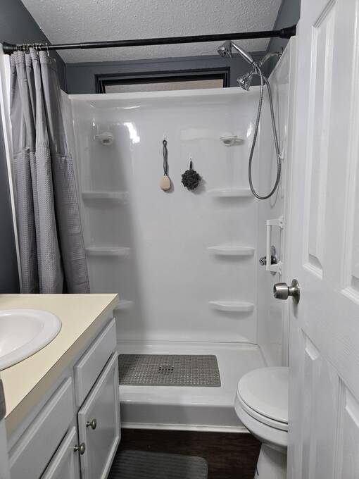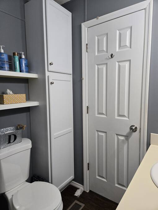 The washer and dryer are tucked away in their own dedicated room, keeping the main living area clutter free. A great spot to store away cleaning supplies. This laundry room also includes water and sewer hookups, giving you the option to easily add a second bathroom if desired.