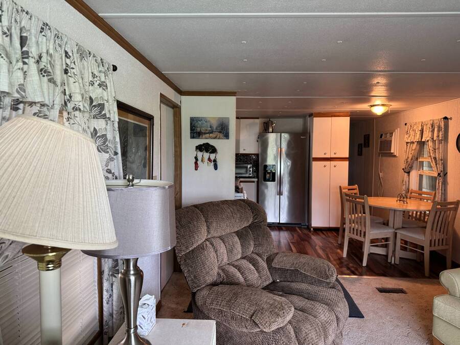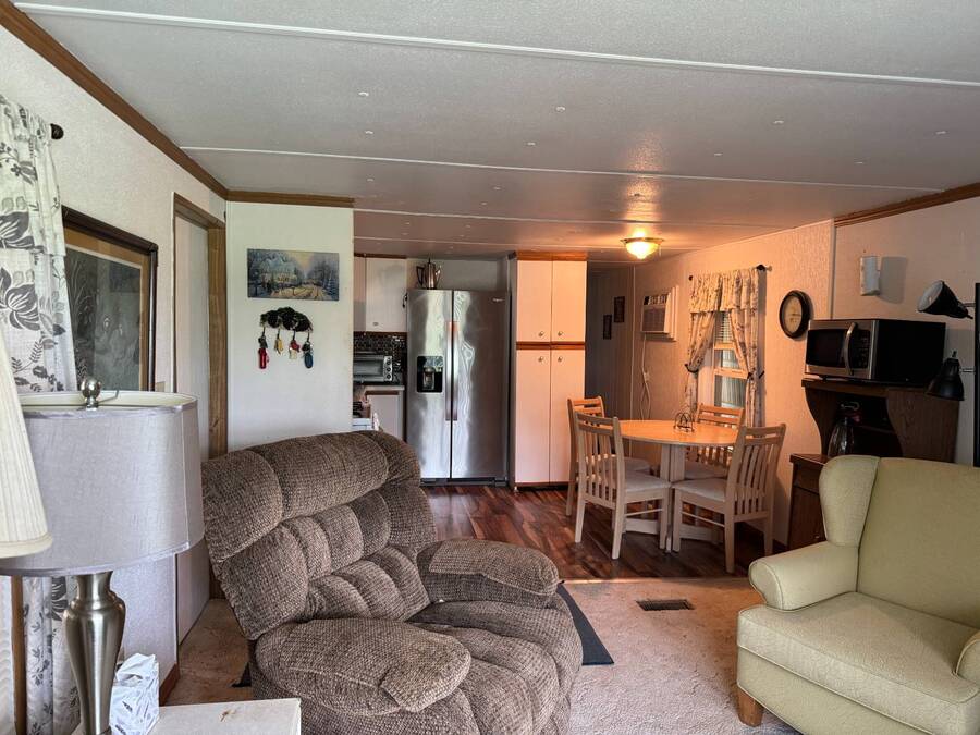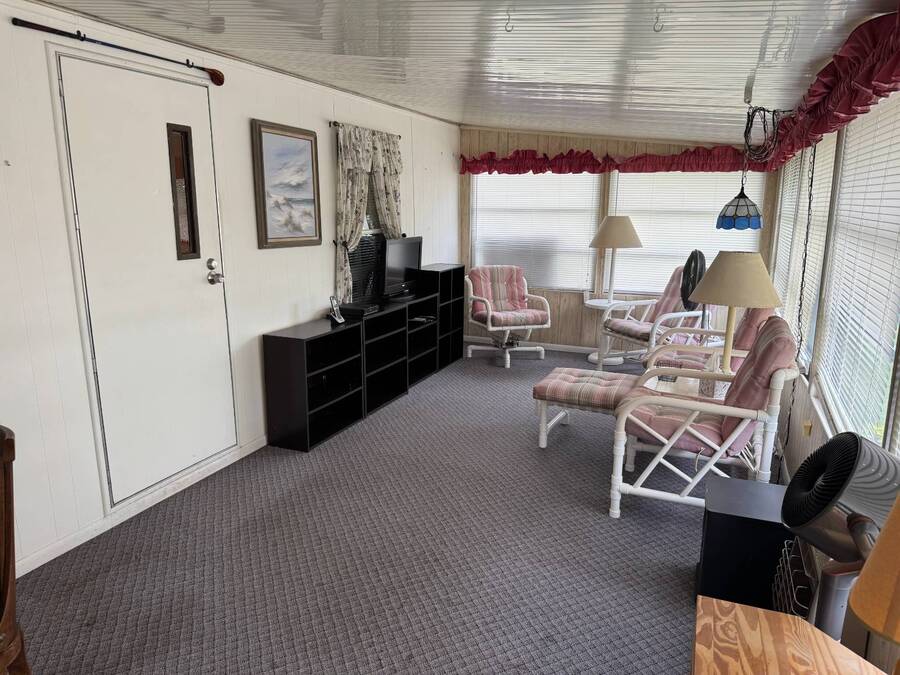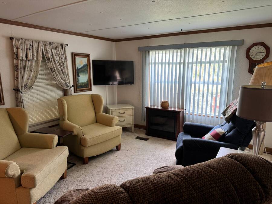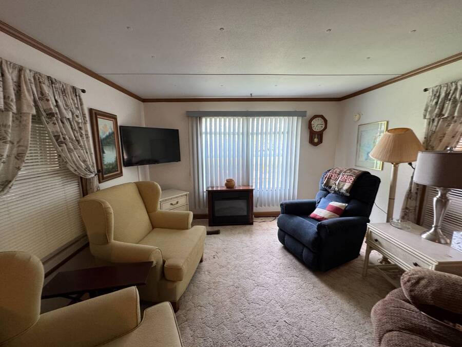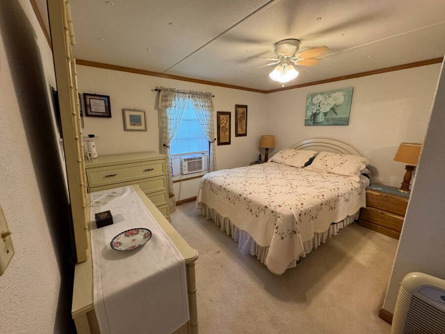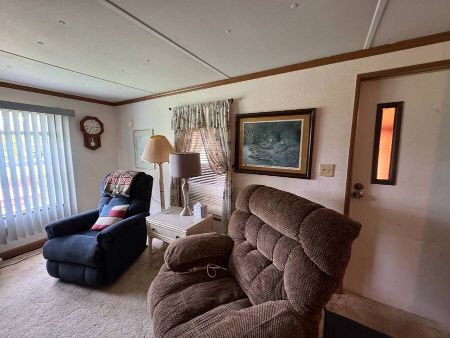 ***Reduced Price*** If you're looking for a quiet home nestled in a quaint 55+ community outside the hustle and bustle of Haines City in Central Florida, this 2-bedroom/1-bath manufactured home in Oak Harbor is for you. This home is conveniently situated on a channel to Lake Lowery with its own private dock, making it a Fisherman's dream location. Access to this private 1000-acre lake offers some of the best largemouth bass fishing in the area. Lot rent is currently $650 per month and includes use of amenities, trash, mowing, water, and sewer. This home has plenty of room to relax and entertain in the large living room with plush carpet, the enclosed lanai, and a separate screen room. Other key features are the indoor laundry, walk-in shower, and a spacious primary bedroom. Oak Harbor is the perfect place for residents who like peace and quiet while enjoying all the activities of a 55+ community. There are observatory lake views, fishing, boating, two clubhouses, billiards, cards, and ladderball. Call one of the listing agents today to schedule an in-person or virtual tour! NOTE: All listing information is deemed reliable but not guaranteed and should be independently verified through personal inspection by appropriate professionals. Our company does not and cannot guarantee or warrant the accuracy of this information or the condition of this property. The buyer assumes full responsibility for obtaining all current rates of lot rent, fees, and pass-on costs. Additionally, the buyer is responsible for obtaining all rules, regulations, pet policies, etc., associated with the community, park, or home from the community/park manager. Our company is not responsible for quoting said fees or policies. Financing is available through 3rd party lenders. The sales price does not include tax, dealer fees, or administrative fees.
