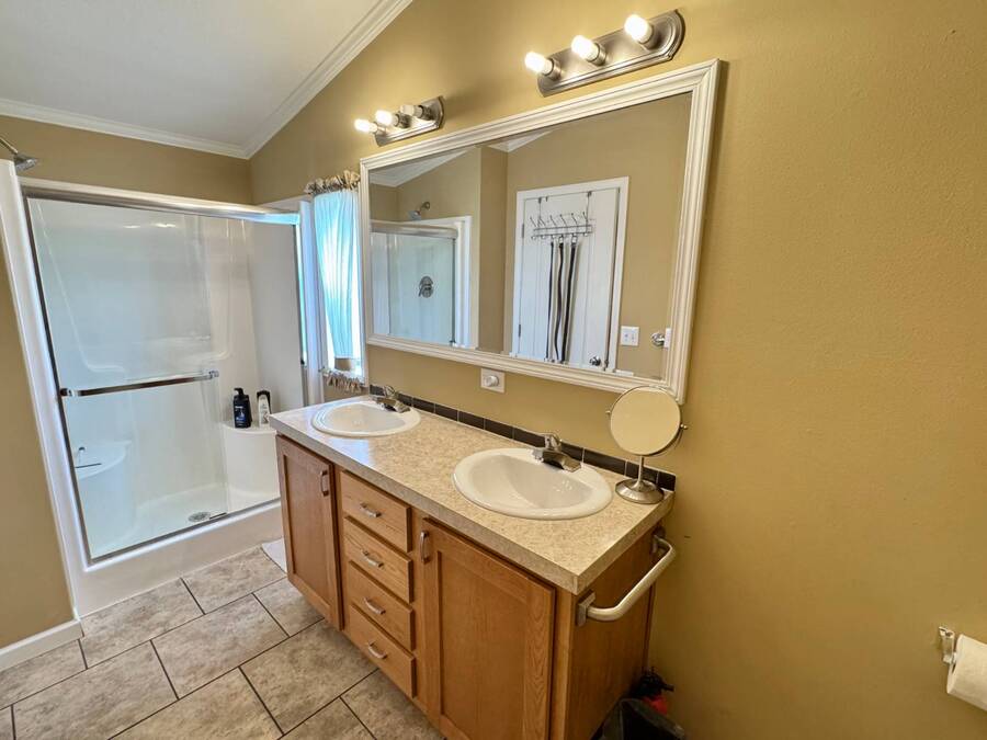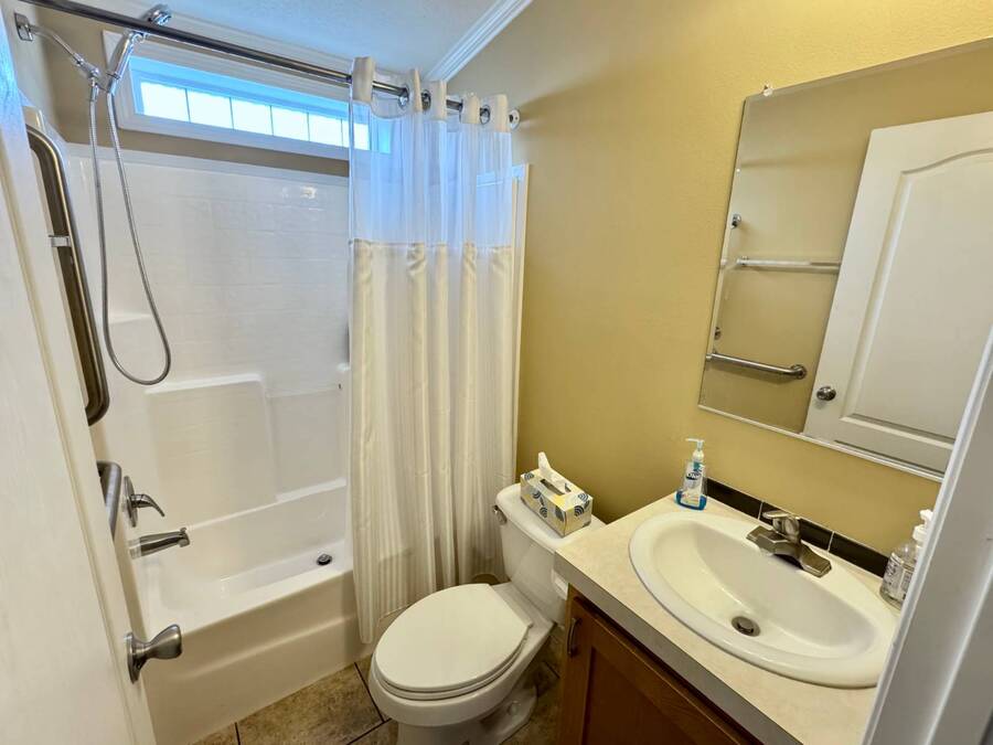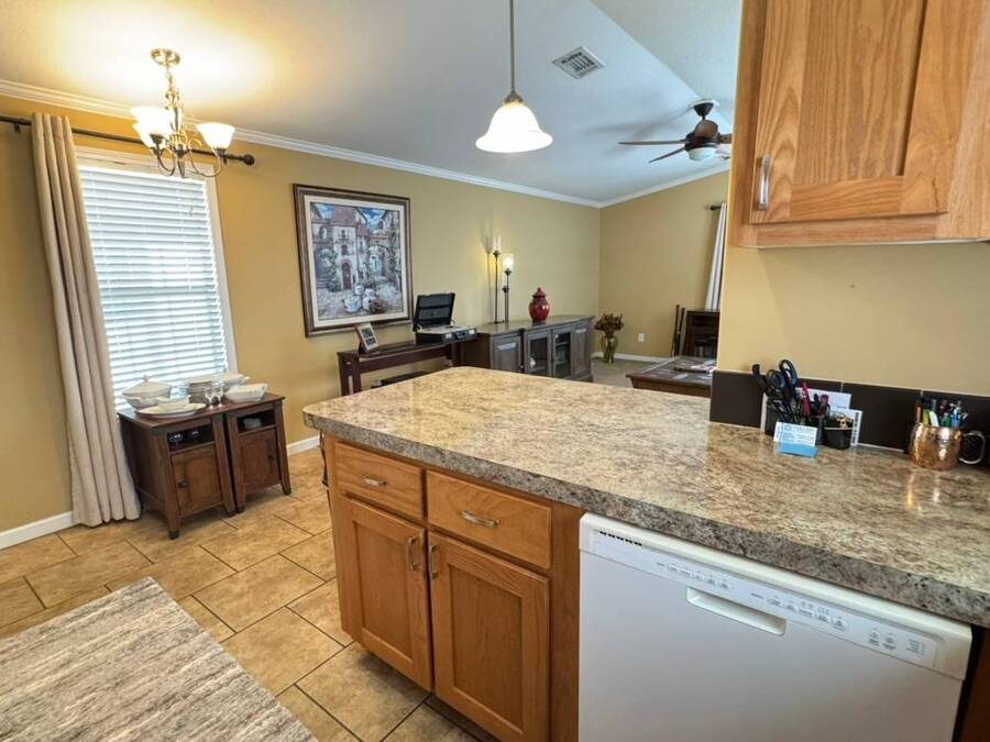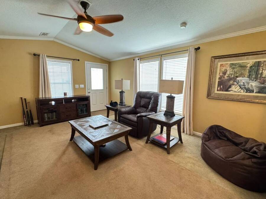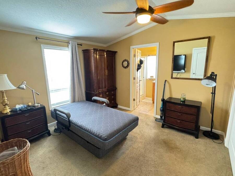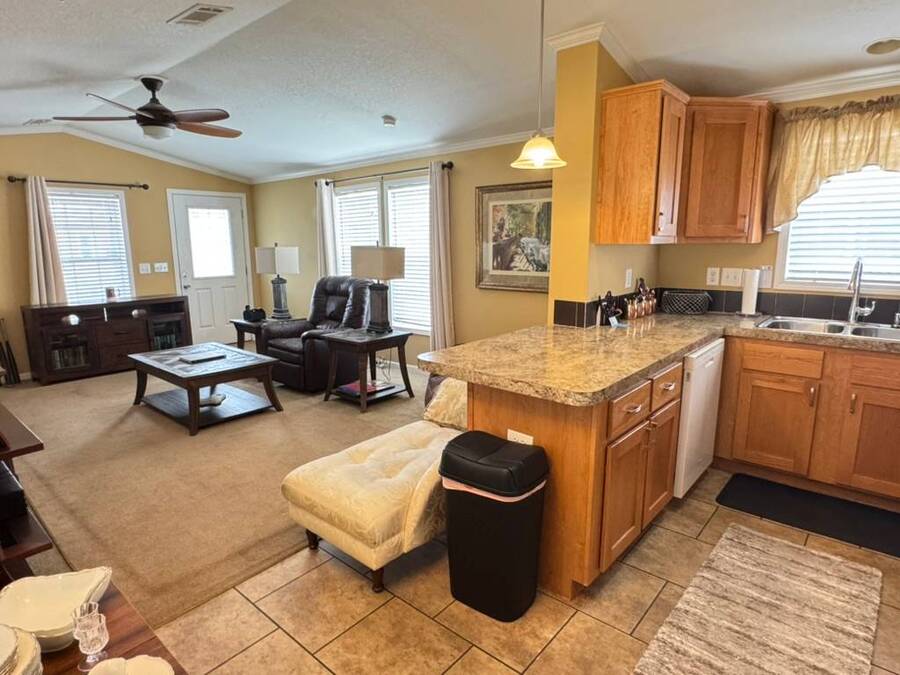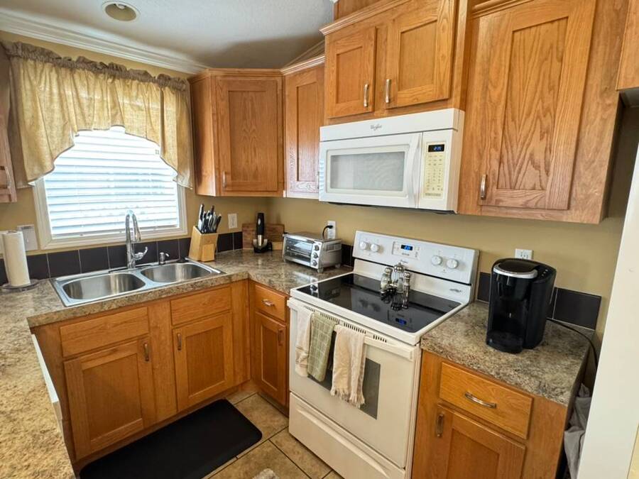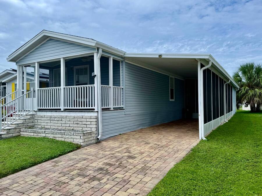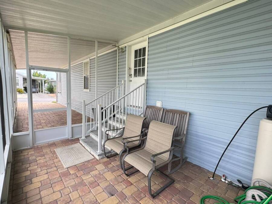 Built in 2014, this well-kept 2-bedroom, 2-bathroom home offers modern living in a bright, welcoming space. A screened-in front porch and cathedral ceilings create an open feel with plenty of natural light. The paver driveway leads to a screened lanai, perfect for relaxing outdoors. The kitchen features ample cabinet and countertop space, matching Whirlpool appliances, and flows seamlessly into the nearby living room. The spacious main bedroom easily accommodates a king-size set and includes a private en suite bathroom for added convenience. Additional highlights include a Samsung washer and dryer conveniently located inside the home, as well as a whole-home water softener system. Located in Winward Lakes, a gated and pet-friendly 55+ community in South Tampa, residents enjoy top-notch amenities such as a heated pool and fitness center. The land lease is $839 per month, and the community is conveniently close to shopping, restaurants, medical facilities, major retailers, and the Crosstown Expressway. Affordable, well-maintained, and ideally located-this home offers the best of Florida living. Come see it today! While all information is considered reliable, we encourage prospective buyers to conduct their own personal inspections for a comprehensive understanding of the property's condition and measurements. Please note that American Mobile Home Sales of Tampa Bay Inc. cannot guarantee the accuracy of this information. As a buyer, you will be responsible for all closing costs, sales tax, and title transfer fees associated with the purchase. The buyer assumes full responsibility for obtaining all current rates for lot rent, fees, and any pass-on costs, as well as to familiarize yourself with the lease agreement and community regulations. For these details, please reach out to the community or park manager directly. American Mobile Home Sales of Tampa Bay Inc. is not responsible for quoting said fees or policies.