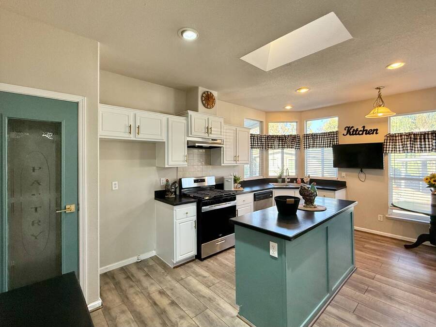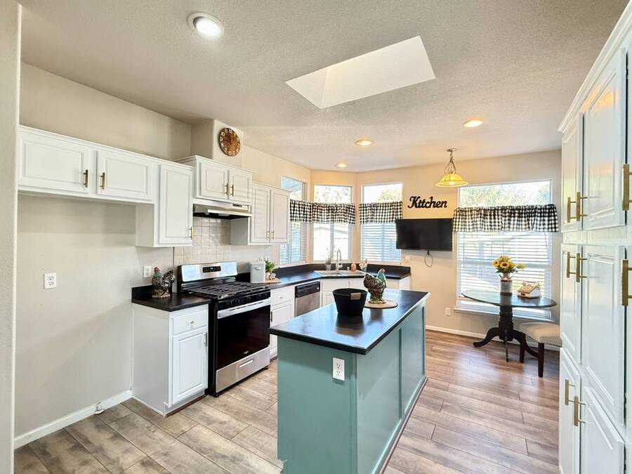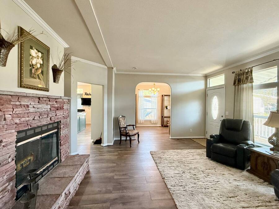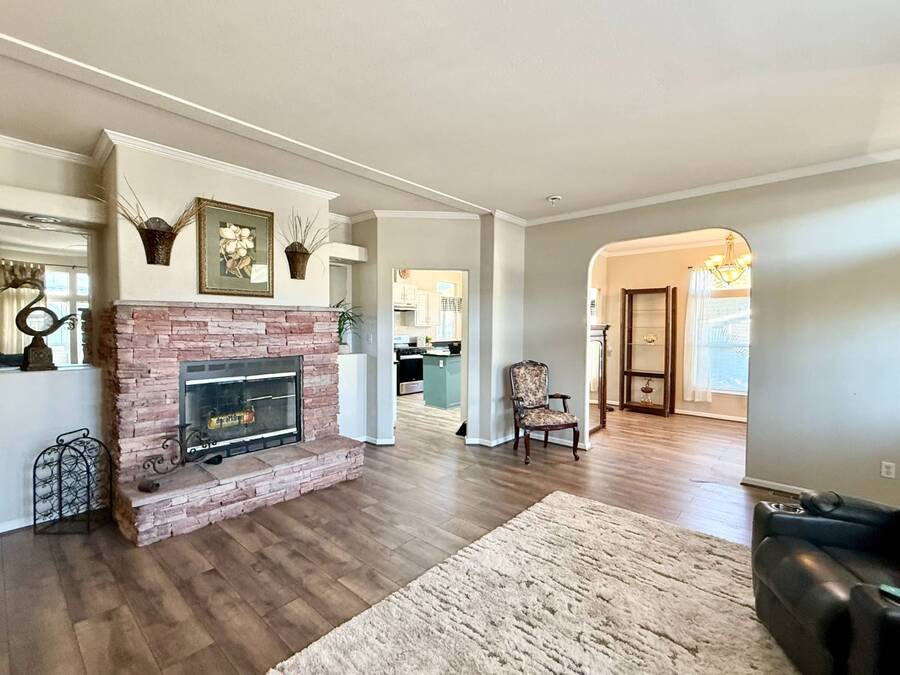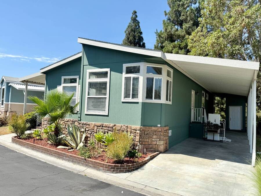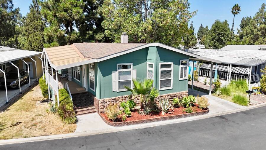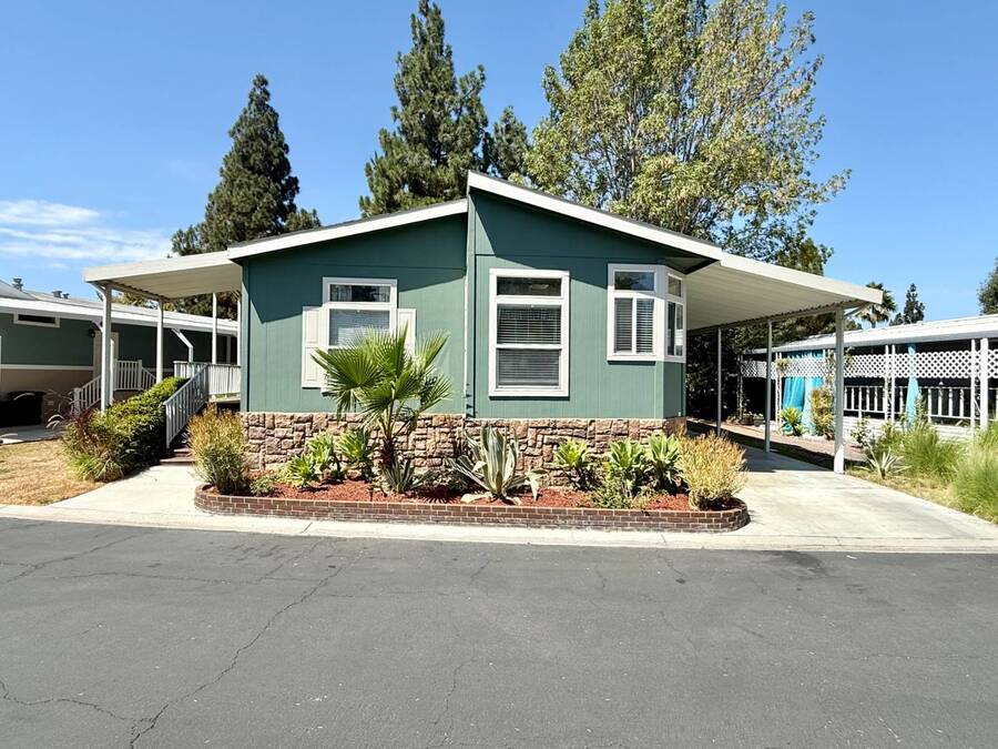 Introducing the community's premier find: a 2006 manufactured home with 1,566 square feet of refined living, perfectly positioned on a quiet cul-de-sac. This 2-bedroom + den, 2-bath gem backs up to greenspace, offering Barranca views and rare privacy that transform everyday living into a serene retreat. Exterior updates shine with freshly painted siding, refreshed landscaping, a huge covered porch, and a concrete driveway leading to a spacious storage shed and a large side yard-the ideal setup for outdoor entertaining and effortless curb appeal. Inside, every detail radiates modern luxury and ease: freshly painted interiors, all-new elegant flooring, and a chef's kitchen featuring a center island, white cabinetry with new brass hardware, a brand-new stove, a breakfast nook, skylight, and a large pantry for superb storage. The great let's the light shine through with high ceilings, oversized windows, a wood-burning fireplace, and crown molding, while the formal dining area opens to the living space for effortless entertaining. The primary suite is a private sanctuary with high windows framing Barranca and greenspace views, a colossal walk-in closet with dual access from bedroom and bath, and a spa-like bath with dual vanities, a deep soaking tub, a step-in shower, plus large windows to enjoy the scenery. A dedicated laundry with cabinet storage and deep sink, plus a den ready to become your home office or reading room, round out this move-in-ready home-arguably the finest in the community. Schedule your private tour today and discover why this is the most amazing home in the neighborhood. If you've been looking for a home in the desirable Forest Gardens Mobile Home Community, This House will not disappoint. Forest Gardens s a Premier 5-Star Manufactured Home Community. It offers a Sparkling Pool and Spa, Tennis Courts, a Fitness Center, a Large Community Center, Planned Activities, a Friendly Atmosphere, and Professional On-Site Management. See why so many happy residents call this the Best Kept Secret in Orange County.