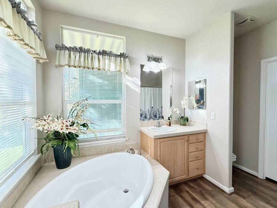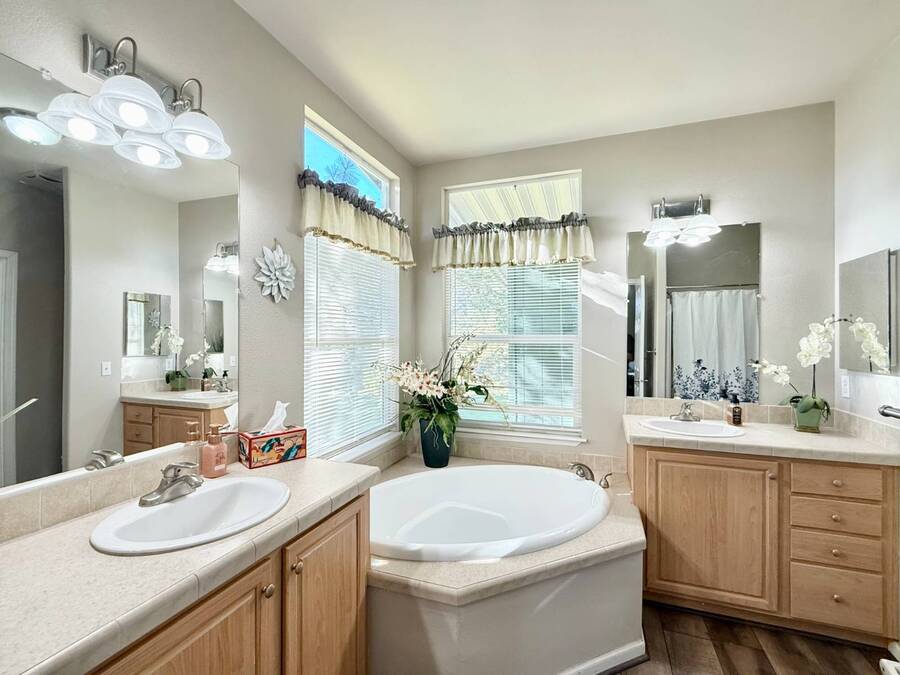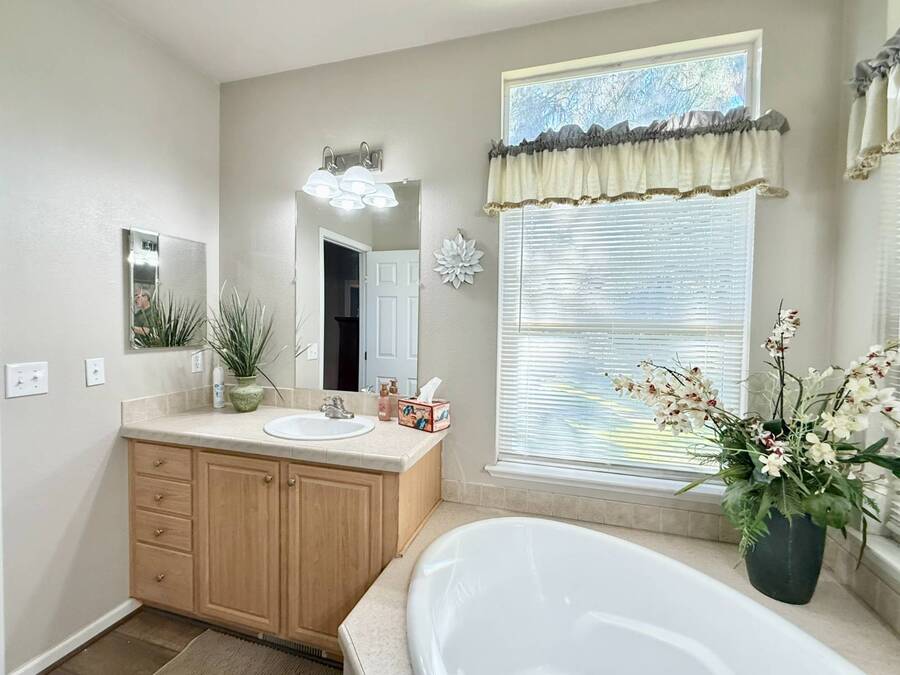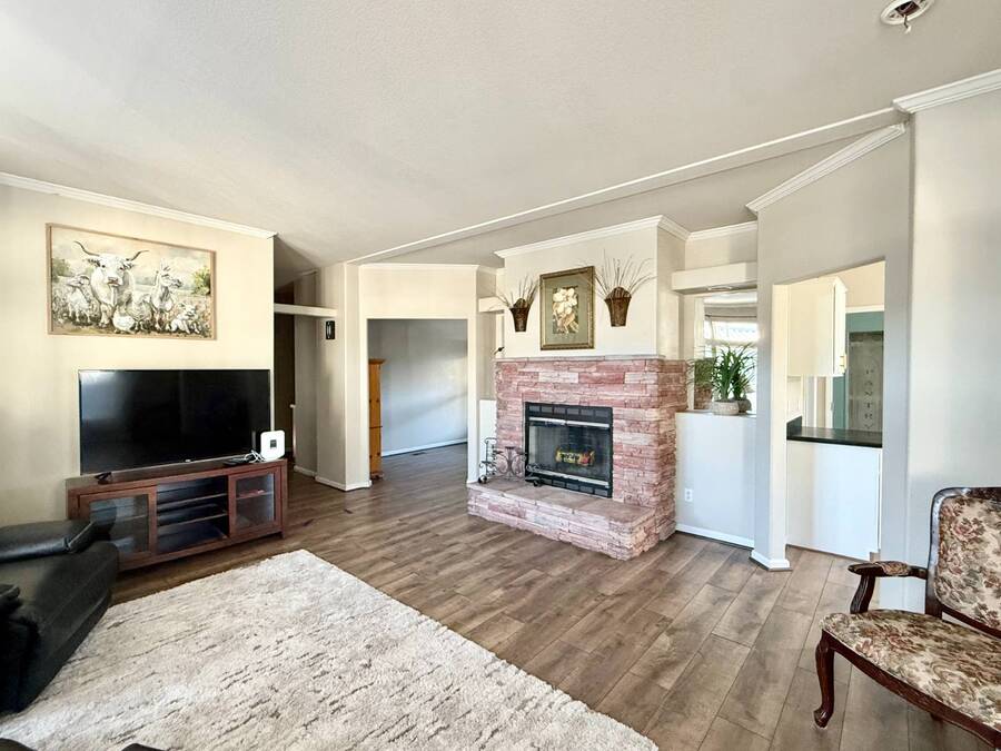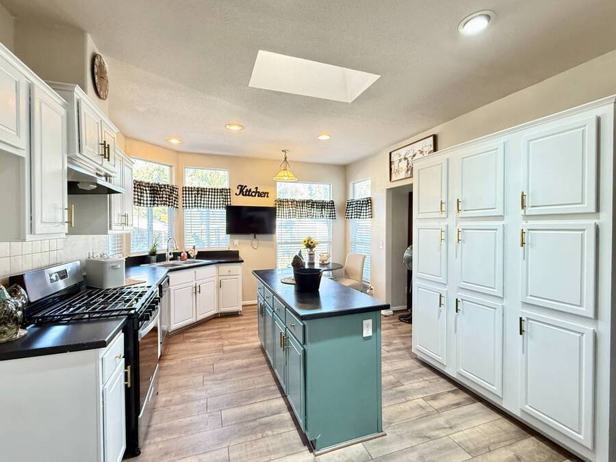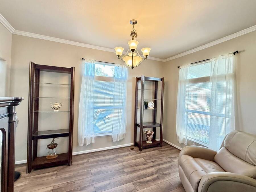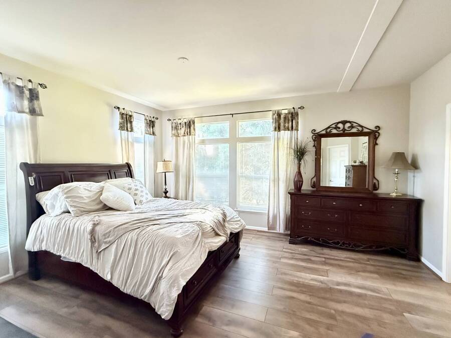 Introducing the community's premier find: a 2006 manufactured home with 1,566 square feet of refined living, perfectly positioned on a quiet cul-de-sac. This 2-bedroom + den, 2-bath gem backs up to greenspace, offering Barranca views and rare privacy that transform everyday living into a serene retreat. Exterior updates shine with freshly painted siding, refreshed landscaping, a huge covered porch, and a concrete driveway leading to a spacious storage shed and a large side yard-the ideal setup for outdoor entertaining and effortless curb appeal. Inside, every detail radiates modern luxury and ease: freshly painted interiors, all-new elegant flooring, and a chef's kitchen featuring a center island, white cabinetry with new brass hardware, a brand-new stove, a breakfast nook, skylight, and a large pantry for superb storage. The great let's the light shine through with high ceilings, oversized windows, a wood-burning fireplace, and crown molding, while the formal dining area opens to the living space for effortless entertaining. The primary suite is a private sanctuary with high windows framing Barranca and greenspace views, a colossal walk-in closet with dual access from bedroom and bath, and a spa-like bath with dual vanities, a deep soaking tub, a step-in shower, plus large windows to enjoy the scenery. A dedicated laundry with cabinet storage and deep sink, plus a den ready to become your home office or reading room, round out this move-in-ready home-arguably the finest in the community. Schedule your private tour today and discover why this is the most amazing home in the neighborhood. If you've been looking for a home in the desirable Forest Gardens Mobile Home Community, This House will not disappoint. Forest Gardens s a Premier 5-Star Manufactured Home Community. It offers a Sparkling Pool and Spa, Tennis Courts, a Fitness Center, a Large Community Center, Planned Activities, a Friendly Atmosphere, and Professional On-Site Management. See why so many happy residents call this the Best Kept Secret in Orange County.