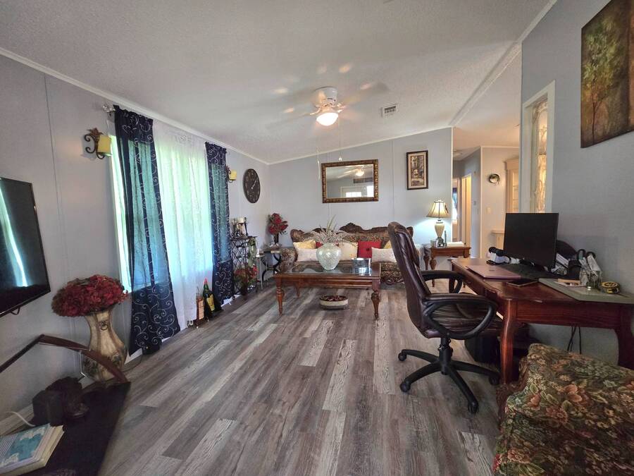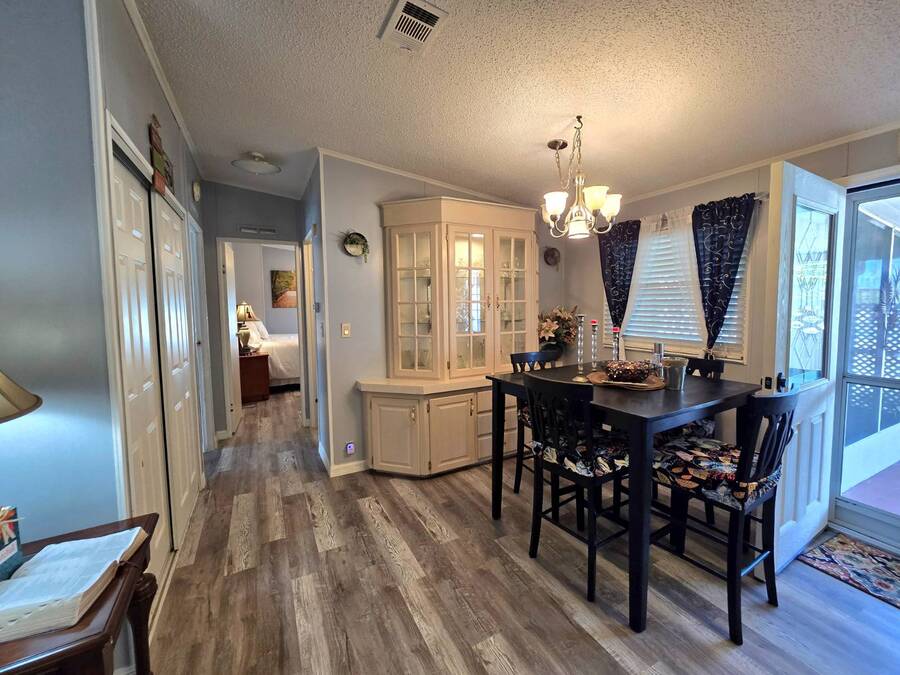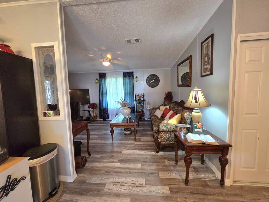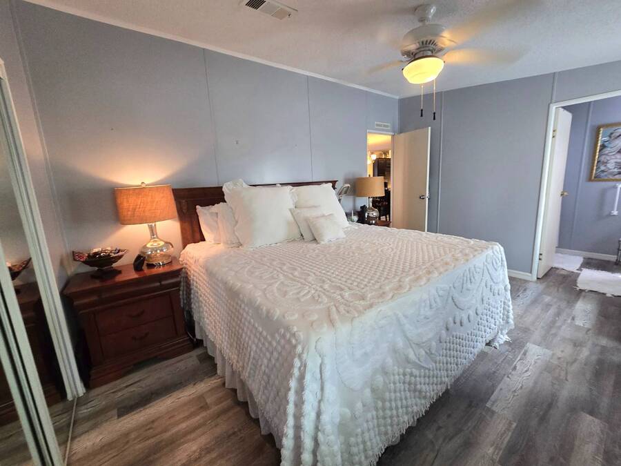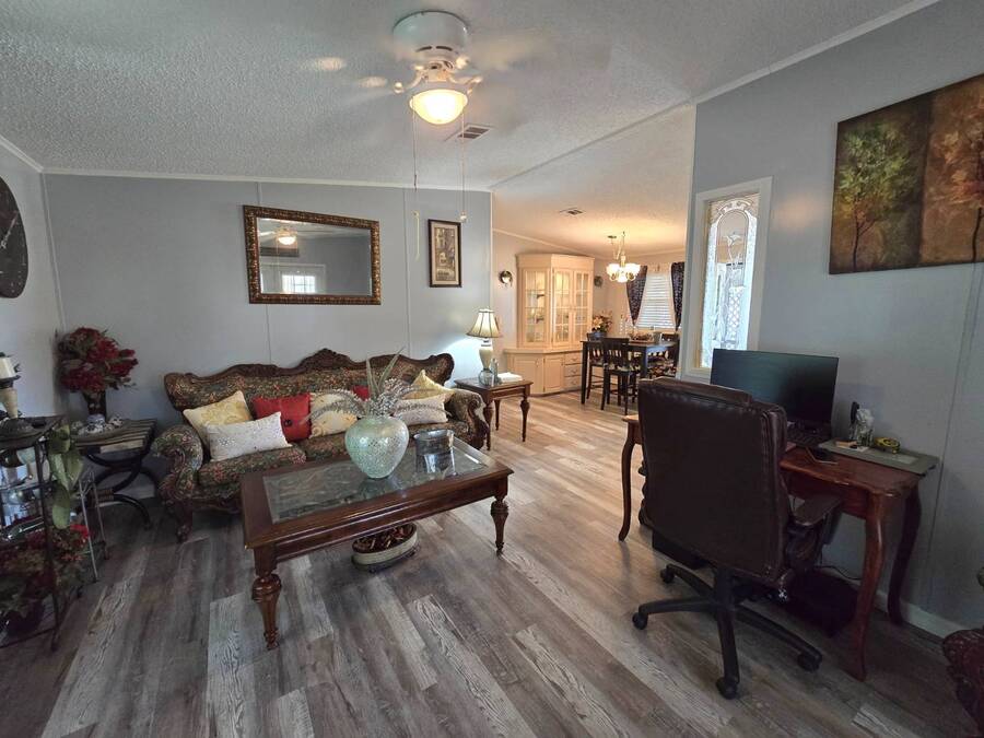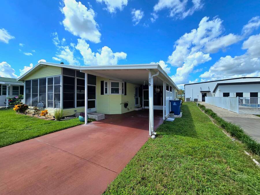 Lot Rent includes Water. Welcome to this beautifully remodeled 2-bedroom, 2-bath double-wide manufactured home located in the highly sought-after Orange Acres Ranch, a vibrant 55+ community in scenic Lake Wales, Florida. With 975 square feet of thoughtfully designed living space, this home is packed with comfort, convenience, and charm. Step inside to find luxury vinyl flooring throughout, a modern open layout, and central air for year-round comfort. The spacious primary suite features an ensuite bathroom with a stand-up shower, walk-in closet, and ceiling fan, while the guest bathroom boasts a brand-new vanity. The kitchen comes fully equipped with all appliances, a garbage disposal, and a generous pantry that doubles as a linen closet-ideal for extra storage. Some furnishings are available for purchase, making your move even easier. Enjoy morning coffee or evening breezes from the screened-in porch, or relax on the cozy back patio. The covered carport fits two vehicles, and the laundry is conveniently located in the adjacent storage shed. This home truly sits on one of the best lots in the community-just steps away from the community center, pool, jacuzzi, and mail station, giving you unmatched access to amenities and social activities. Orange Acres Ranch offers a warm, welcoming lifestyle with pet-friendly policies, breathtaking views, and a full calendar of events to keep you active and engaged. With a 2-year-old roof, fresh upgrades, and priced to sell, this home is a rare find in one of Lake Wales' most desirable 55+ communities. Don't miss your chance to own this gem-schedule your private tour today! NOTE: You must apply with management to get approved to live in this community.