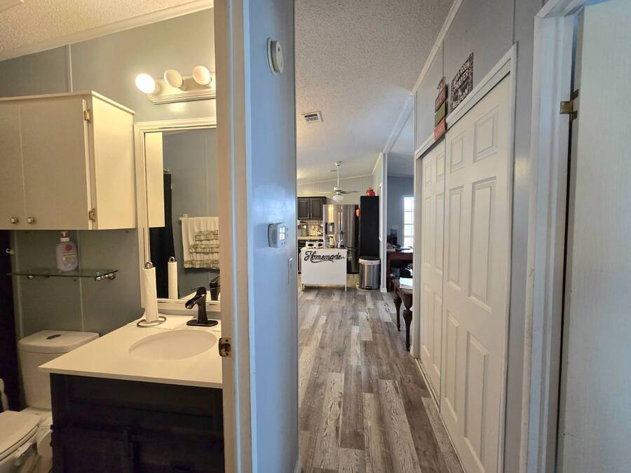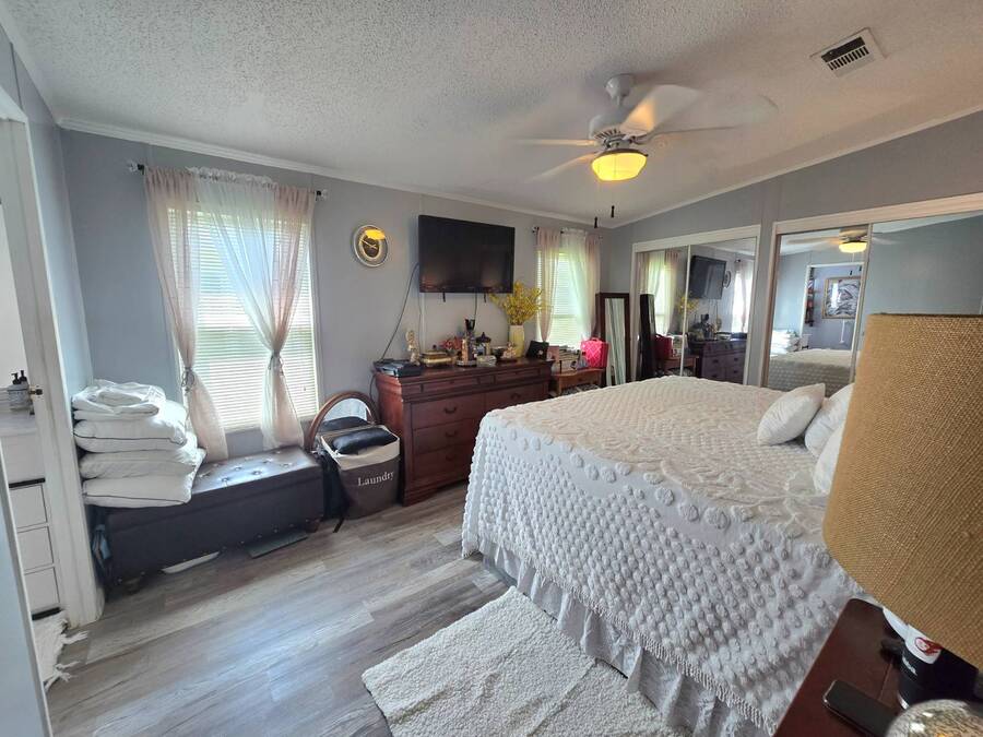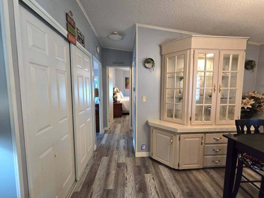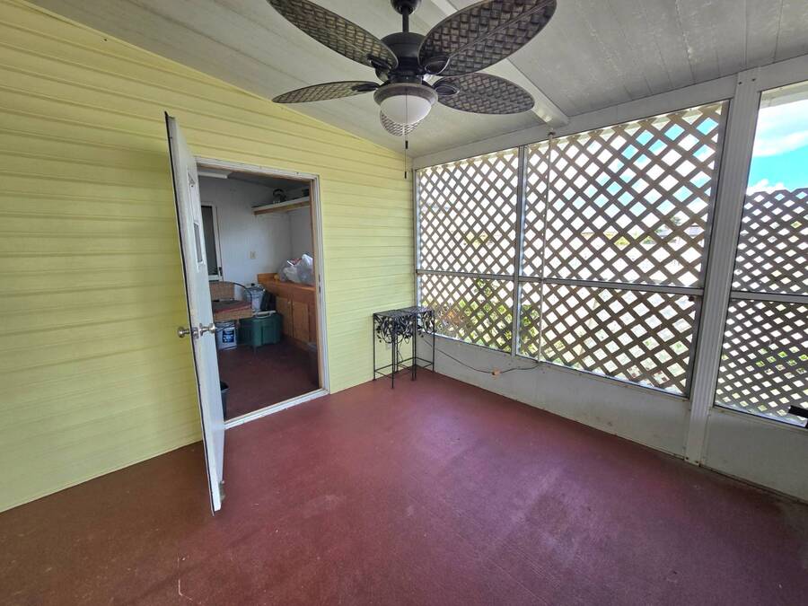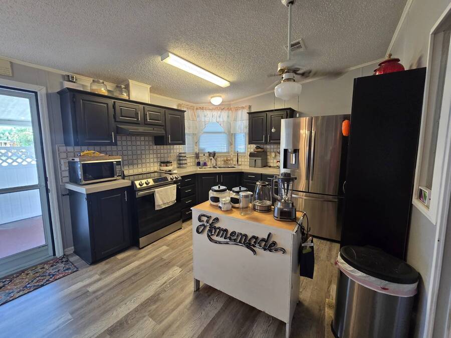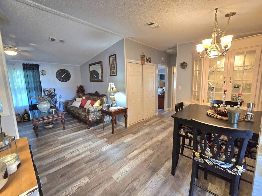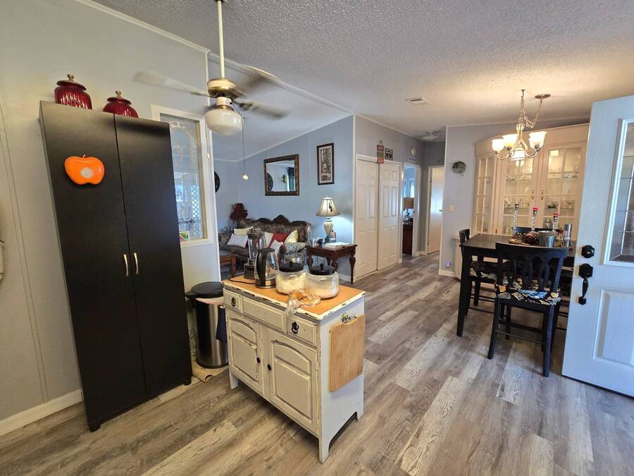 Lot Rent includes Water. Welcome to this beautifully remodeled 2-bedroom, 2-bath double-wide manufactured home located in the highly sought-after Orange Acres Ranch, a vibrant 55+ community in scenic Lake Wales, Florida. With 975 square feet of thoughtfully designed living space, this home is packed with comfort, convenience, and charm. Step inside to find luxury vinyl flooring throughout, a modern open layout, and central air for year-round comfort. The spacious primary suite features an ensuite bathroom with a stand-up shower, walk-in closet, and ceiling fan, while the guest bathroom boasts a brand-new vanity. The kitchen comes fully equipped with all appliances, a garbage disposal, and a generous pantry that doubles as a linen closet-ideal for extra storage. Some furnishings are available for purchase, making your move even easier. Enjoy morning coffee or evening breezes from the screened-in porch, or relax on the cozy back patio. The covered carport fits two vehicles, and the laundry is conveniently located in the adjacent storage shed. This home truly sits on one of the best lots in the community-just steps away from the community center, pool, jacuzzi, and mail station, giving you unmatched access to amenities and social activities. Orange Acres Ranch offers a warm, welcoming lifestyle with pet-friendly policies, breathtaking views, and a full calendar of events to keep you active and engaged. With a 2-year-old roof, fresh upgrades, and priced to sell, this home is a rare find in one of Lake Wales' most desirable 55+ communities. Don't miss your chance to own this gem-schedule your private tour today! NOTE: You must apply with management to get approved to live in this community.