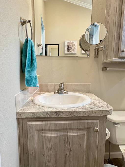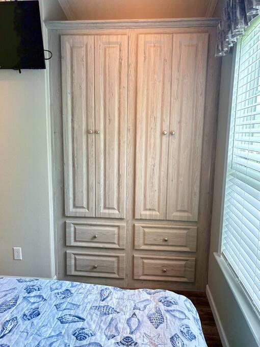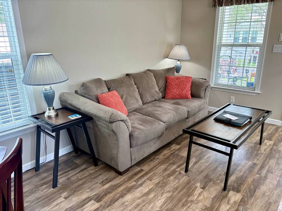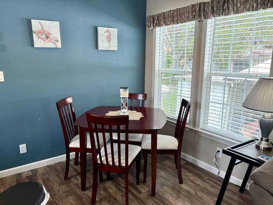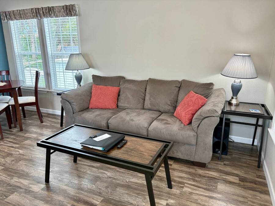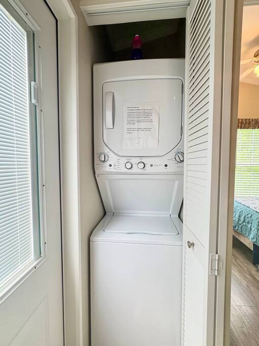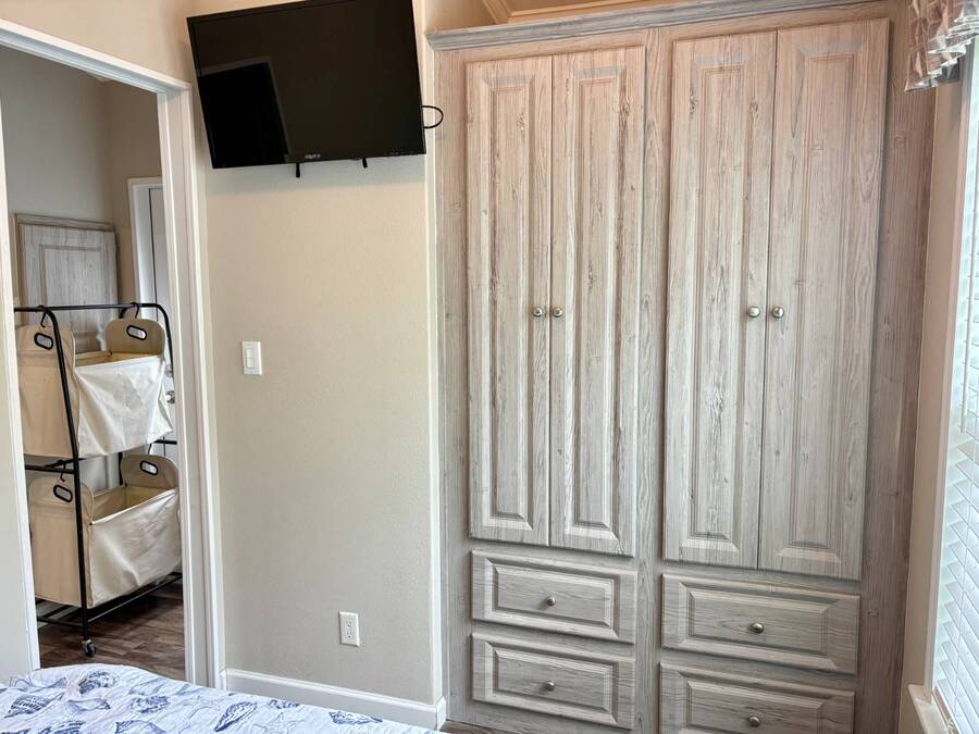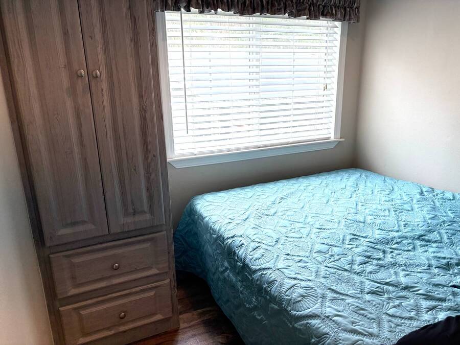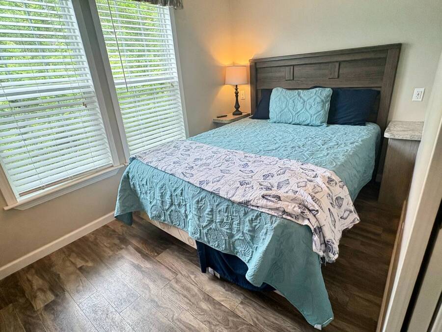 This gorgeous 2018 park model is truly like new and offers everything you need for your Florida dream lifestyle. Featuring two bedrooms, this turnkey home comes fully furnished and stocked with linens, dishes, pots, pans, utensils, and even an in-house stacked washer and dryer. Just drop your suitcase and start living the good life. Outside, a wide paved driveway provides plenty of parking space, while the charming raised covered front porch with white railing invites you to relax and enjoy the Florida weather. The porch includes chairs, a table, and a ceiling fan for added comfort. Inside, you'll find a spacious open floor concept that begins with a cozy living area featuring a sofa, armchair, and wall-mounted TV. This space flows seamlessly into the dining area with a table for four and a curved kitchen equipped with all original appliances, including a dishwasher, microwave, stove, and beautiful white-washed cabinets, counters, and pantry-all still like new. The open area is filled with windows, making it light and bright throughout. The bathroom includes a tub/shower combo, a lovely vanity, and a bonus stacked washer and dryer tucked into an alcove near the side exit, complete with a laundry cart. The guest bedroom offers a double bed, built-in nightstand, and a cabinet for hanging clothes with drawers. The master bedroom features a queen bed, built-in nightstands, built-in closets, and a mounted TV. Both bedrooms and the bathroom are fitted with space-saving pocket doors. This home also includes a full-house A/C unit and a furnace for heat when needed, ensuring year-round comfort. If you're looking for a beautiful Florida home that doesn't need a single thing, you've found it here. Discover the joys of residing in an active, family-friendly park conveniently located in South Venice, just minutes away from the Gulf of Mexico and its sandy beaches. Enjoy the mini golf course and designated play area for kids. Unwind by participating in a game of chess on a large outdoor board. Relax and rejuvenate in the large pool and spa, offering a perfect oasis for warm, sunny days. Explore the serene waters of the Myakka River with convenient on-site kayak storage and launch facilities. Stay active and take advantage of fishing opportunities or visit the fitness center for a workout. All this is onsite to make this property an ideal retreat for a vibrant Florida lifestyle. Venture beyond the community to explore nearby attractions to downtown Wellen Park or historic Venice offering an array of dining options, shopping and cultural events. Visit the beautiful beaches where one can find shark teeth galore! And, Tiger Woods pop stroke with two courses in Sarasota and a casino in Tampa are a must. All listing information given to our company is considered appropriate and reliable but should be independently verified through personal inspection by appropriate professionals. The lot rent is very reasonable and covers all amenities offered and other expenses including lawn maintenance, trash, water and sewer.