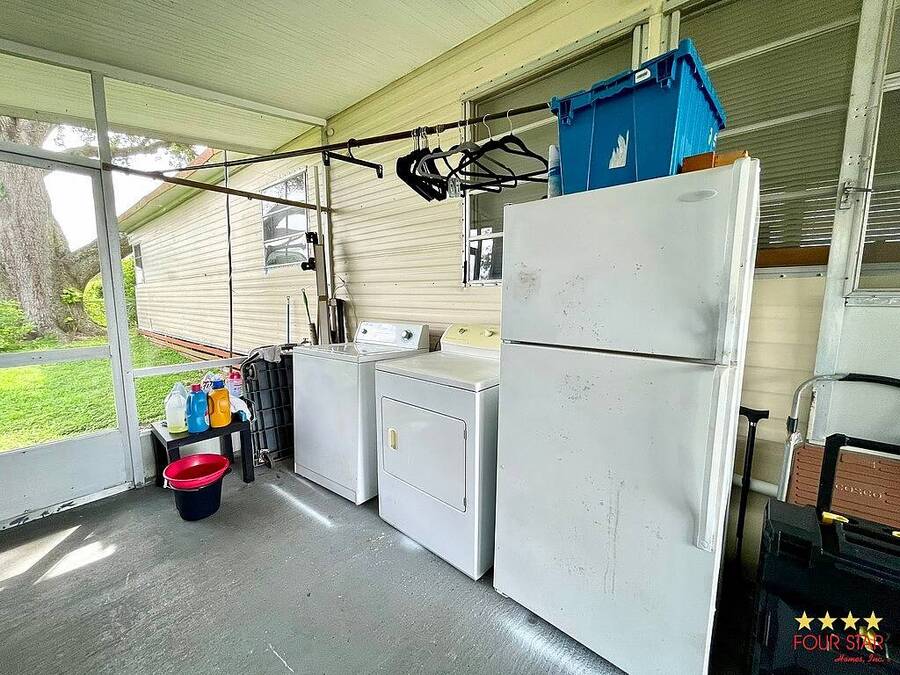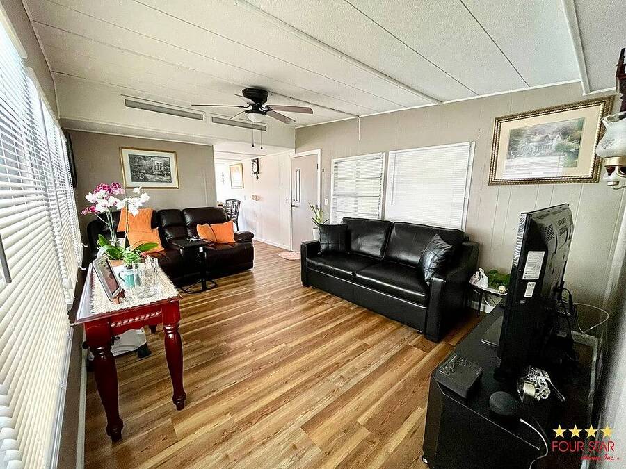 Welcome to Starlight Ranch, a vibrant 55plus community on leased land offering resort-style living at an unbeatable price. This well-maintained 2-bedroom, 1-bathroom manufactured home is move-in ready and comes fully furnished. Step inside to find new flooring throughout, a spacious kitchen with dining area, and a comfortable living room perfect for relaxing or entertaining. The home is in excellent condition and priced to sell at just $28,000. Enjoy all that Stylar Ranch has to offer, including a gated entrance, a warm and welcoming atmosphere, and plenty of resident activities to keep you engaged. Ideally located just minutes from Orlando International Airport, shopping, dining, and all the attractions Central Florida is famous for. Do not miss your chance to enjoy the beautiful Sunshine State lifestyle at an affordable price. Come see this gem today!