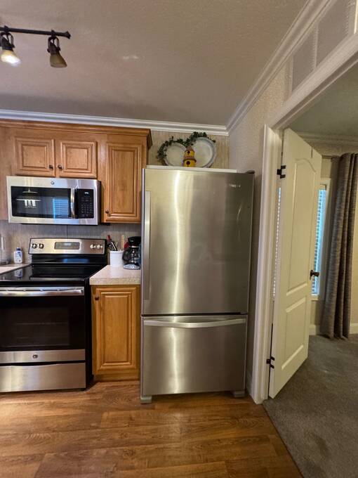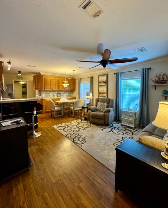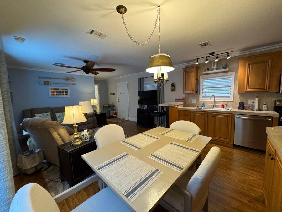 MERRITT ISLAND VILLAGE 55+ ADULT PARK. Call to view this lovely 2-bedroom/2-bath Split plan FURNISHED home with appliances! This picture-perfect home is captivating and move-in ready! Experience the casual, relaxed lifestyle of Florida living in this 2013 Fleetwood in beautiful Merritt Island, Florida. This home sits on leased land in the adult park of Merritt Island Village. Current lot rent is only $610 per month, which includes Water (3kg), sewage, trash/recycle, and basic lawn care. Wow! Home improvements and remodels outside and inside began in 2017: JUST a few OUTSIDE Features include a Covered, top-of-the-line, carport with driveway **Installed in 2017, this 19 X 56 Rhino Pan roof is hurricane proof to 180 MPH, trimmed with gutters, fascia, flashing, downspouts, grid pattern to eliminate pests, and PRIVACY screening. Also offered is a 7 x 20 screened and furnished deck with composite trek decking, an 8 X 12 storage shed with a loft offering plenty of storage room. INSIDE features of the home consist of many, many upgrades and remodels; come take a look in person! Merritt Island Village is a 55+ manufactured home park. Merritt Island Village has homes with lot rent, including the first 3000 gallons of water/sewer, trash pickup, and basic lawn mowing. 1 Small pet< 25lb allowed with Park approval. No Motorcycles allowed. This park offers a serene picnic area with a dock, kayak landing area, and storage. RV parking is available for a monthly or annual fee. (Check with park manager for pricing and availability). A FULL criminal/credit/income background check is required, $20 application fee per person. OUT OF TOWN!?!? NO WORRIES, WE CAN DO VIRTUAL SHOWINGS AND WE CAN DO PAPERWORK REMOTELY. FEEL FREE TO CALL, TEXT, OR EMAIL ME. I LOOK FORWARD TO HELPING YOU CALL YOUR NEW HOUSE A HOME! All listing information is deemed reliable but not guaranteed and should be independently verified through personal inspection by appropriate professionals. Our company does not and cannot guarantee or warrant the accuracy of this information or the condition of this property. Measurements are approximate. The buyer assumes full responsibility for obtaining all current rates of lot rent, fees, and pass-on costs. Additionally, the buyer is responsible for obtaining all rules, regulations, pet policies, etc., associated with the community, park, or home from the community/park manager. Our company is not responsible for quoting said fees or policies.