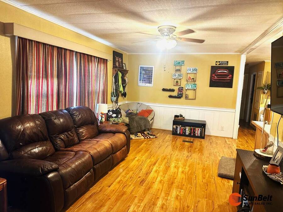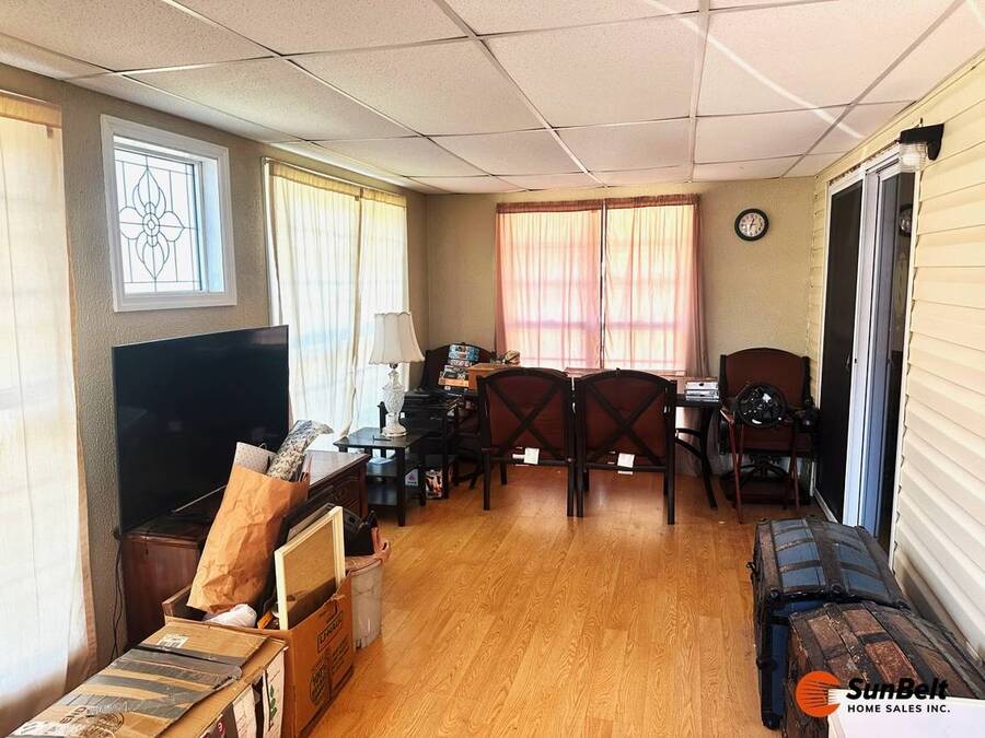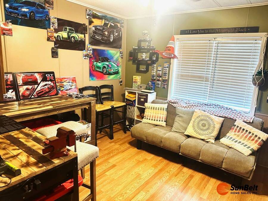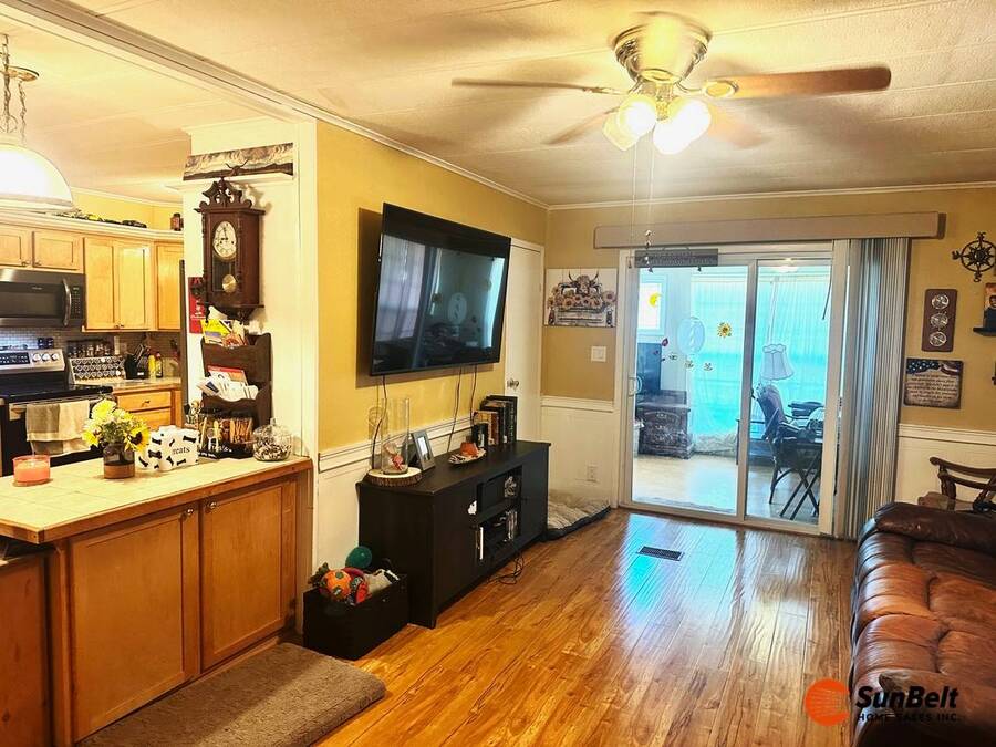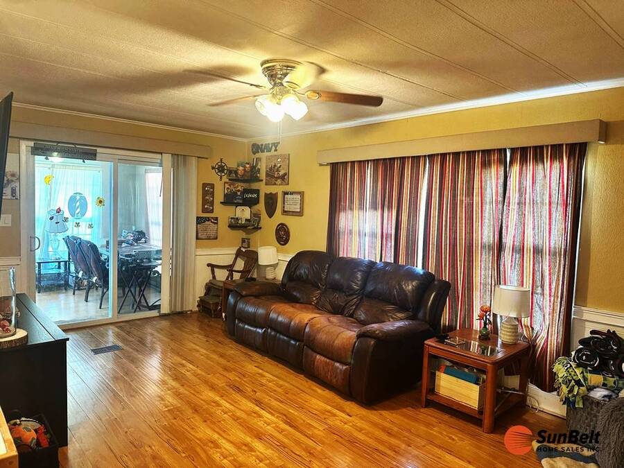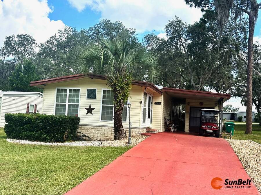 Resort-Style Living in a 55+ Community! Located in a highly sought-after 55+ resort community on leased land, this two-bedroom, two-bath manufactured home offers comfort, style, and convenience. The community features endless amenities, including a golf course, on-site restaurant, two clubhouses, and two sparkling swimming pools-perfect for those who enjoy an active lifestyle. Inside, the home has been thoughtfully updated with modern touches. The kitchen has been refreshed and is ready for all your cooking needs, while updated PEX plumbing throughout adds peace of mind. Both bathrooms have been improved, and the home boasts a spacious bonus room with a drop ceiling-ideal for hobbies, an office, or extra entertaining space. Gorgeous hardwood floors run throughout, enhancing its warmth and charm. The exterior features are equally impressive. A golf cart garage with a built-in stereo system makes for a fun and convenient space, while the extra-long driveway provides plenty of parking for multiple vehicles. Golf cart is included in the sale of the home. Call today to schedule your personal or FaceTime viewing!