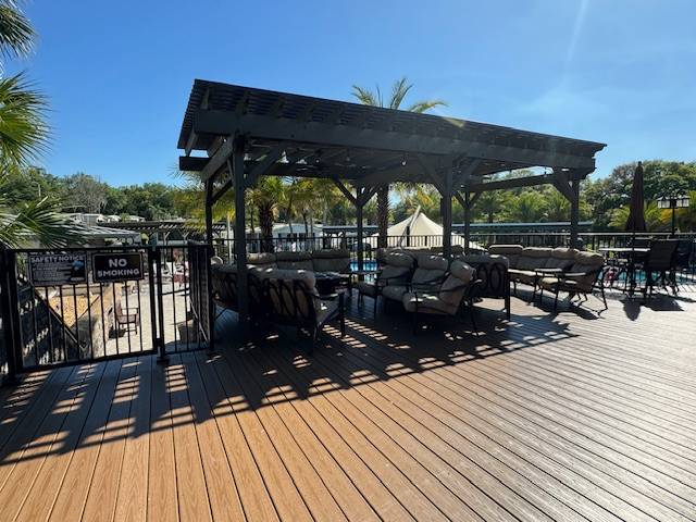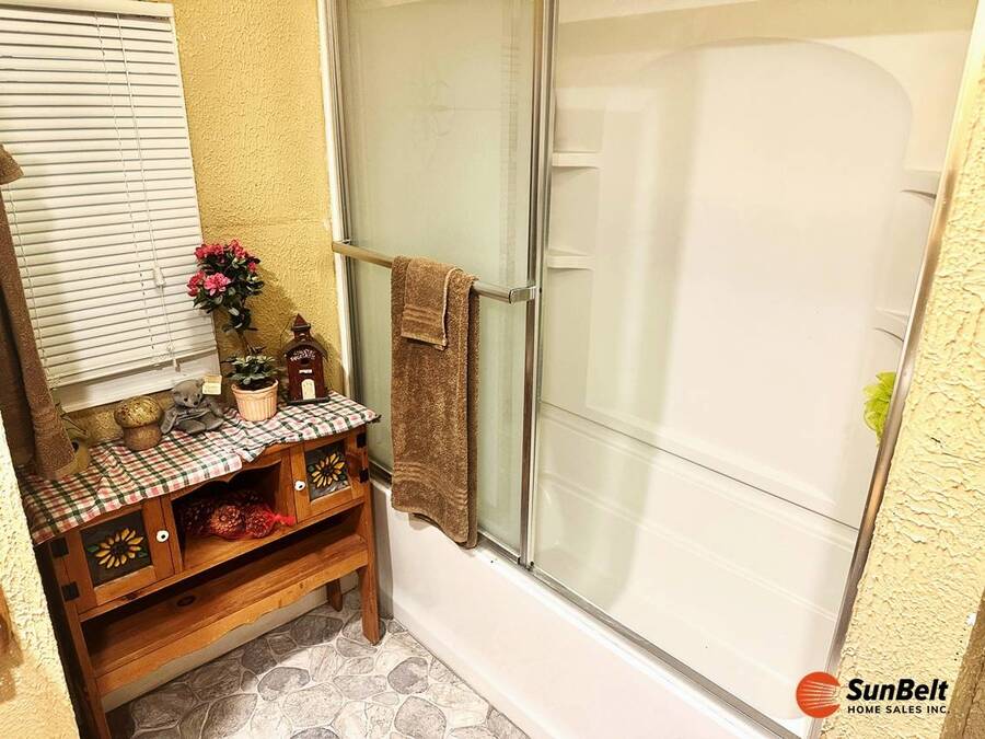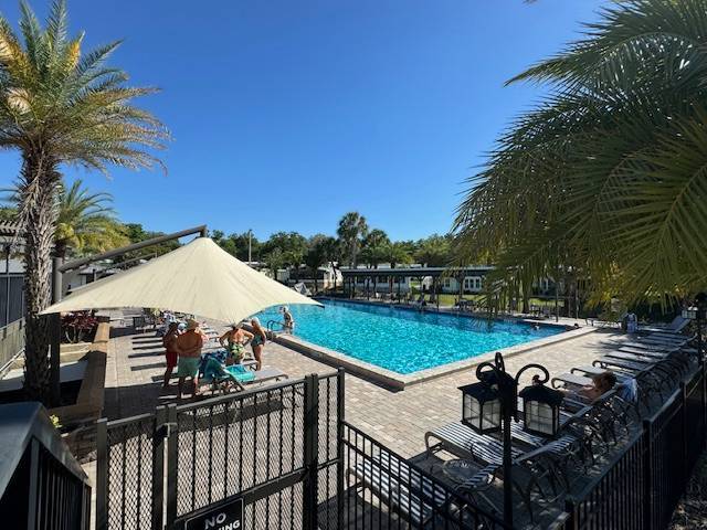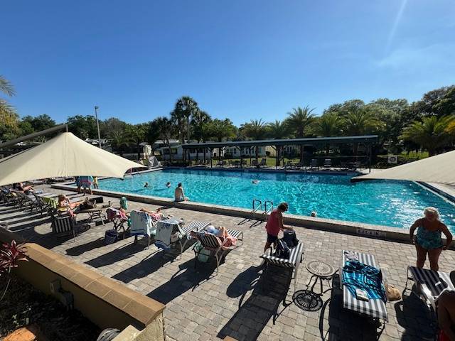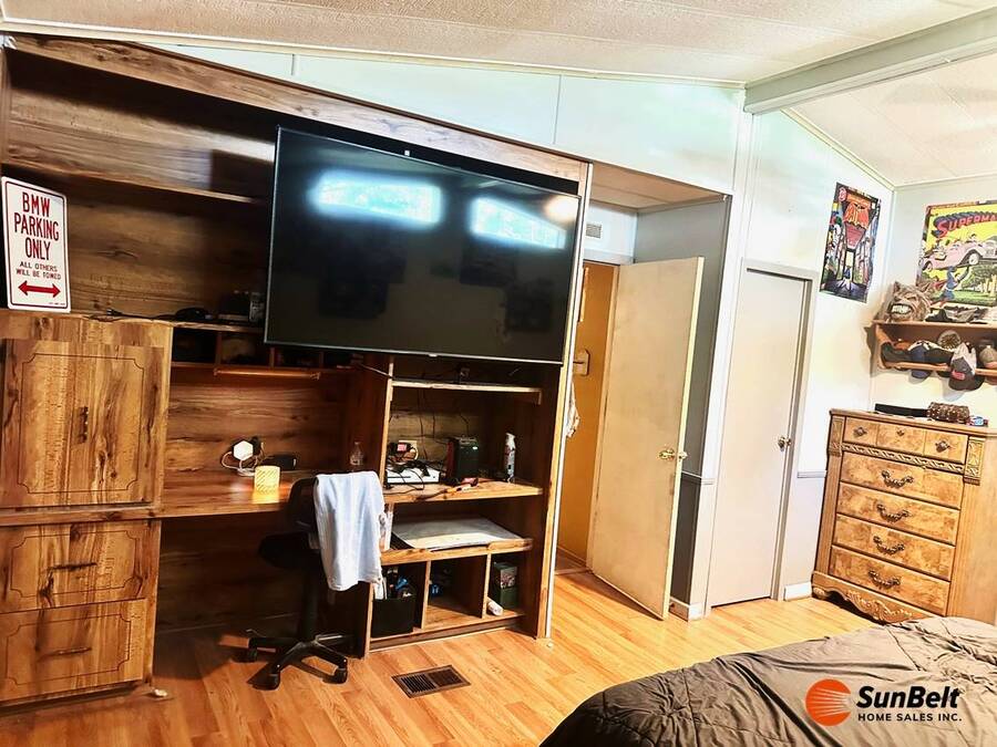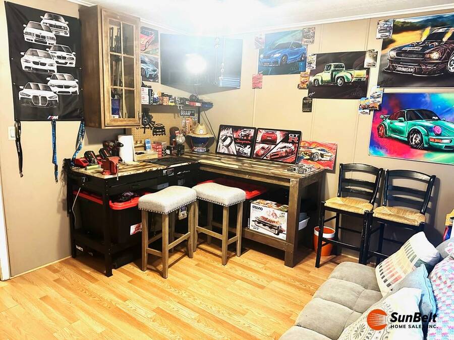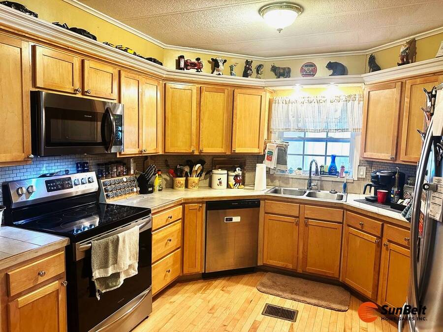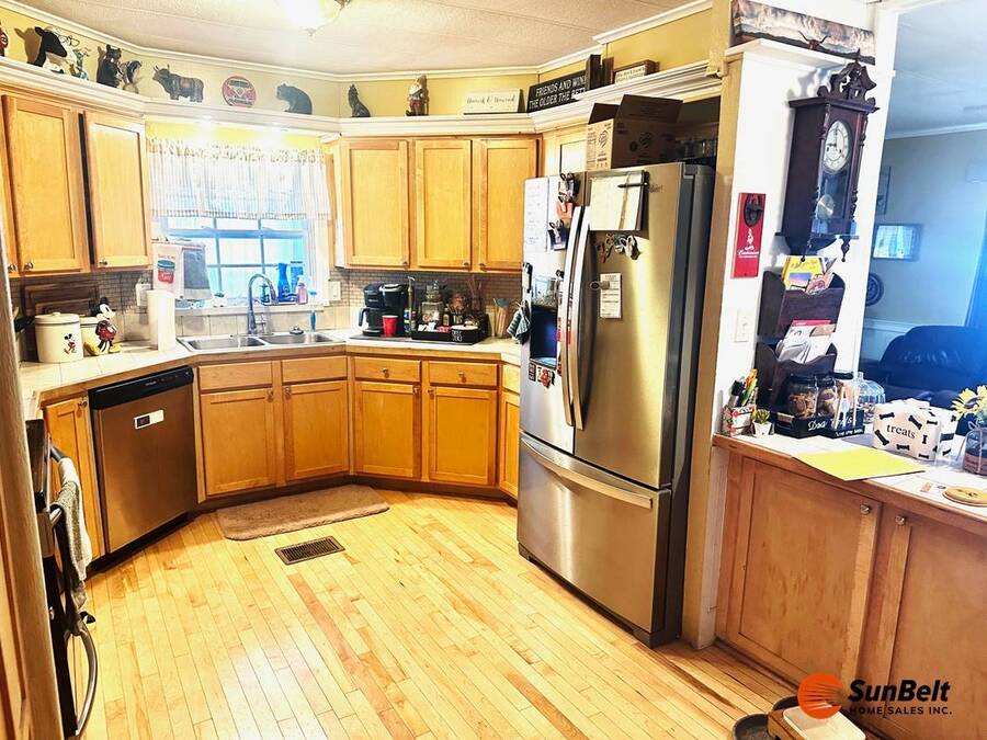 Resort-Style Living in a 55+ Community! Located in a highly sought-after 55+ resort community on leased land, this two-bedroom, two-bath manufactured home offers comfort, style, and convenience. The community features endless amenities, including a golf course, on-site restaurant, two clubhouses, and two sparkling swimming pools-perfect for those who enjoy an active lifestyle. Inside, the home has been thoughtfully updated with modern touches. The kitchen has been refreshed and is ready for all your cooking needs, while updated PEX plumbing throughout adds peace of mind. Both bathrooms have been improved, and the home boasts a spacious bonus room with a drop ceiling-ideal for hobbies, an office, or extra entertaining space. Gorgeous hardwood floors run throughout, enhancing its warmth and charm. The exterior features are equally impressive. A golf cart garage with a built-in stereo system makes for a fun and convenient space, while the extra-long driveway provides plenty of parking for multiple vehicles. Golf cart is included in the sale of the home. Call today to schedule your personal or FaceTime viewing!