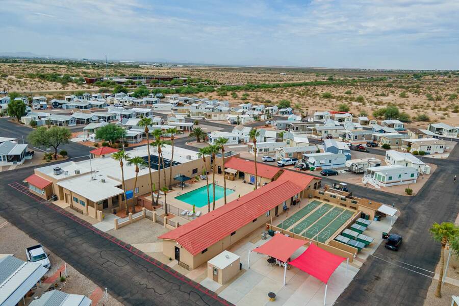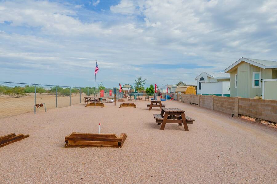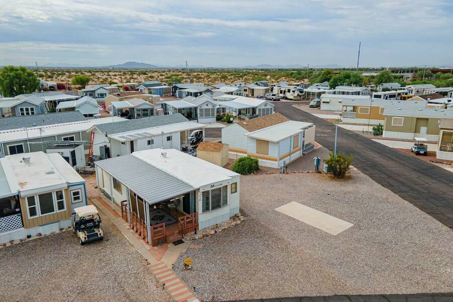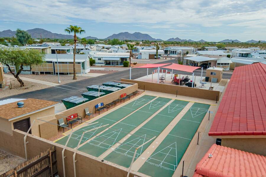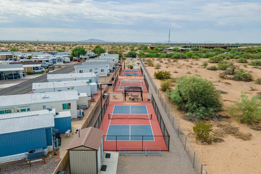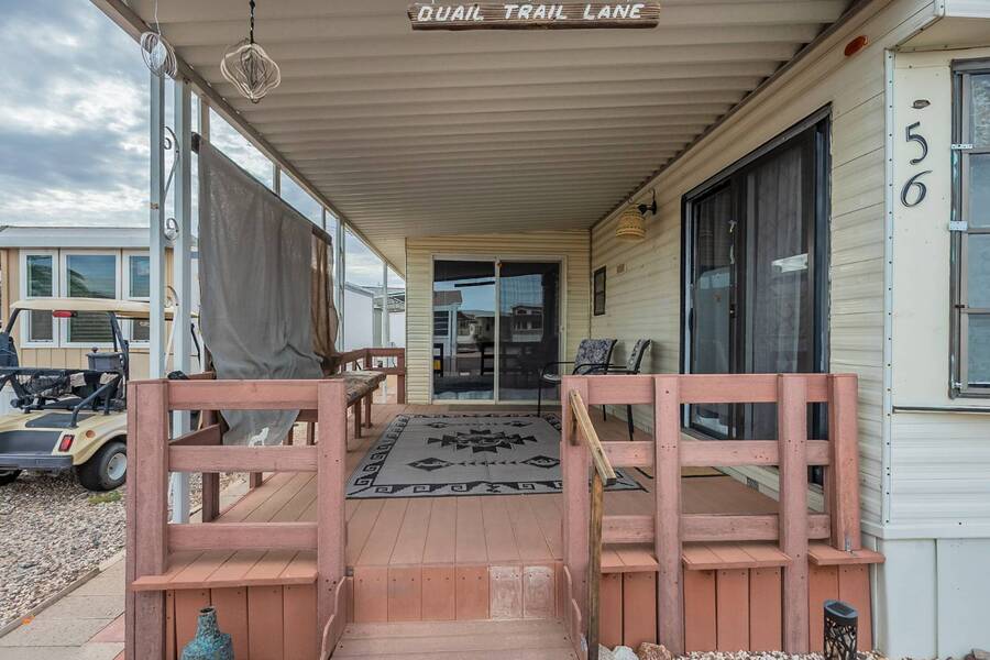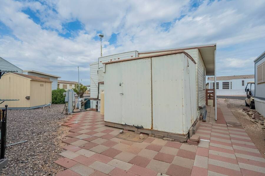 This charming one-bedroom plus a Bedroom/BONUS room home offers modern comfort with all plumbing replaced in 2022, propane stove, and 3 energy-efficient mini-splits. A flexible 7.4'x16' bonus space is perfect as a Second bedroom, space for hobbies, office, or guest overflow. Enjoy the Arizona sunshine from your covered porch, plus a handy shed for storage. Just steps from the clubhouse in a gated community with amenities galore-pool, spa, craft room, salon, live music, fitness activities, Dog Park, Mini Putt-Putt Course, Tennis, Billard's room, Community Library with Computers and more. Whether you're looking for a seasonal retreat or year-round living, Val Vista RV Resort offers the ideal Casa Grande lifestyle halfway between Phoenix and Tucson.