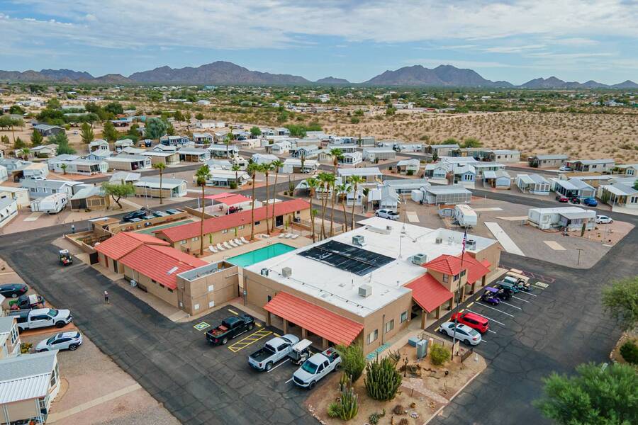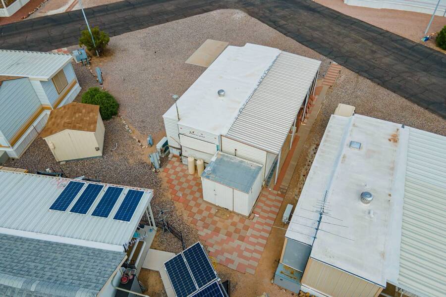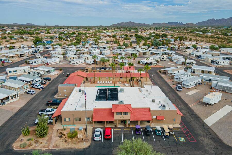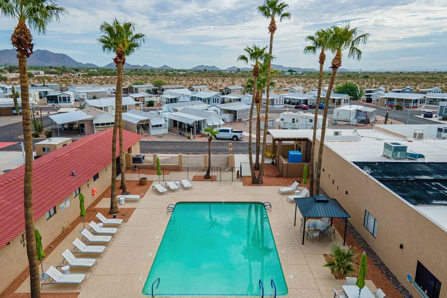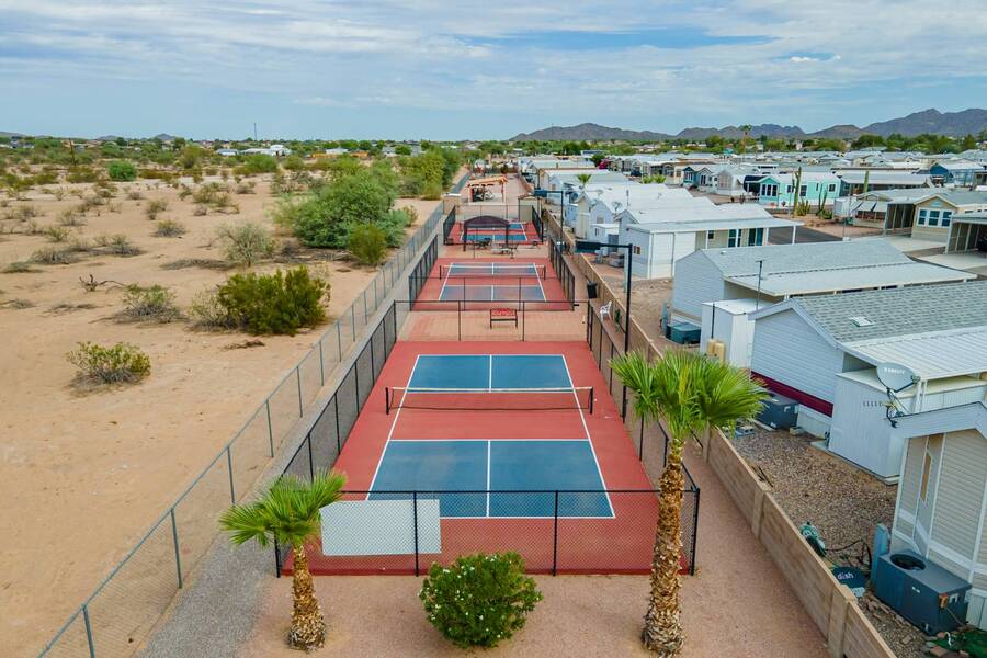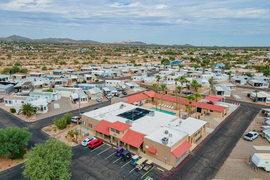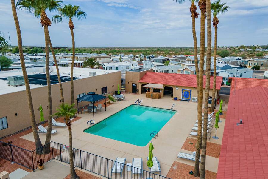 This charming one-bedroom plus a Bedroom/BONUS room home offers modern comfort with all plumbing replaced in 2022, propane stove, and 3 energy-efficient mini-splits. A flexible 7.4'x16' bonus space is perfect as a Second bedroom, space for hobbies, office, or guest overflow. Enjoy the Arizona sunshine from your covered porch, plus a handy shed for storage. Just steps from the clubhouse in a gated community with amenities galore-pool, spa, craft room, salon, live music, fitness activities, Dog Park, Mini Putt-Putt Course, Tennis, Billard's room, Community Library with Computers and more. Whether you're looking for a seasonal retreat or year-round living, Val Vista RV Resort offers the ideal Casa Grande lifestyle halfway between Phoenix and Tucson.