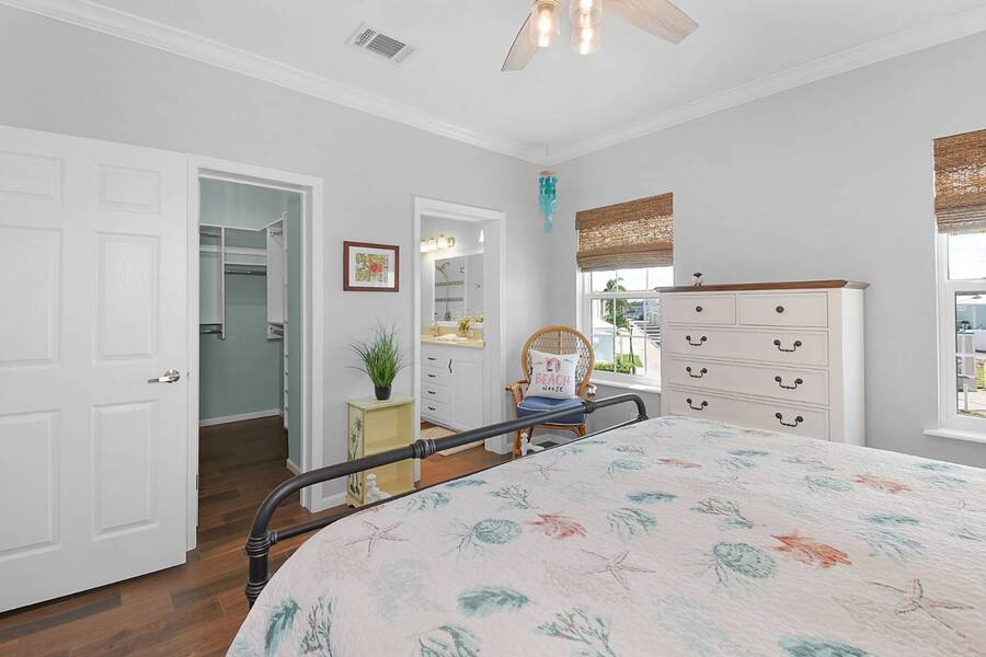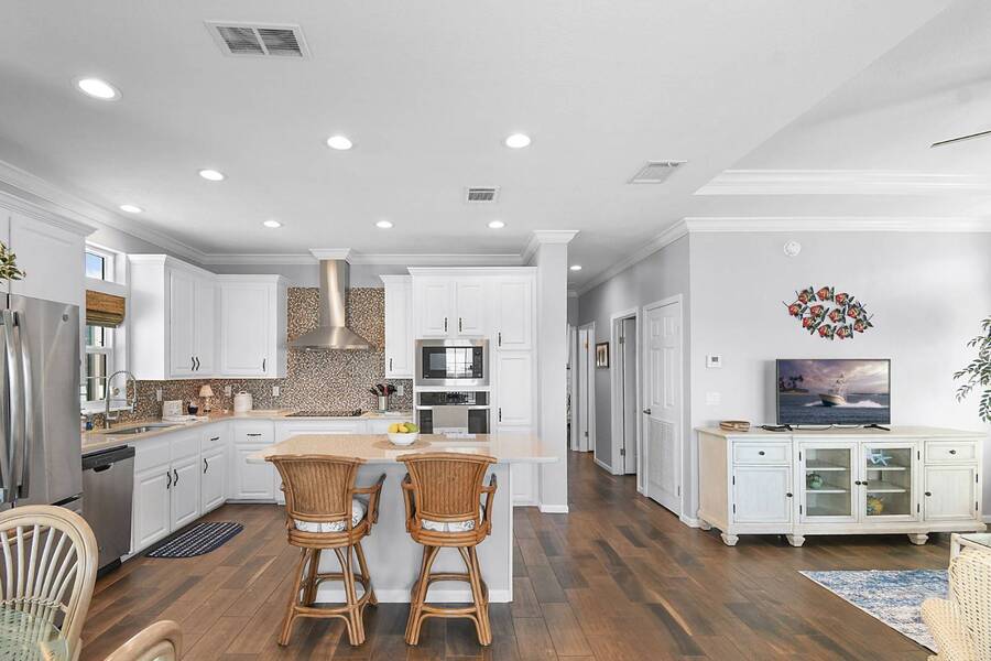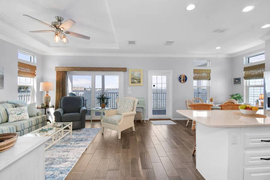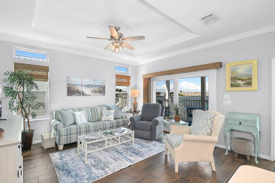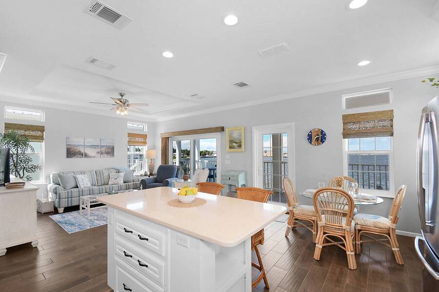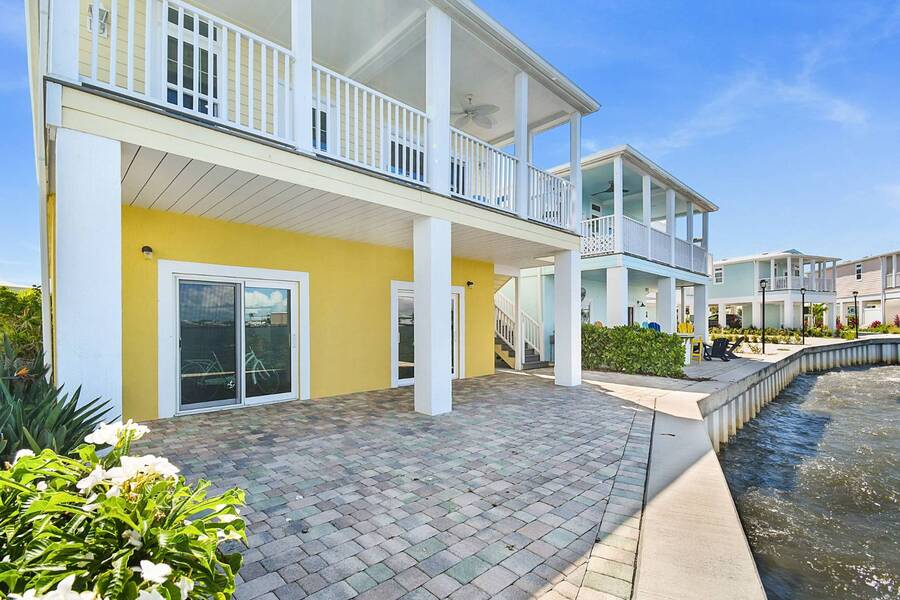 6 months of land lease fees and furniture to be included with the list price. Live minutes to the beach from this beautiful newer (2020) home and enjoy wide water views of the Indian River. The living room offers loads of windows which maximize the waterfront views, sunrises, sunsets, and opens to the oversized balcony. Kitchen boasts attractive backsplash, LG appliances such as a flat cooktop, wall oven & microwave, French door style refrigerator, white cabinets, center island and large sink. Main bedroom suite has a walk-in closet w/ organizers, accommodates a king size bed, has dual sinks and a spacious step-in shower. This house is constructed with the current 140-mile-an hour Miami-Dade building code requirements featuring impact glass windows & doors, and metal roof. Huge 4 - 5 car climate-controlled garage with an epoxy floor has endless possibilities; slider doors off the back places you steps away from fishing and sea life. Neighboring homes have docks, so buyers can investigate private dock permit for the boat. Ocean Breeze Resort is golf cart friendly, an age 55 plus community and lends itself to a modern active lifestyle featuring state-of-the-art fitness center, resort pool, café, dog park and pickleball. Trucks, trailers, motorcycles and pets are welcome.