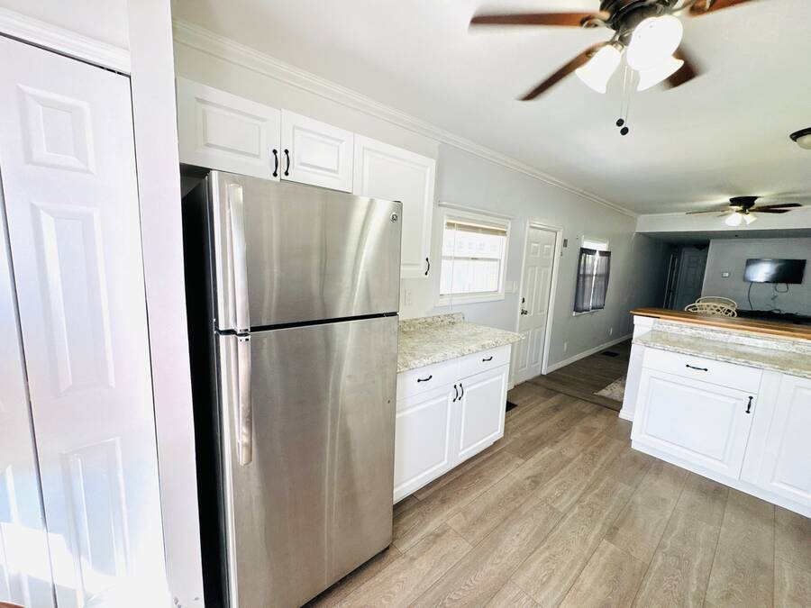 Hurry and pack your bags before that white stuff starts coming down. You know that stuff we don't want to talk about....SNOW! Hurry and get this adorable 1 Bed, 1 Bath home in a Beautiful, gated 55+ Senior Community with many amenities waiting just for you! The home has stainless steel appliances, a Refrigerator, stove, microwave, HVAC and is partially furnished. There is a FL room off the kitchen and living space that's just perfect for sitting back and relaxing in the evenings.