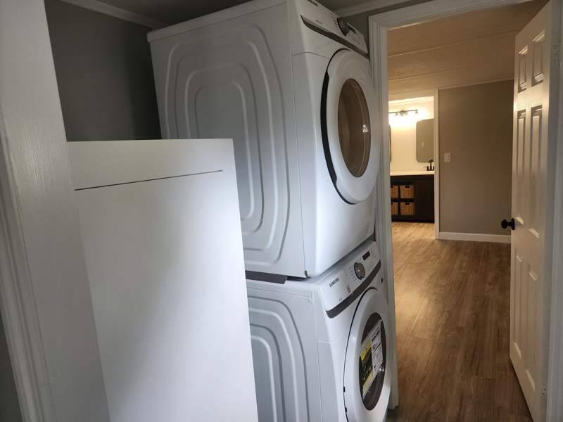 Interior Features: New drywall & fresh paint throughout, new windows & doors, new lighting, new flooring & trim, new kitchen cabinets with soft close hardware, new stainless steel kitchen appliances, new solid surface kitchen countertops, new water heater, new full size stackable washer & dryer, new electrical outlets, switches & plates, new lighting, and brand new bathrooms.