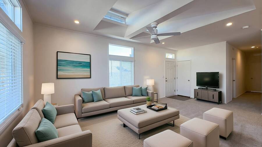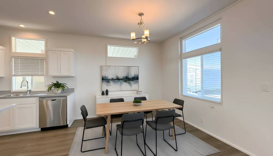 This brand-new manufactured home in Fruition offers a bright and functional layout designed for everyday comfort. Featuring a spacious open-concept living and dining area, the home feels welcoming from the moment you step inside. The kitchen includes modern cabinetry, ample counter space, and a stainless steel appliance package, creating a clean and contemporary centerpiece for the home. The primary suite offers privacy and comfort, while the additional bedrooms provide flexibility for guests, family, or a home office setup. Located in the desirable Fruition community in Riverside, residents enjoy access to a swimming pool, playground, and dedicated pet area, making it ideal for active lifestyles. The community offers a friendly, neighborhood atmosphere while remaining close to shopping, dining, schools, and major freeways. With convenient access to downtown Riverside, local parks, and nearby recreation areas, Fruition blends everyday comfort with accessibility. **Virtually Staged Photos**