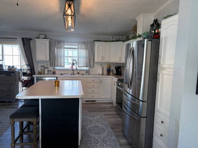 CORNER LOT WITH A CIRCULAR DRIVEWAY! This 1,232 Square Foot Manufactured Home is Located in a Prime Community Meadow Creek off 27 Mile Rd near Gratiot & has a Monthly Lot Rent of $730 which includes Trash Pick-up, Community Upkeep, & Community Amenities like a Beautiful Clubhouse, a Pool, Fitness Center, Play Areas & MORE! This 2002, Friendship Home has a Spacious Living Room with a Ceiling Fan, Laminate Floors, a Coat Closet, a Natural Wood Burning Fireplace with a Mantel, & a Steel Door with a Side Lite out to Wood Steps. The Island Kitchen has Nice White Cabinets with Newer Handles, a Snack Bar & Plug on the Island, Pantry Cabinets with Drawers, a Stainless Steel Sink with an Upgraded Faucet, a Garbage Disposal, Laminate Floors, Nice Light above the Island, & Newer Stainless Steel Samsung Appliances including a French Door Refrigerator with an Extra Drawer, Bottom Freezer, & Water & Ice on Door, a Gas Stove, Dishwasher, & Built in Microwave. The Nice Dining Room has a Door wall & Laminate Floors. The Large Laundry Room has Shelving above the Washer & Dryer area, Extra Space for Storage, Laminate Floors, a Door into the Master Bathroom, & a Steel Door out to Wood Steps. The Master Bedroom is a Great Size & has a Nice Size Closet. The Master Bathroom has a Porcelain Sink with an Upgraded Faucet, a Nice Mirror & Light Fixture, a Deep Jacuzzi Tub, a Stall Shower with seats, a Door into the Laundry Room, & Tile Floors. Bedrooms 2 & 3 are a Great Size & have Nice Closets with Extra Shelving & Laminate Floors. The Main Bathroom has a Porcelain Sink with an Upgraded Faucet, Nice Mirror & Light Fixture, a One Piece Bathtub\Shower, & Tile Floors. This Home also includes some Drywall, Vinyl Windows, a Linen Closet in the Hall, Central Air, Simulated Brick Skirting, a Circular Driveway, & a Double Door Wood Shed with a Shingled Roof & Electric. PLEASE DO NOT CLICK CONTACT AGENT! CONTACT ME DIRECTLY BY PHONE!