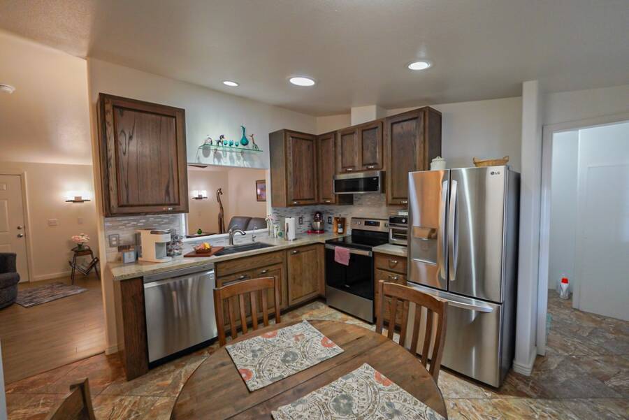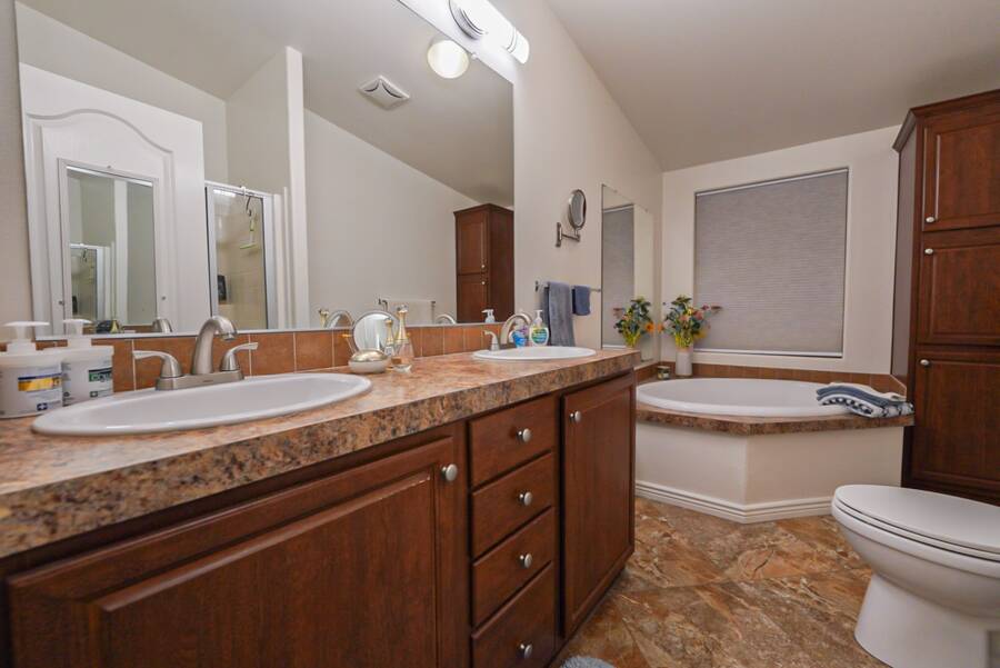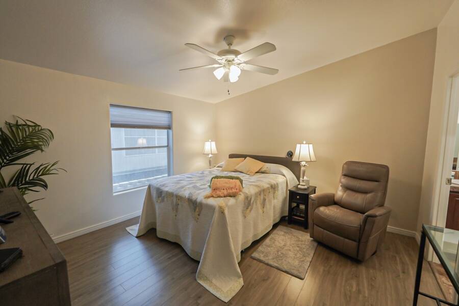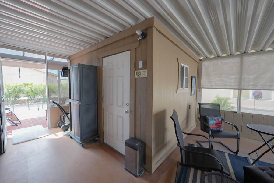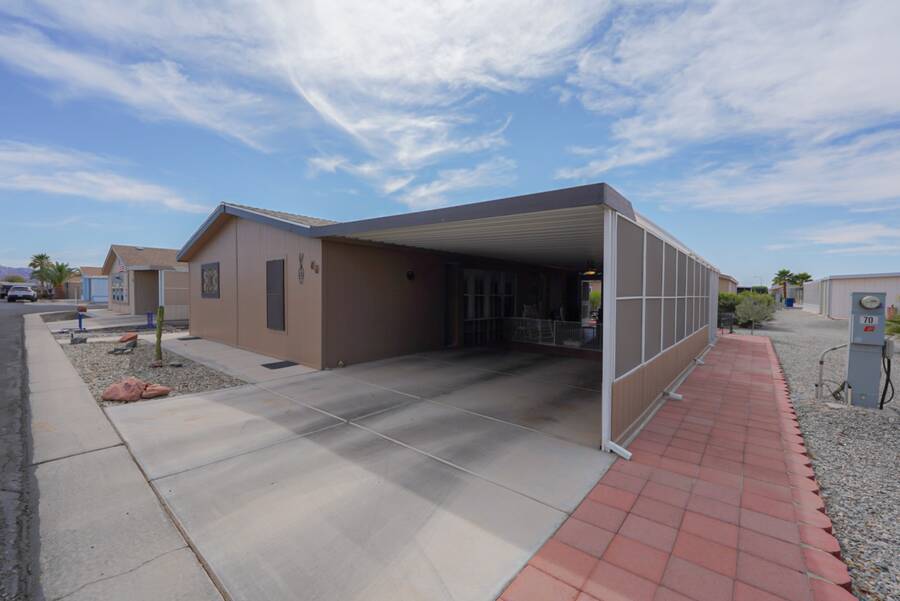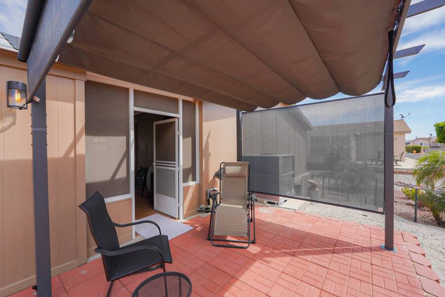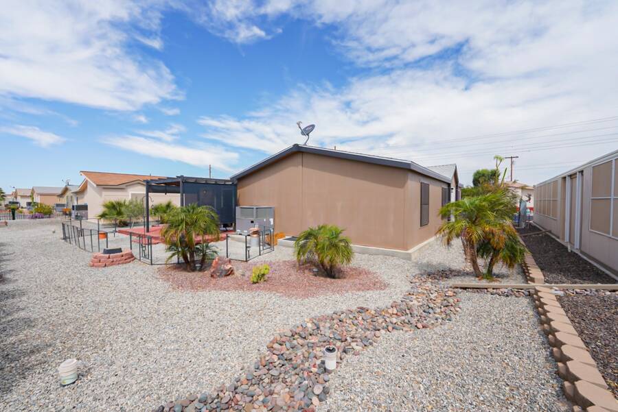 Charming Updated Manufactured Home in 55+ Community - Move-In Ready! Welcome to your beautiful, worry-free home in a vibrant 55+ park with endless amenities! This delightful manufactured home has been thoughtfully updated, leaving you with nothing to do but move in and enjoy. The home boasts new exterior paint and a new roof for added curb appeal and peace of mind. Inside, you'll find a cozy living room enhanced with new wall sconces. The sun screens ensure added comfort and energy efficiency, while the leveler cellular shades provide privacy and style throughout. The heart of the home is the completely remodeled kitchen and laundry room, featuring sleek new cabinets, countertops, and appliances - all designed for modern living. A new hot water heater adds to the home's efficiency. The watering system has been replaced, and the pavers in the back patio have been updated to create a perfect outdoor space, including a new walkway on the side of the home. Comfort is key with a 3-ton heat pump (replaced in 2021) to keep you cool in the summer and warm in the winter. This home is truly turn-key, ready for you to enjoy all the updates! Outside the home, the community offers everything you could wish for. Relax in the large heated pool and spa, or challenge friends to a game in the private billiard parlor. There are eight championship shuffleboard courts, a horseshoe pit, and even pickleball courts for active fun. The 10,000 sq. ft. clubhouse is the heart of the social scene, with a private card room, craft room, and a fitness center. Plus, two doggy parks and a petanque court provide plenty of outdoor activities for your furry friends. Security is top-notch with a 6-foot security wall, security lights, and a gated community offering peace of mind. The monthly activities calendar includes dances, crafts, bingo, dinners, and more, ensuring there's always something fun to do! Don't miss out on this fantastic opportunity to enjoy a relaxed, active lifestyle in a wonderful community. Schedule your showing today!