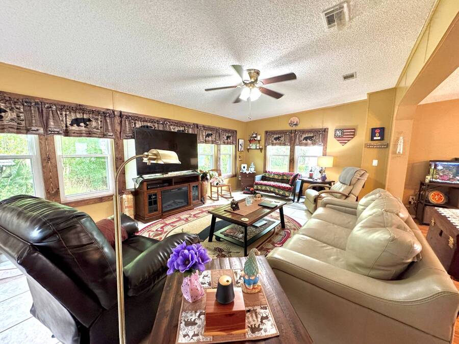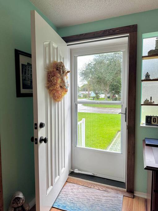 Welcome to this charming 2-bedroom, 2-bath 1997 Jacobsen home located in the highly desirable Aberdeen at Ormond Beach community. Nestled among mature trees, this home offers a peaceful backyard setting with a private patio perfect for relaxing or entertaining. The front features an extended 10' screened lanai with large screen doors wide enough to fit a motorcycle, providing both function and flexibility. Inside, you'll find a warm, cabin-style feel accented with beautiful stained wood trim throughout. New washer recently added. Enjoy convenient parking with a two-car driveway plus golf cart space - perfect for exploring all that Aberdeen has to offer! Community Highlights: Residents enjoy access to a clubhouse with pool, indoor hot tub, shuffleboard, bocce, horseshoes, tennis and pickleball courts, library, billiard room, fitness center, card room, and several sitting areas throughout the grounds. Scenic ponds and walking paths create a tranquil setting, and the community is gated with 24-hour security for peace of mind. Discover the best of active 55+ Florida living in this welcoming and well-maintained community - where comfort, recreation, and relaxation meet!