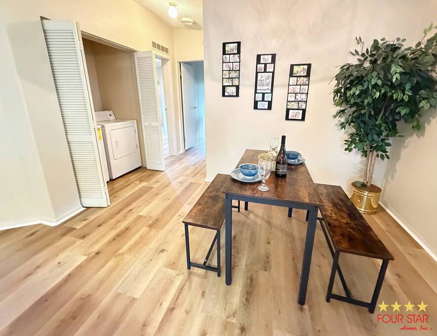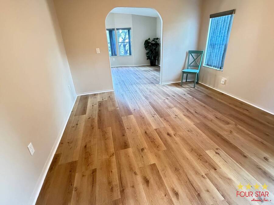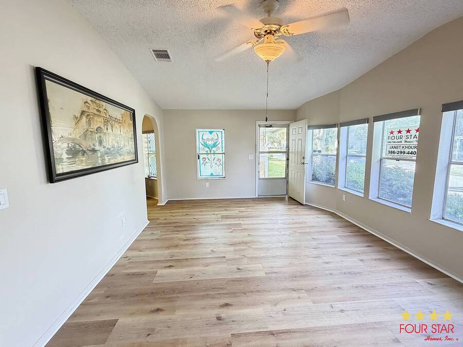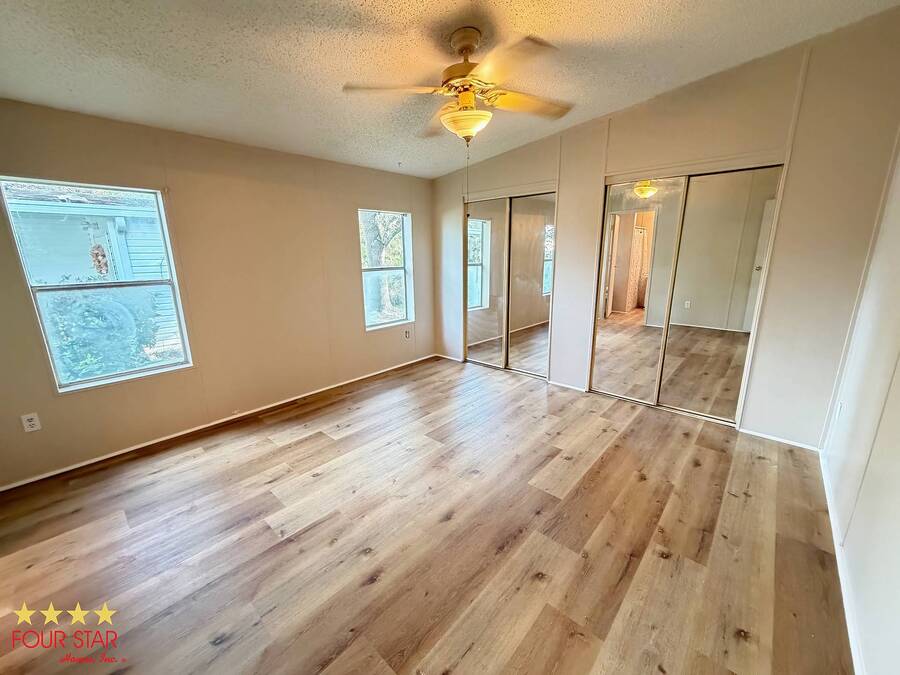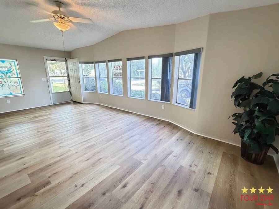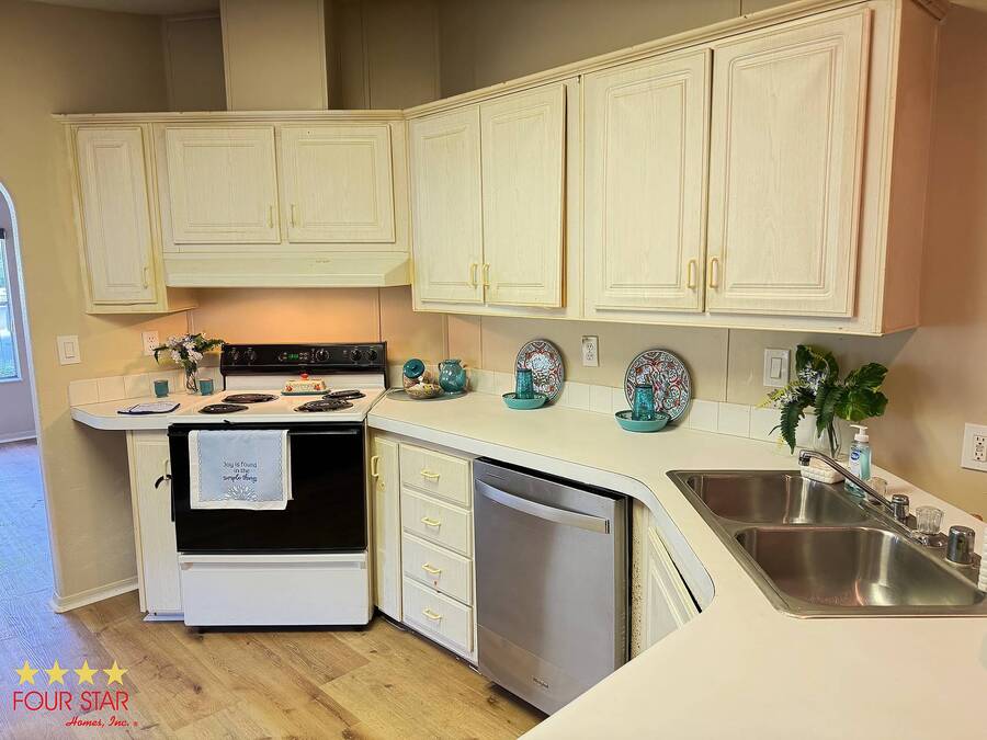 This delightful 2 bedroom 2 bath home offers nearly 1500 square feet of comfortable living space, perfect for those seeking a blend of style and functionality! Step into a bright and airy living room adorned with ample windows. allowing natural light to flood the space. The open layout seamlessly connects the living area to the dining space, creating an inviting atmosphere for family gatherings or entertaining friends. Features a new fridge and dishwasher, making meal prep a breeze. Both bedrooms come equipped with generous walk in closets, providing ample storage for your wardrobe and personal items. The entire home boasts beautiful viny1flooring, offering durability and easily maintained. Screen room. perfect for enjoying morning coffee or evening relaxation. The additional shed provides extra storage for gardening tools or outdoor equipment. Situated in a desirable neighborhood, you will have easy access 10 local amenities, parks, and shopping, making daily life a breeze. Do not miss out on this incredible opportunity to own a charming home that perfectly balances comfort and style. Schedule a viewing today and envision your new life in this lovely retreat! All of this and a year home warranty to boot!
