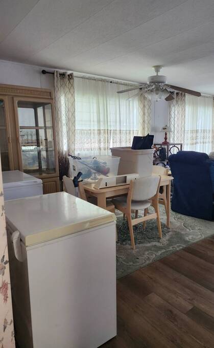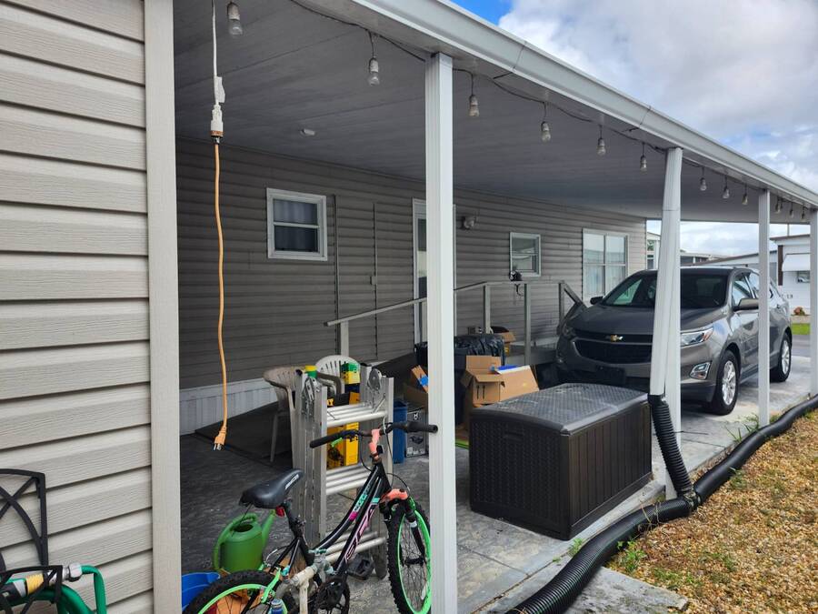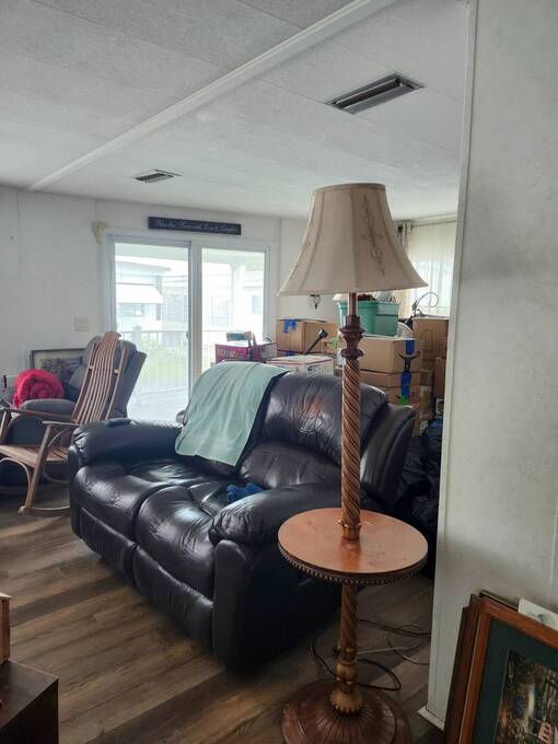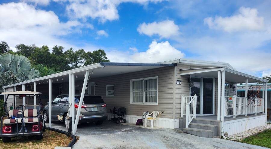 Discover leisure and lifestyle in this SPACIOUS doublewide 2-bedroom, 2-bath home in the active 55+ pet-friendly community of Woodall's Village in central Florida! FEATURES include NEW FLOORING throughout, tie-downs installed, a moisture barrier for termite protection, and a landscape fountain in the front yard! In addition, the EXPANSIVE covered front porch is the perfect setting to enjoy a relaxing afternoon or evening watching passersby, have conversations with neighbors, and enjoy the desirable Florida climate. Step inside this expansive home where a blend of comfort and convenience meets all your needs. The open, functional kitchen is equipped with essential appliances, a breakfast table & chairs for morning coffee and pastries, and plenty of cabinets and counters for storage and meal prep, along with a water filtered system and garbage disposal. Gorgeous New Flooring runs throughout the home for a modern appeal and easy maintenance. The open floor plan provides room for relaxation and camaraderie in the living room and dining room. Pass through the hallway to a spacious master bedroom with plenty of closets. The king bed and dresser stay with the home. A LARGE corner shower, double sink vanity, and linen closets make up the ensuite bath. Visitors will find tranquil rest in the guest bedroom. Imagine bringing your own personal taste and belongings to this spacious oasis and turning it into a piece of paradise that you've been waiting for! Just a bit of effort and creativity brings elegance and style to any home! A LOW lot rent of just $569 per month includes water, sewer, and lawn care. Residents must do a background check. This lovely residence is priced to sell! Begin a life of leisure with this affordable property in a PERFECT location at the 55+ pet-friendly community of Woodall's Village in Lakeland. Bring your furry family members (under 30 lbs., non-aggressive breeds). It's the perfect place to enjoy a quiet retirement or make this your snowbird retreat! Either way, you can ENJOY all this community has to offer: a heated pool, shuffleboard courts, a clubhouse, Bingo, billiards, darts, Friday night dances, and many more activities! Venture beyond the park and you will find an abundance of places to see and experience in the vibrant city of Lakeland: golf courses, theaters, museums, gardens, architecture, restaurants, nature, landscapes, and LAKES, glorious lakes for fishing! There's always something to see and do! Travel west a short distance and you can enjoy more of beautiful Florida in the vibrant Tampa Bay area with water activities, beaches, and fun in the sun! Travel east a short distance and enjoy a day at Disney/Orlando. Central Florida is the place to be! Don't wait! Call today! All listing information is deemed reliable but not guaranteed and should be independently verified through personal inspection by appropriate professionals. Our company does not and cannot guarantee or warrant the accuracy of this information or the condition of this property. Measurements are approximate. The buyer assumes full responsibility for obtaining all current rates of lot rent, fees, and pass-on costs. Additionally, the buyer is responsible for obtaining all rules, regulations, pet policies, etc., associated with the community, park, or home from the community/park manager. Our company is not responsible for quoting said fees or policies. Financing is available through 3rd party lenders. The sales price does not include tax, dealer fees, or administrative fees. Please contact the sales agent for additional information. Generator is going with the sales