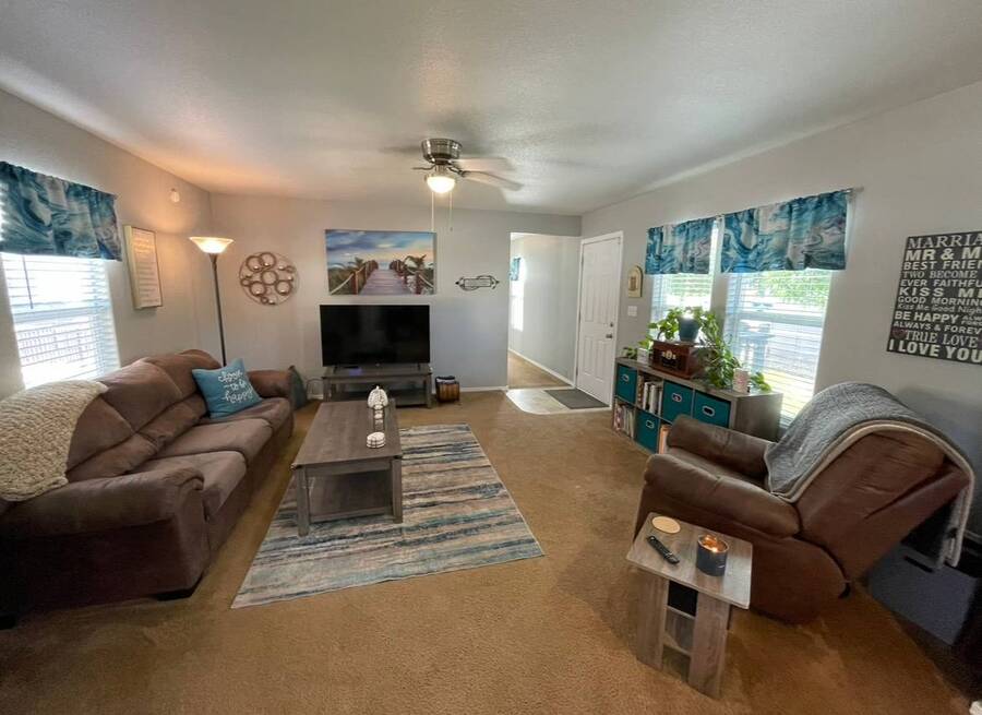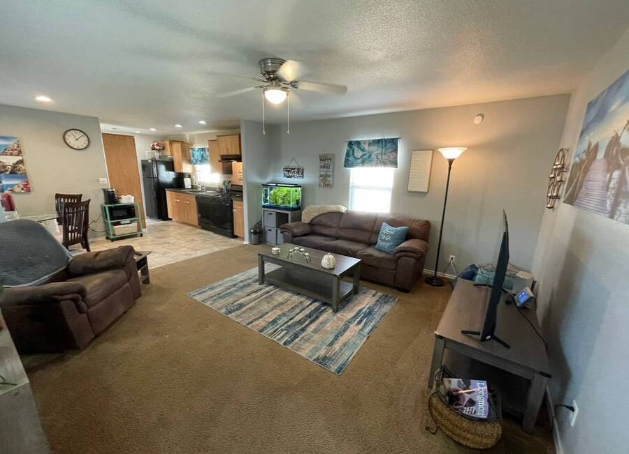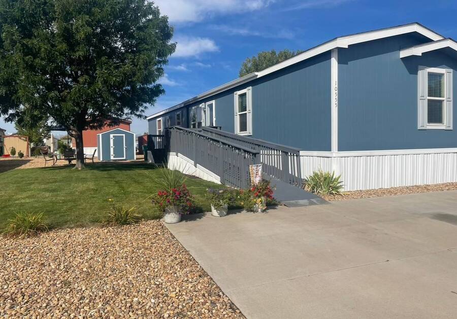 This 2011 model, three bedroom, two bathroom mobile home is currently available for sale in Eagle Crest, a family community located in Firestone, CO. This residence features an inviting open floor plan, with a spacious living area that thoughtfully separates the primary bedroom from the two additional generously sized bedrooms, ensuring optimal privacy. The open-concept kitchen is ideal for entertaining and includes all essential kitchen appliances. The expansive primary bedroom boasts an attached bathroom and a sizable walk-in closet. Recent upgrades to the home include a new central air conditioning system and furnace installed in 2023, as well as a new water heater installed this year. The interior and exterior have been professionally painted. For added convenience and security, an ADT security system and a sprinkler system are included. The property also offers off-street parking for up to three vehicles. Financing options are available for qualified buyers. Esta casa móvil, modelo 2011, de tres dormitorios y dos baños está a la venta en Eagle Crest, una comunidad familiar ubicada en Firestone, Colorado. Esta residencia cuenta con un acogedor diseño abierto, con una amplia sala que separa cuidadosamente el dormitorio principal de los dos dormitorios adicionales de gran tamaño, garantizando una privacidad óptima. La cocina de concepto abierto es ideal para el entretenimiento e incluye todos los electrodomésticos esenciales. El amplio dormitorio principal cuenta con un baño adjunto y un amplio closet. Las recientes actualizaciones incluyen un nuevo sistema de aire acondicionado central y una caldera instalados en 2023, así como un nuevo calentador de agua instalado este año. El interior y el exterior han sido pintados profesionalmente. Para mayor comodidad y seguridad, se incluyen un sistema de seguridad ADT y un sistema de riego. La propiedad también ofrece estacionamiento privado para hasta tres vehículos. Hay opciones de financiamiento disponibles para compradores calificados.