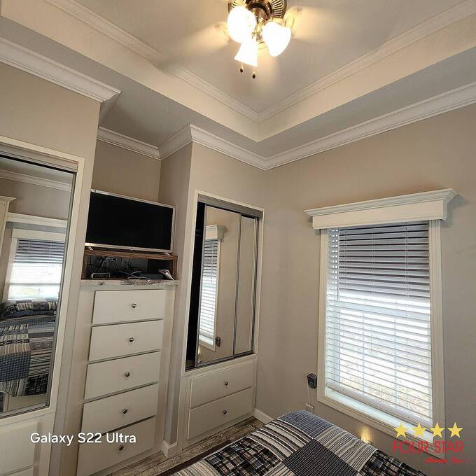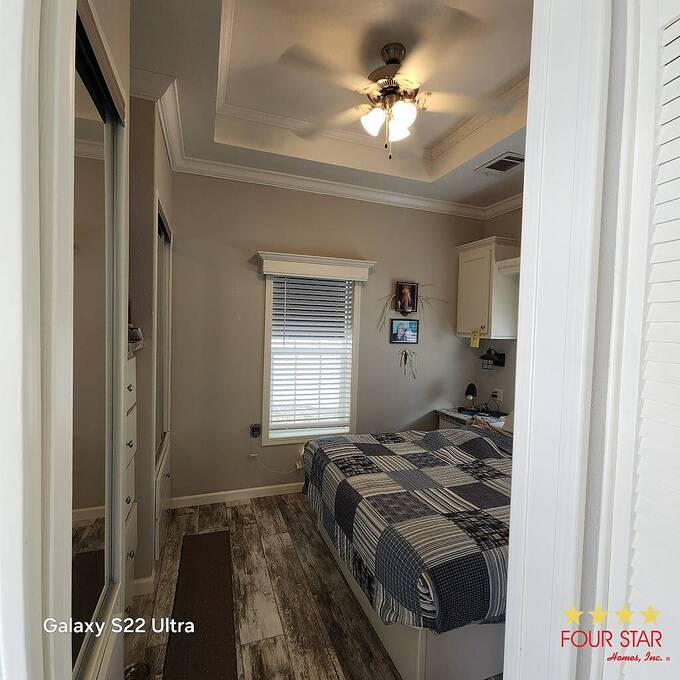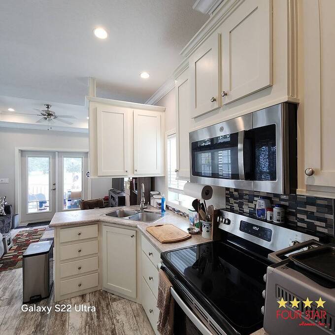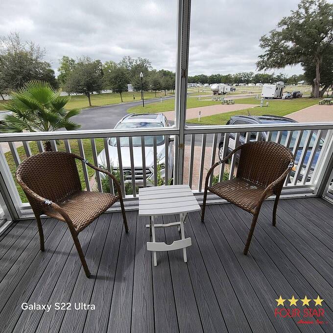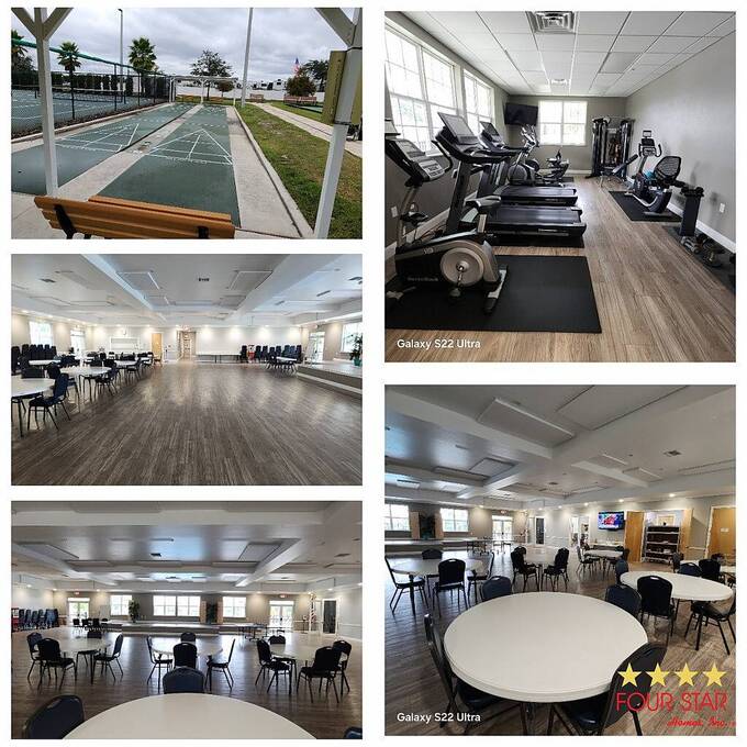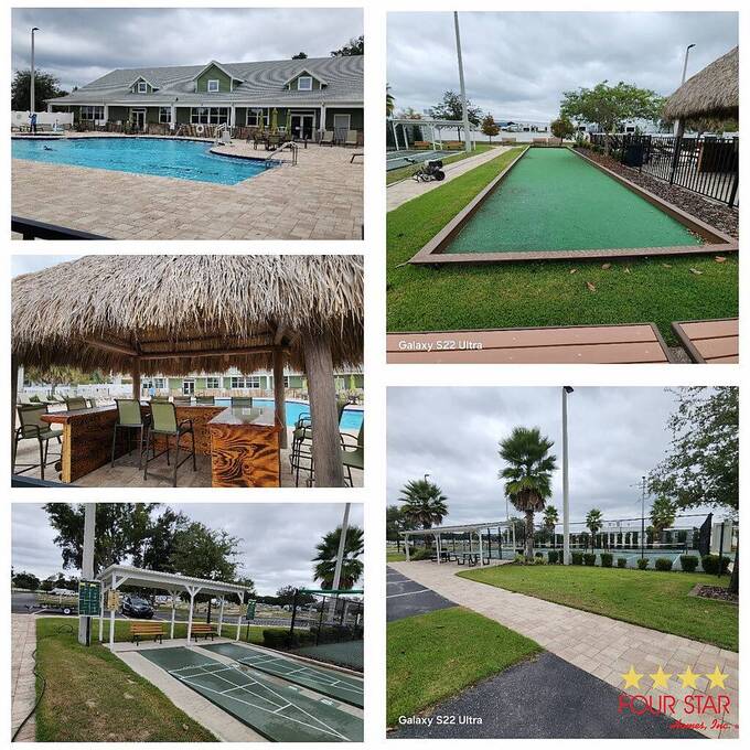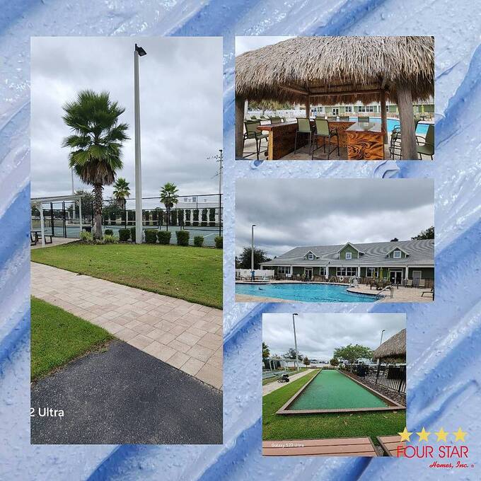 Turnkey Park Model in a Fun 55 Plus Community! Are you looking for your perfect Florida getaway or a year-round home? This stunning fully furnished park model has everything you need and more! Located in a gated 55 Plus community packed with fun activities like a pool, shuffleboard, bocce, pickleball, and more, you will feel right at home from the moment you arrive. Step through the French doors into a cozy living room with a built-in desk and tons of storage. The tray ceiling accents the home beautifully and has a ceiling fan to keep air flowing, and the bright kitchen features stainless steel appliances and plenty of cabinet space for all your cooking needs. The eat-in dining area even has extra storage and countertop space. The bathroom has a handicapped-accessible shower, and the whole home has easy-to-maintain vinyl plank flooring throughout. Enjoy your morning coffee or evening breeze in the enclosed front screen room, the perfect spot to relax and unwind. Out back, you will love the privacy fence along the community line, giving you a peaceful outdoor space. Plus, there is a shed for extra storage and a work bench you can fold up, and so much more. This home is truly move-in ready,just bring your suitcase and start enjoying the Florida lifestyle.